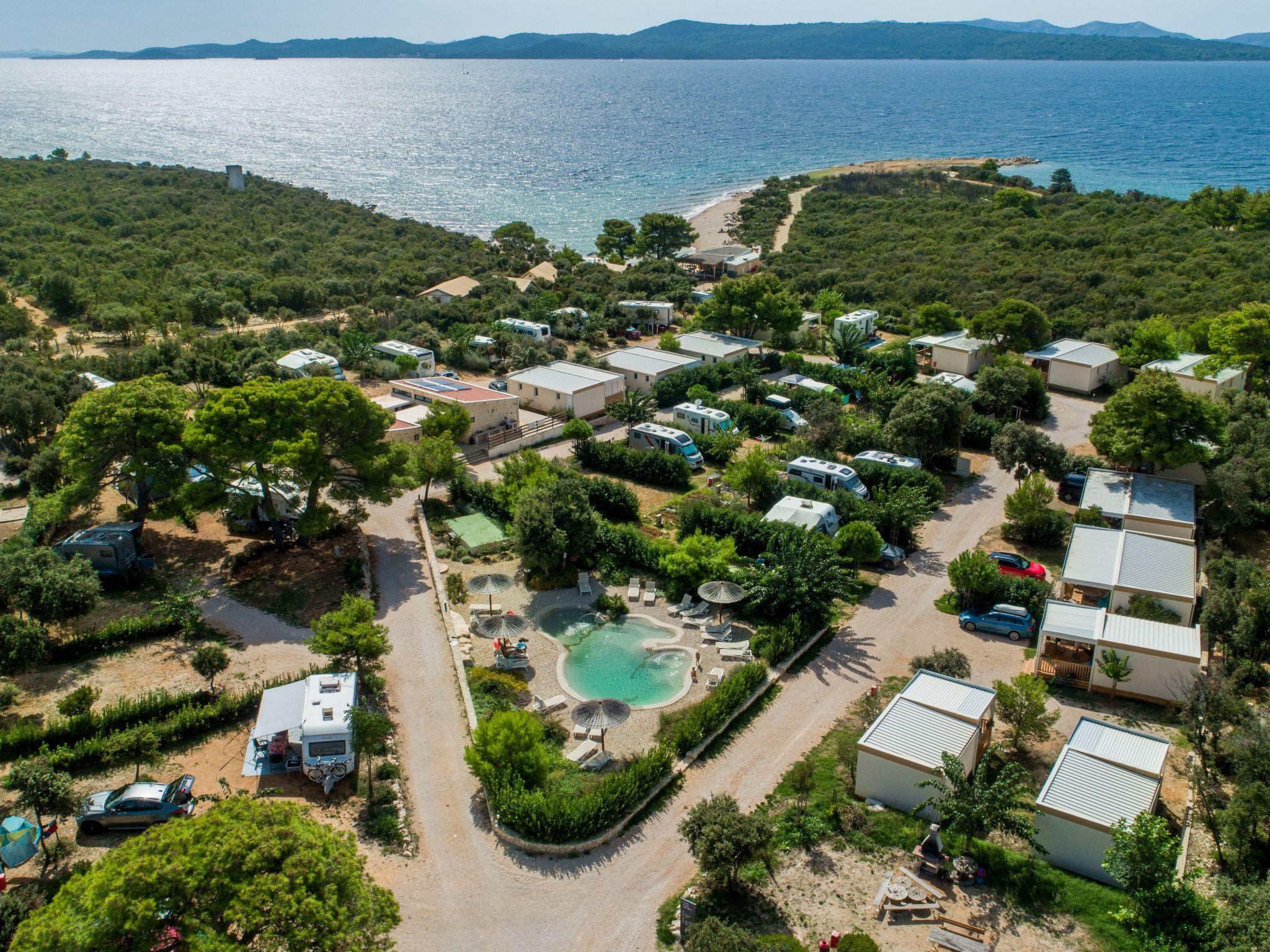 Camping Ugljan is resort in Croatia, on island Ugljan situated on Dalmatian coast, only 20 minutes from Zadar by ferry. Resort is new, 4* with heated outdoor pool, XL 40 m2 premium mobile homes each with additional 30 m2 covered terrace. Mobile homes are situated very close to the sea and there are 3 types: 2-bedroom and 3-bedroom, each with 2 bathrooms and studio with 1 bathroom.