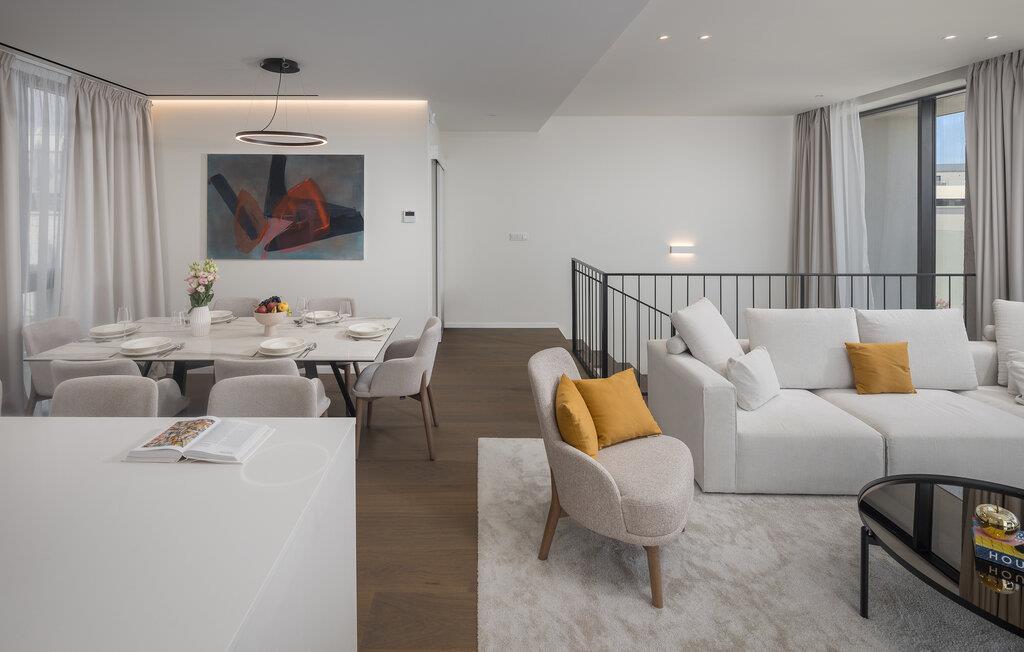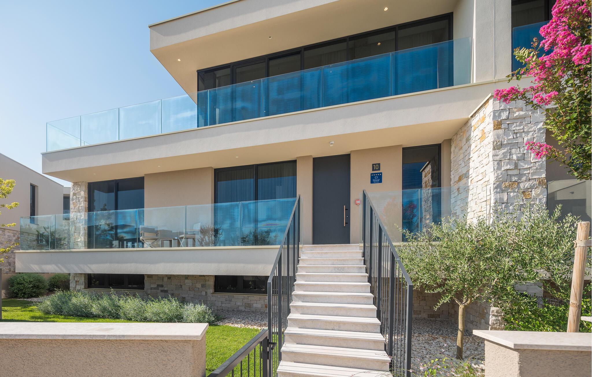 Nyd en luksuriøs pause i en af de smukkeste regioner i Kroatien. Den moderne arkitektur og den elegante indretning af jeres feriehus i Crveni Vrh giver jer maksimal komfort, mens den rummelige udendørs terrasse med liggestole indbyder til afslappende timer. Lad blikket vandre ud over havet og nyd den friske havbrise. Den lyse og rummelige stue med store vinduer skaber en behagelig atmosfære, perfekt til hyggelige aftener med familien eller venner.