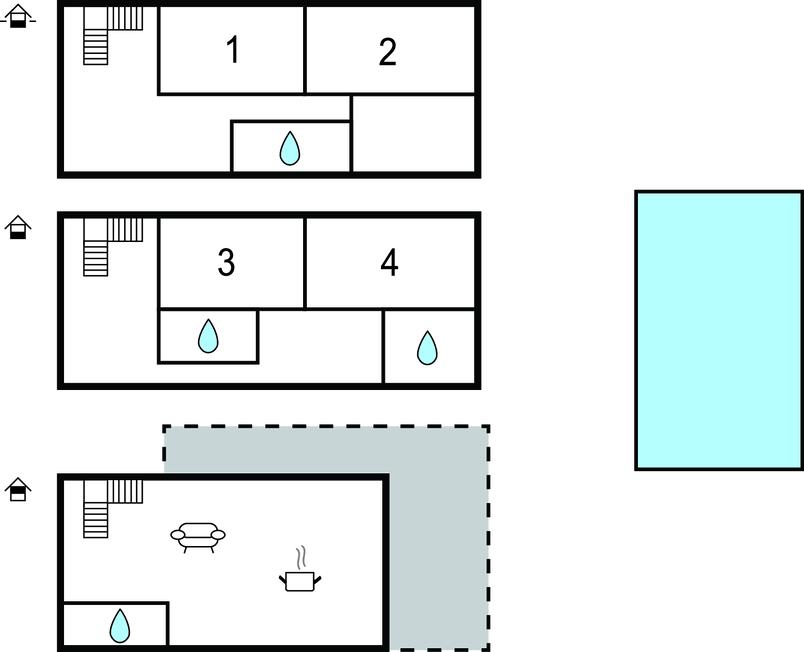 Badeværelse 6m2 (nr. 1) - WC. Varmt og koldt vand. Bruser
