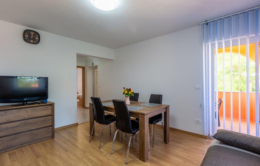 Nyd en afslappende ferie i denne komfortable ferielejlighed i rolige omgivelser. Omgivet af grønne områder inviterer denne moderne ferielejlighed jer til at tilbringe afslappende dage sammen med familien, mens I udforsker denne charmerende region. Tryl lækre måltider frem i det åbne køkken, planlæg jeres aktiviteter ved det indbydende spisebord, og stream jeres yndlingsserier på den behagelige sofa efter en begivenhedsrig dag. Server dagens første kop kaffe på den charmerende altan, eller snak i den varme sommernat over et glas regional vin. Udforsk den gamle bydel i Umag med dens smalle gader, historiske bygninger og livlige caféer lige ved havet. Tag en cykeltur langs den maleriske kystvej, eller svøm i Adriaterhavets krystalklare vand. Oplev regionens kulinariske mangfoldighed med et besøg på lokale vingårde og olivenolieproducenter i det istriske bagland. Tag en tur til middelalderbyen Grožnjan, som kan prale af kunstgallerier og en betagende udsigt, eller besøg romantiske Motovun, der ligger højt over Mirna-dalen.