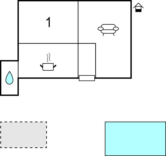 Soveværelse (nr. 1) - 1 Soveplads. (Enkeltseng(e)). 2 Sovepladser. (Dobbeltseng(e)).