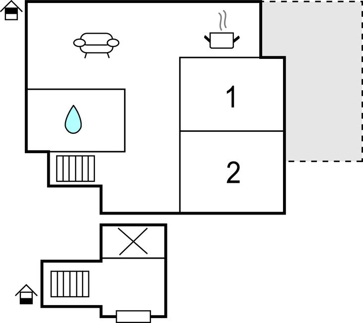 Opholdsstue/køkken - 1 Soveplads. (Sofa, madras eller lignende).