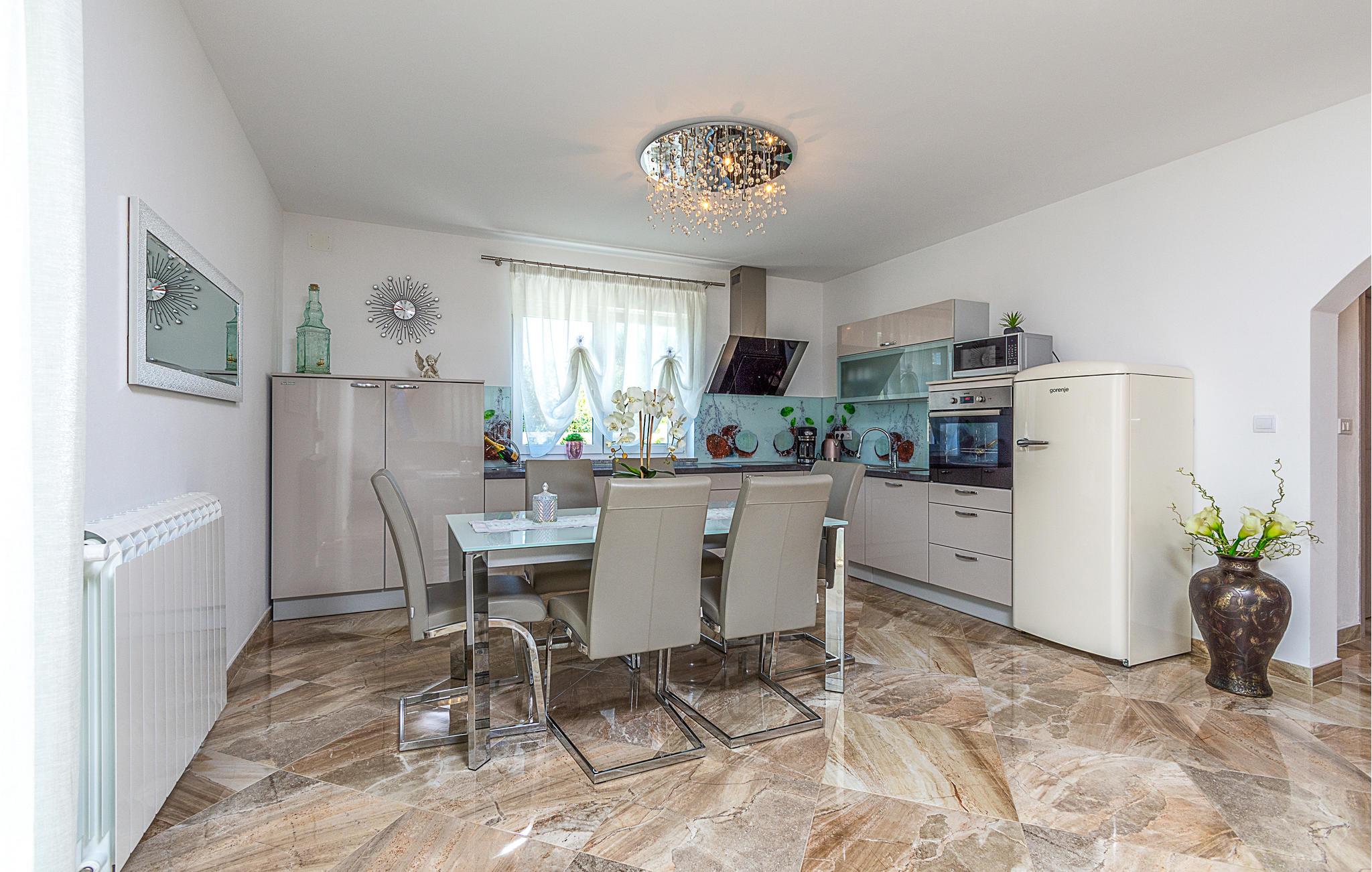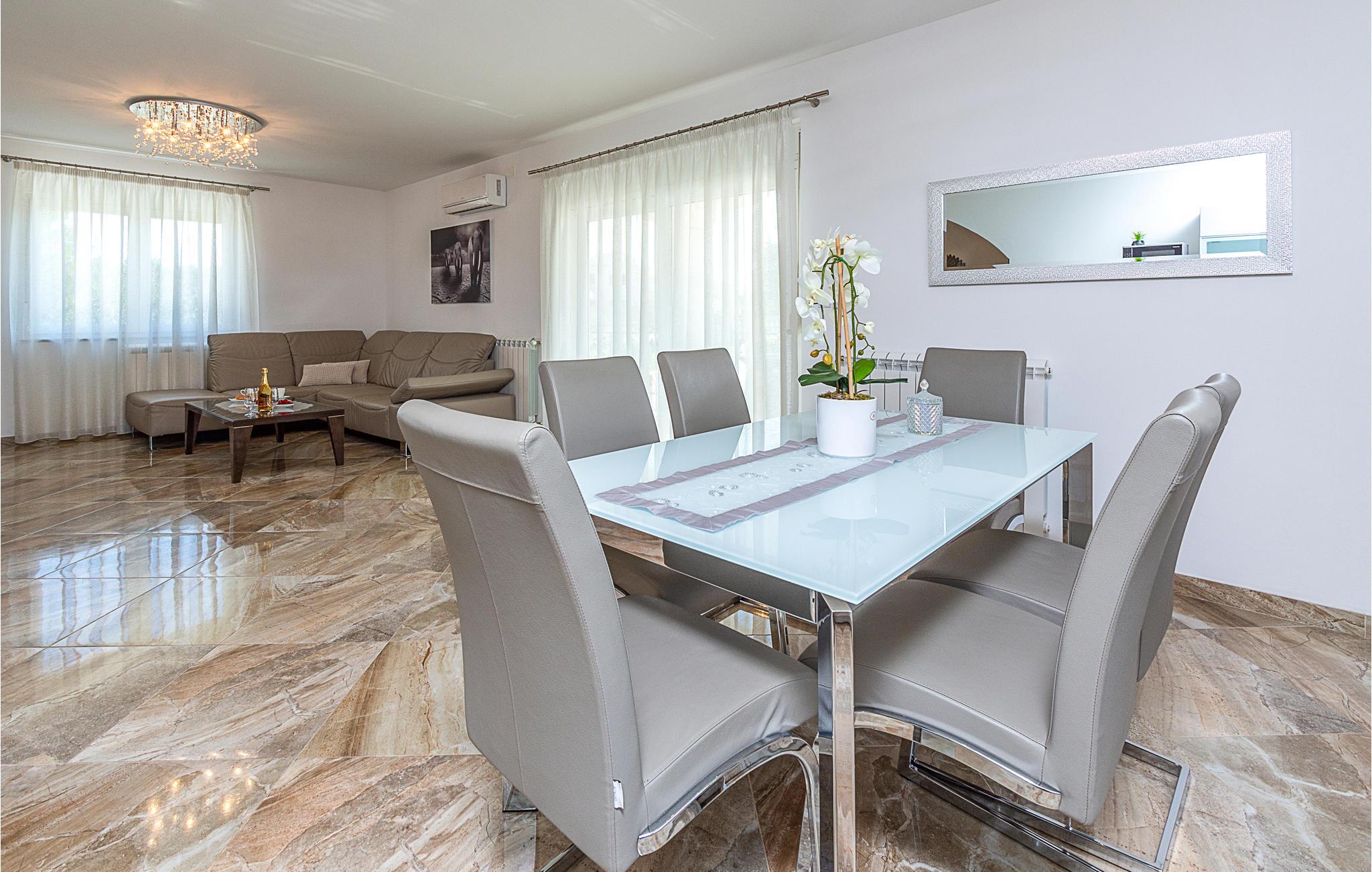 Denne rummelige feriebolig ligger i stueetagen. Den er moderne og behageligt indrettet og råder over tre soveværelser, et badeværelse, køkken med spisested samt opholdsstue. På den skønne terrasse kan I slappe af og nyde morgenkaffen. For naturelsekerner der særligt muligheder for spadsereture i det spændende område. Vinkenderen vil finde flere gode vinsteder, hvor man kan smage gode lokale vine. Kystbyerne Umag, Porec og Rovinj ligger inden for overkommelig afstand, og her kan man opleve områdets kultur og historie tæt på.