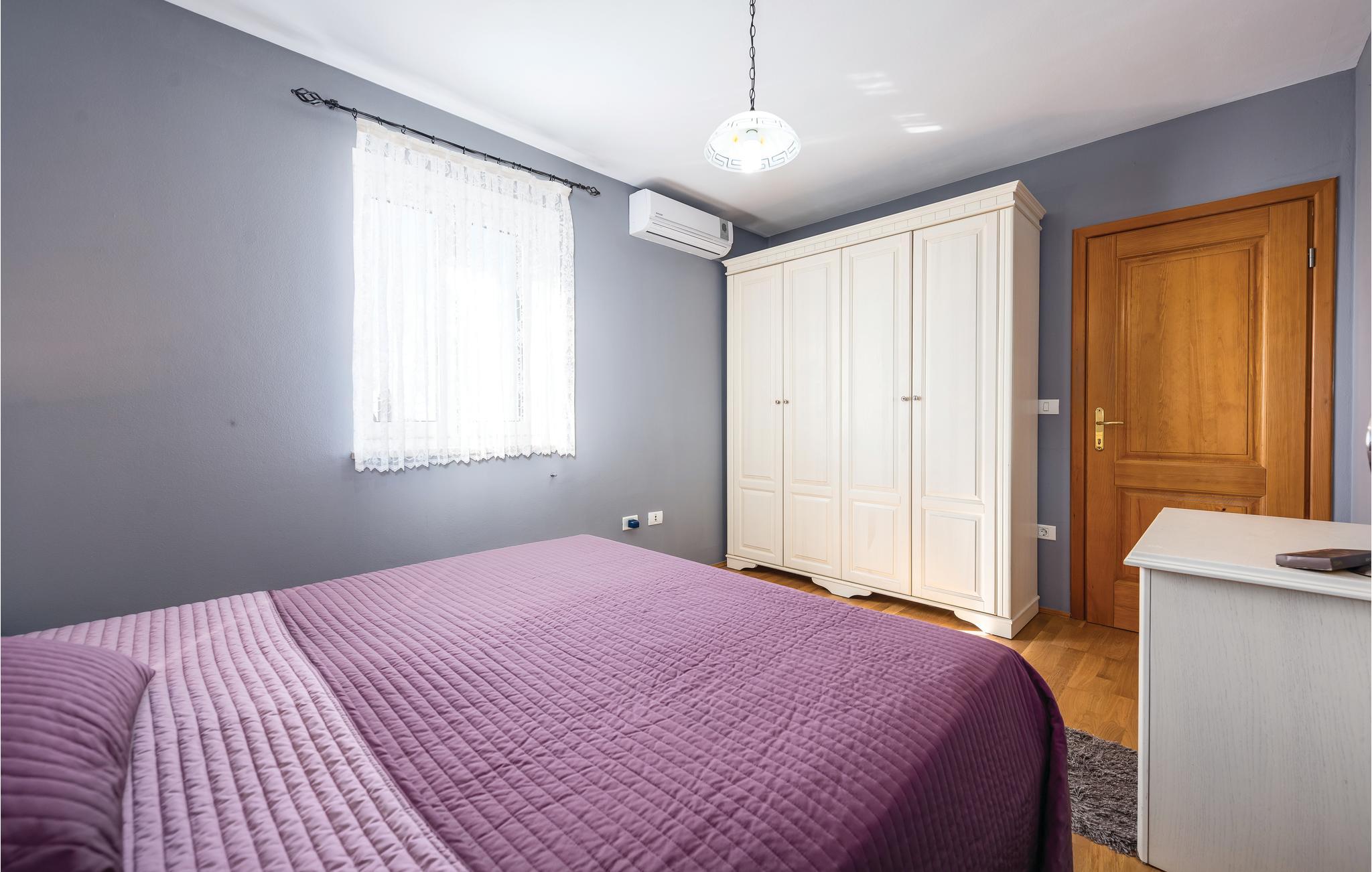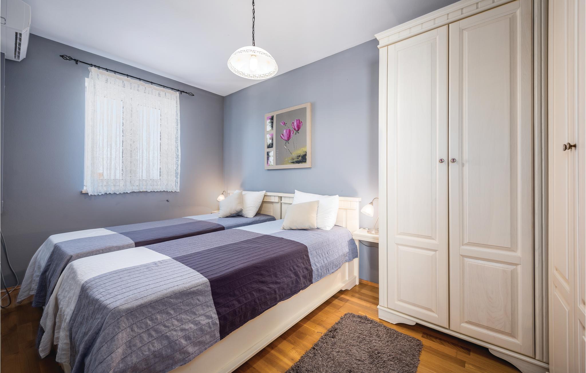 I den lille ferieby, kun nogle minutters gang fra stranden, ligger dette dobbelthus. Rummene er komfortabelt indrettede. I byen er der nogle restauranter og et indkøbsmarked. Foran huset er poolen, hvor I kan køle jer af i sommerens hede, og yderligere forfriskning giver huset i de klimatiserede rum. Kør til byen Umag med forskellige sommerarrangementer, den er også kendt for et interessant natteliv. Eller kør til den romantiske gamle bydel i Novigrad, også der venter der jer en rig historisk arv.