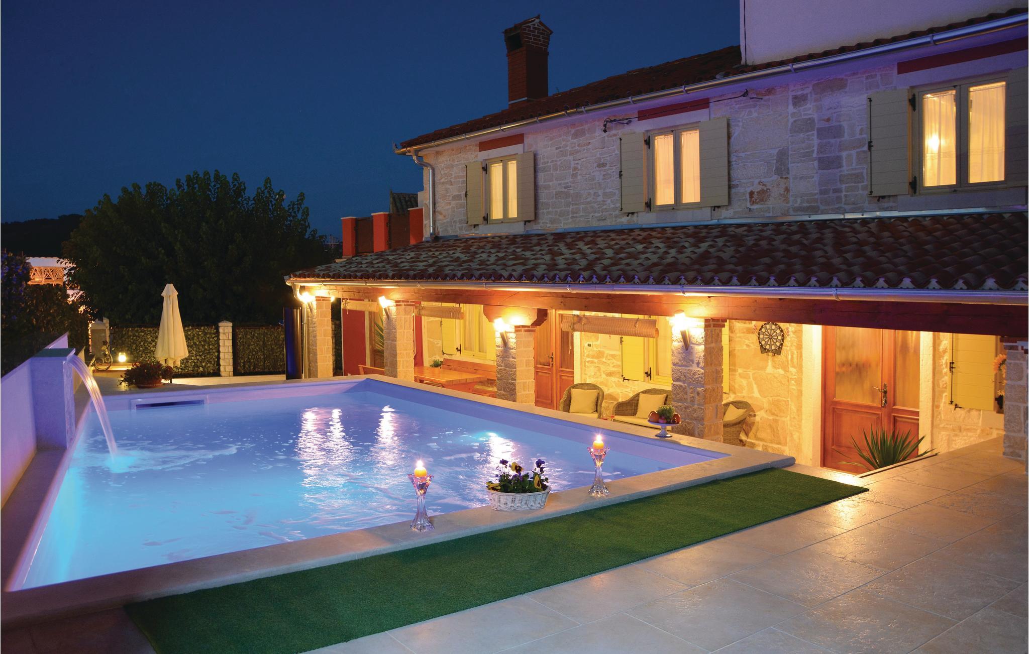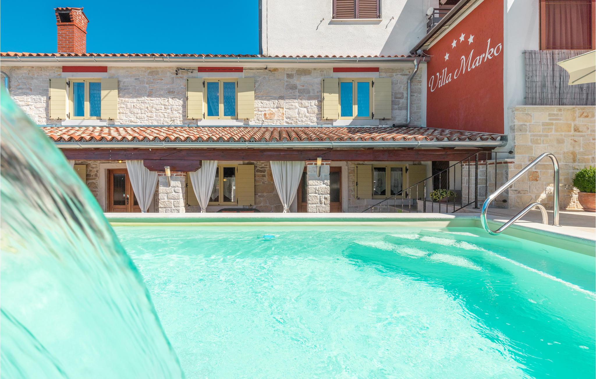 Dette skønt indrettede feriehus med pool ligger i Plovanija, en lille by i nærheden af Sloveniens grænse. Her kan I holde et komfortabelt ophold i en rustikke og moderne omgivelser. Tag en forfriskende og afslappende svømmetur i poolen, der er udstyret med massagedyser til de stive og ømme muskler, der hurtigt bliver løsnet helt op.