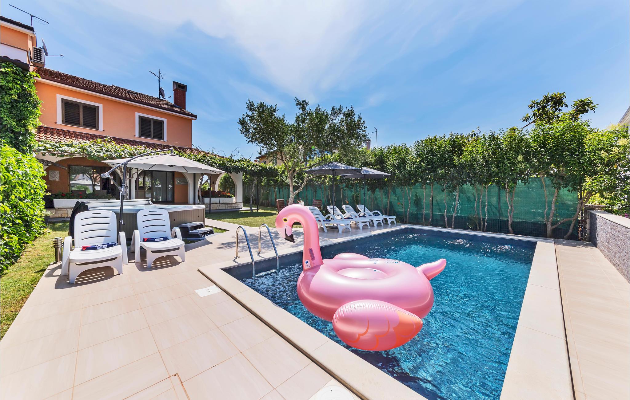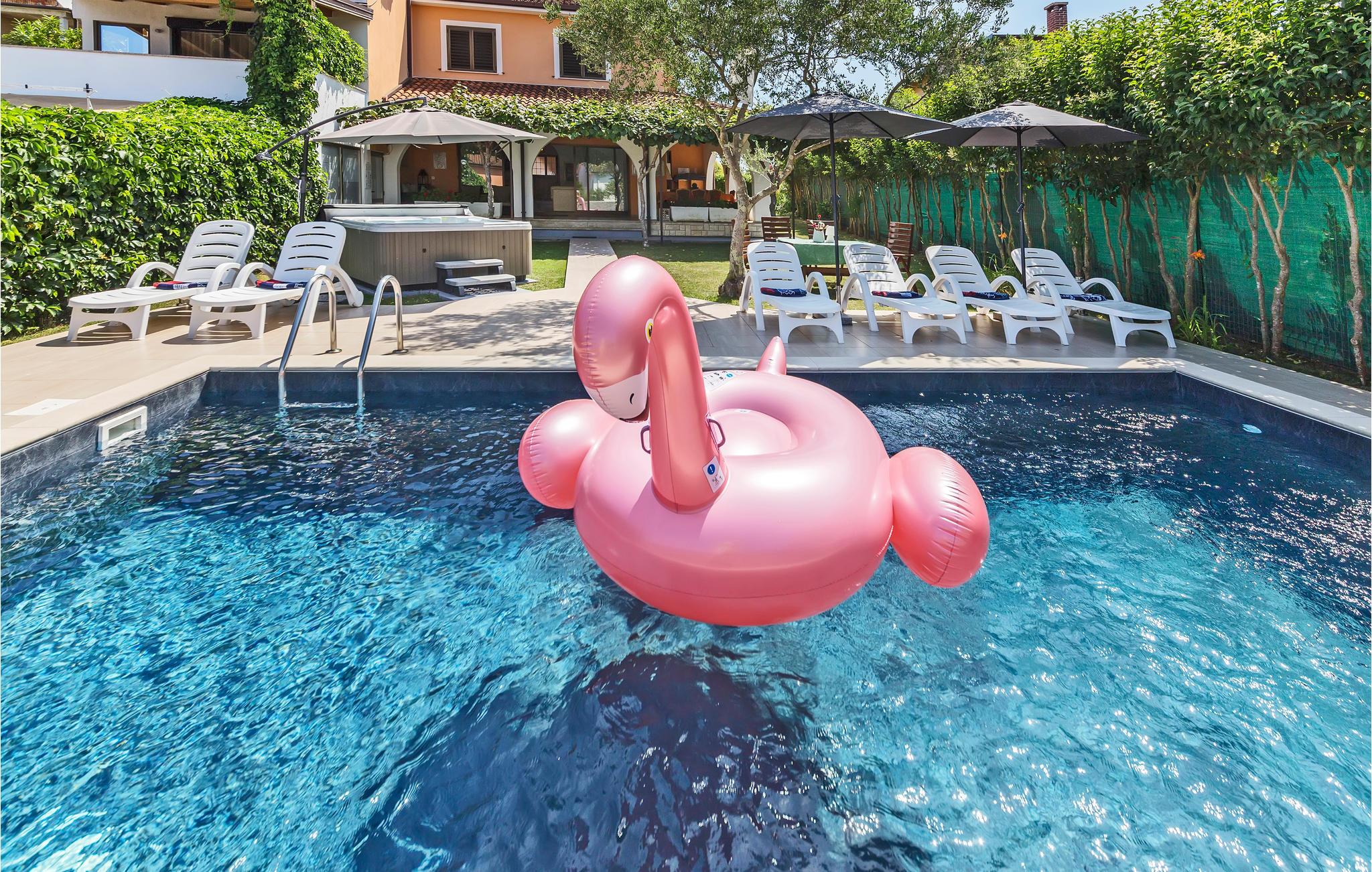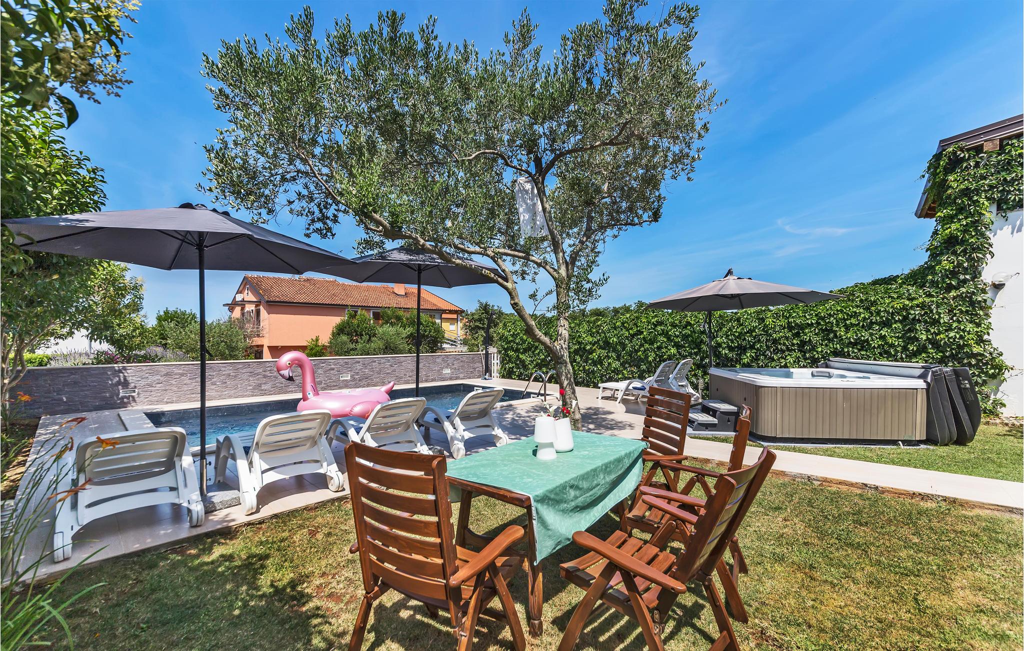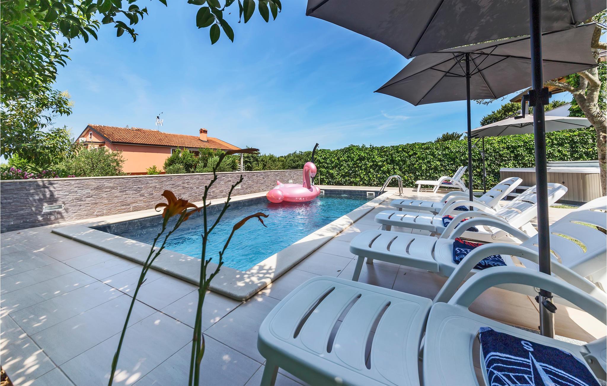 Dette smukke feriehus med egen stor anlagt have ligger i nærheden af Umag. De åbne og lyse rum er hyggelige og indrettet med stor forkærlighed for detaljen. Fra den rummelige opholdsstue kan I komme direkte ud på den overdækkede terrasse, som ligger i skygge og har en vidunderlig udsigt ud over den velholdte have med forskellige mediterrane planter. Her vil I med garanti også tilbringe mange hyggelige grillaftener i den behagelige atmosfære. Besøg også Umag med de mange muligheder for de aktive feriegæster samt et livligt natteliv til jer, der gerne vil udforske det.