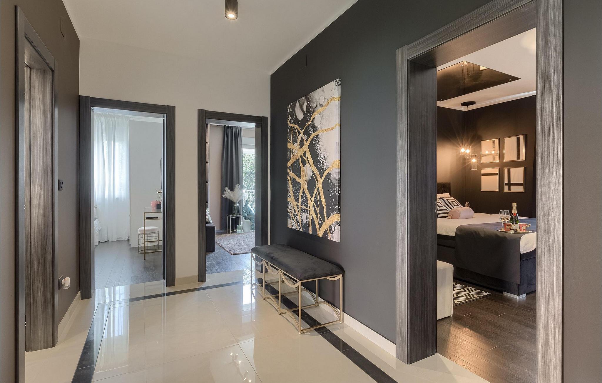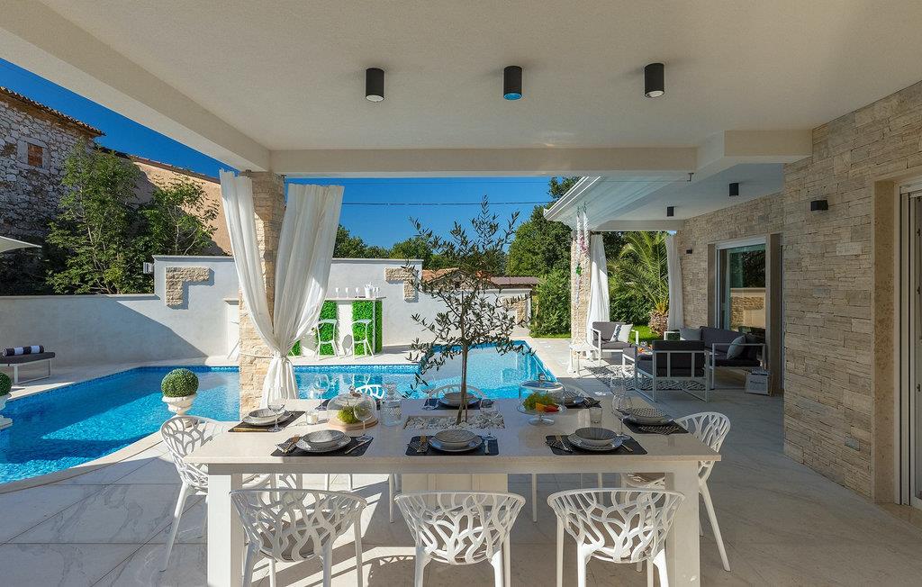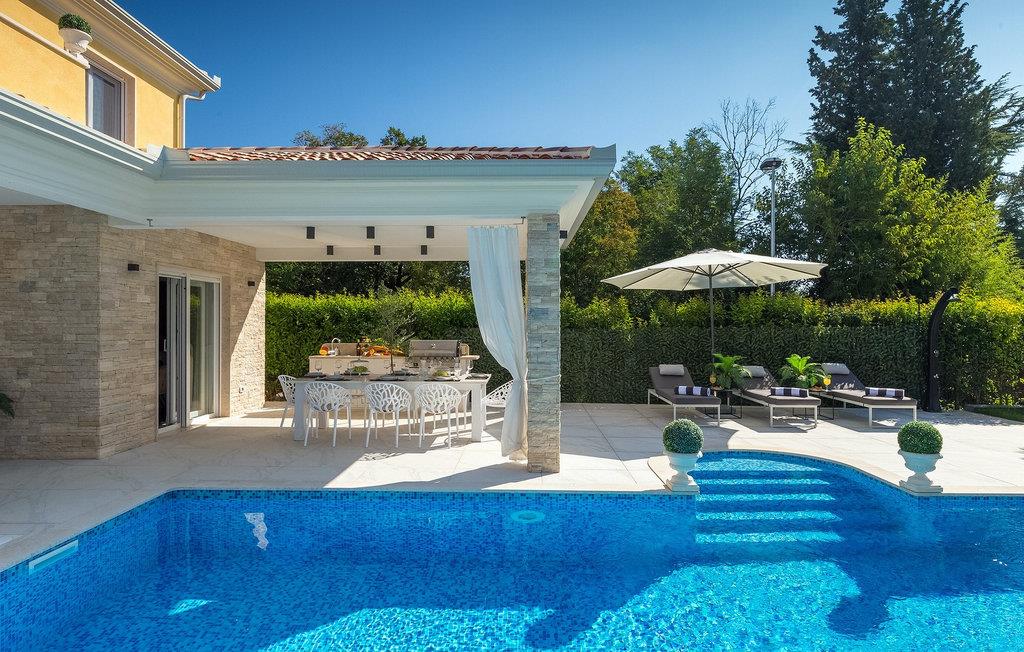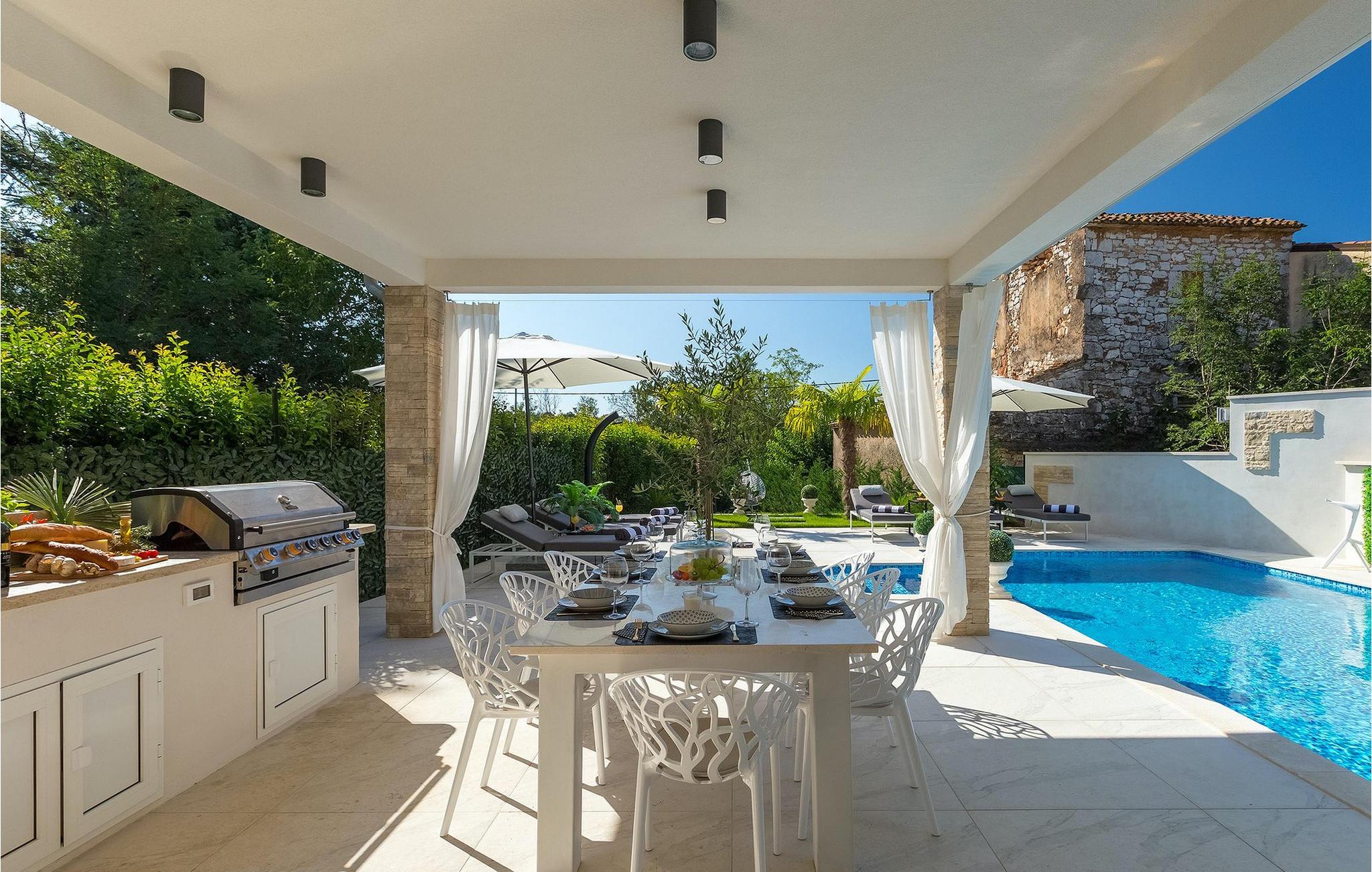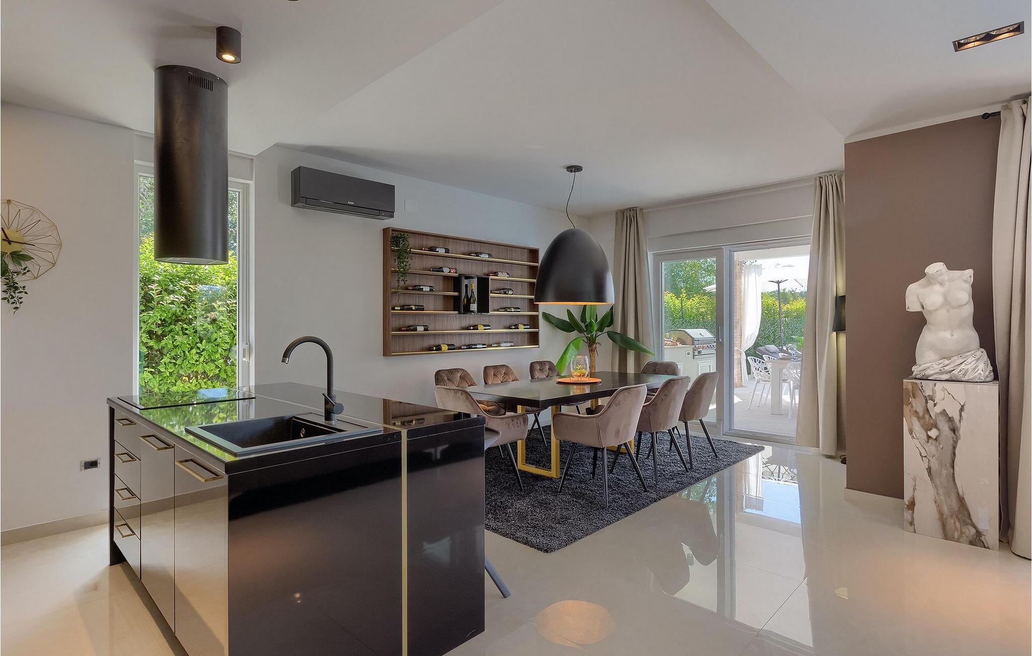 Træd ind i den storslåede Villa Santo, en ideel kombination af traditionel istrisk stil og moderne møbler. Elegante og moderne detaljer er hovedtræk ved denne villa kombineret med stenen eksteriør. Det, der gør Villa Santo til noget særligt, er den private biograf på første sal med 6 massagestole, et 75" TV og en popcornmaskine til en rigtig filmoplevelse med din familie og venner. Vi er sikre på, at du vil tilbringe en masse uforglemmelige øjeblikke og film. overnatninger i denne charmerende lille biograf.Villa Santo har et fantastisk interiør, der kan rumme i alt 8 personer i smukke omgivelser.Villaen er opdelt i to etager med moderne og fornemme detaljer.I villaens stueetage er der et åbent rum med stue, køkken og spiseplads, et soveværelse og et badeværelse. På første sal er der 3 komfortable soveværelser, 2 badeværelser og hjemmebiografen. Fantastiske soveværelser vil give dig hvile og komfort under smukke baldakiner. Fra stuen er der udgang til udendørs terrasse med privat pool og udendørs spiseplads med grillplads, så du kan tilberede måltider i udekøkkenet ved siden af ??poolen. dage og nyd sommerens charme i dette magiske klima i Istrien. Vi er sikre på, at Villa Santo vil give dig den ferie, du fortjener i denne guddommelige residens. Beliggende for enden af ??den vestlige kyst af halvøen Istrien er den storslåede by Umag. Rig historie, krystalklart hav og majestætiske strande pryder dette klima. Bymuren såvel som den berømte bro blev bygget i det 10. århundrede. Glem ikke at besøge den berømte kirke St. Roche, som blev bygget i 1507 efter pestepidemien. Villa Santo ligger ikke langt fra byen Umag, som kun er 9 minutters kørsel væk. Du kan nemt besøge alle de berømte seværdigheder såsom det berømte Savudrija Fyrtårn helt øverst på halvøen, som ligger 20 minutter i bil væk. Klippe- og stenstrande ligger kun 1,2 km væk og ligger i Camp Finida. Fans af gastronomi vil blive henrykte over udbuddet af restauranter og vingårde i dette område, og hvis du forbereder middag til dine kære, kan du finde alle de nødvendige dagligvarer i supermarkeder og små butikker i området 2 km fra villaen.