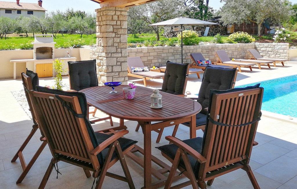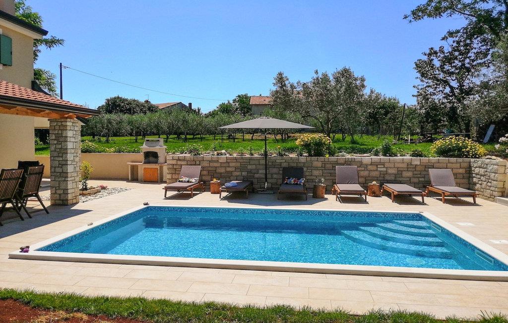 Villa Stella Juricani har en privat pool og 6 liggestole, hvor du kan slappe af efter svømning. På terrassen ved siden af liggestolene er der også 2 parasoller, så du kan læne dig tilbage og nyde dagen ved at solbade, lytte til musik eller læse en bog. Der er en kulgrill på terrassen, hvor du kan lave et solidt måltid til familie og venner. Villaen er omgivet af en stenmur, som er typisk for Istrien. Bag stenmuren er der en stor olivenlund, så du kan nyde udsigten, og også gå en tur og udforske området.