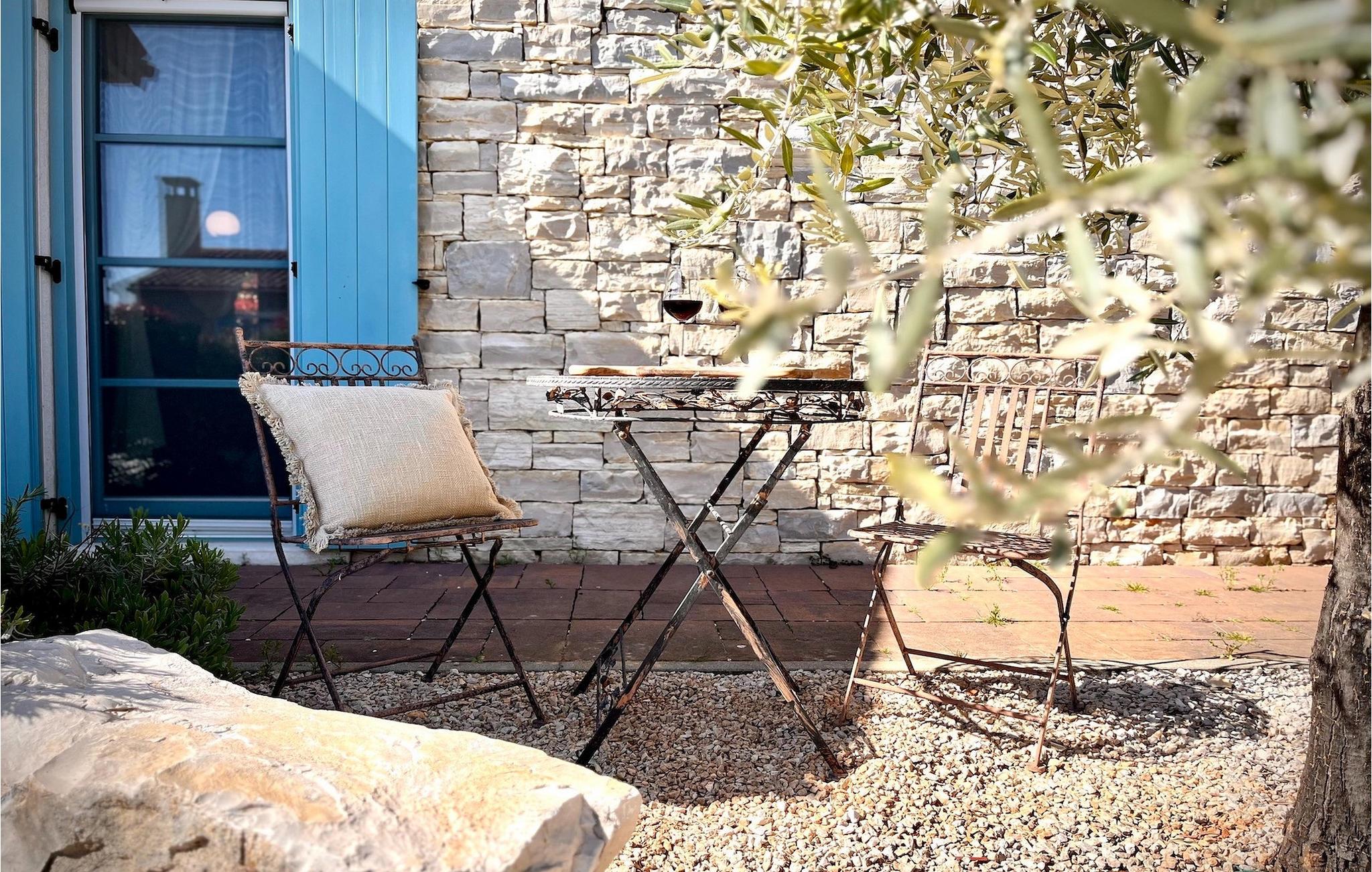 Det fantastiske interiør i denne stenvilla er formet af træmøbler af høj kvalitet og nøje udvalgte detaljer. Stueetagen består af en lys og luftig opholdsstue forbundet med et fuldt udstyret køkken med integreret spisestue. Den charmerende atmosfære i stuen gør den til et perfekt sted at nyde en god bog eller selskabet med dine kære. Der er også et soveværelse med to enkeltsenge og eget badeværelse i stueetagen. Et soveværelse med dobbeltseng med eget badeværelse og privat balkon er på øverste etage.