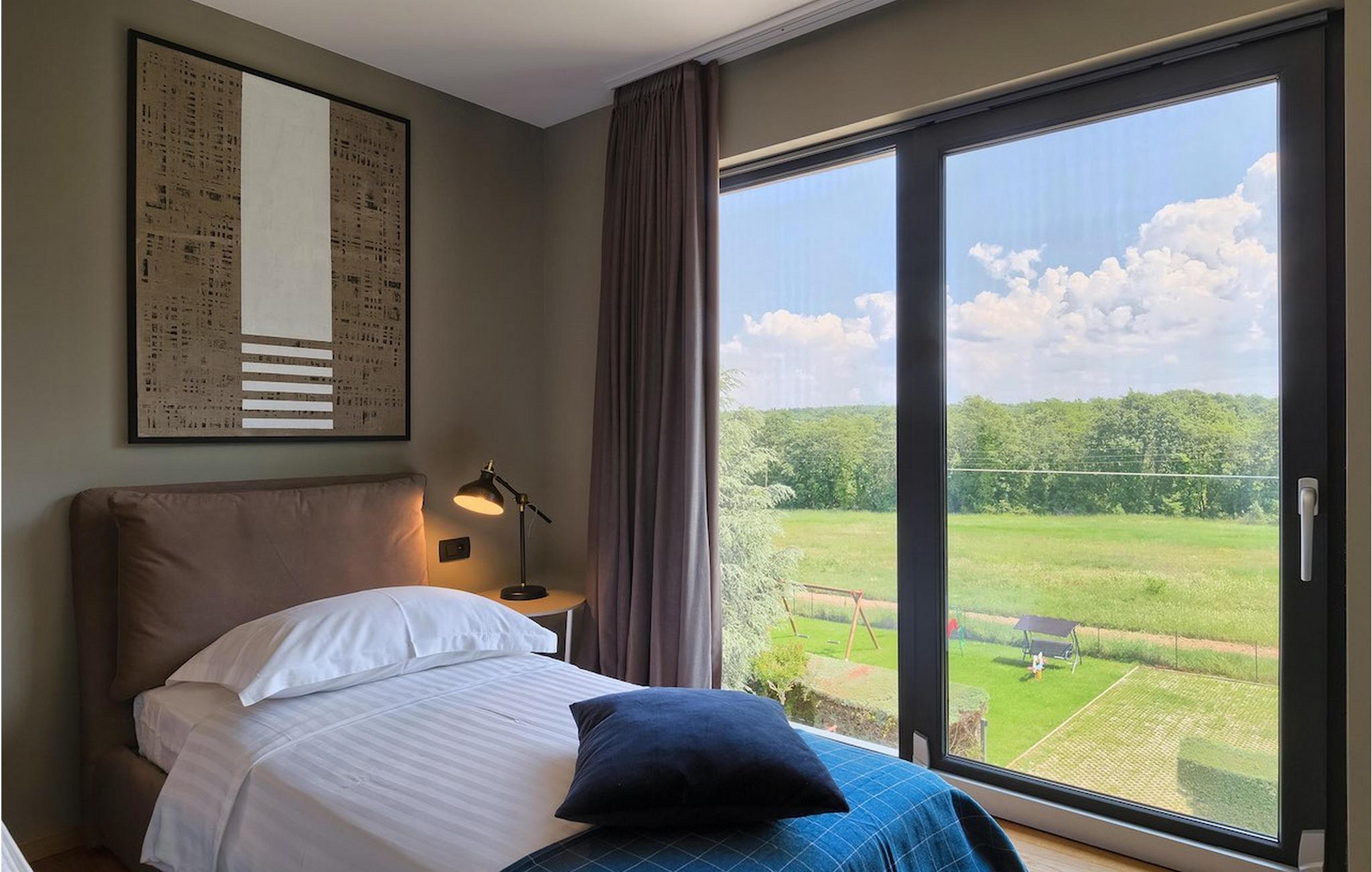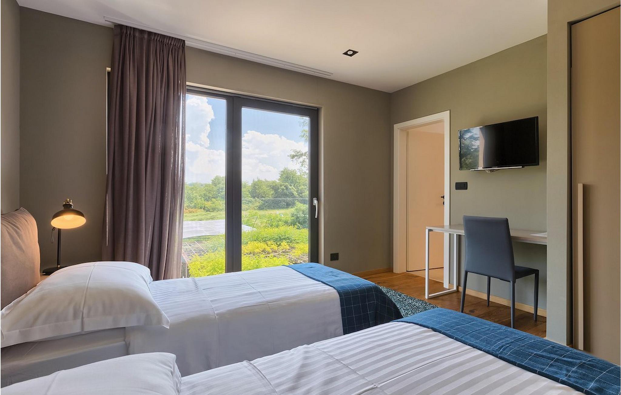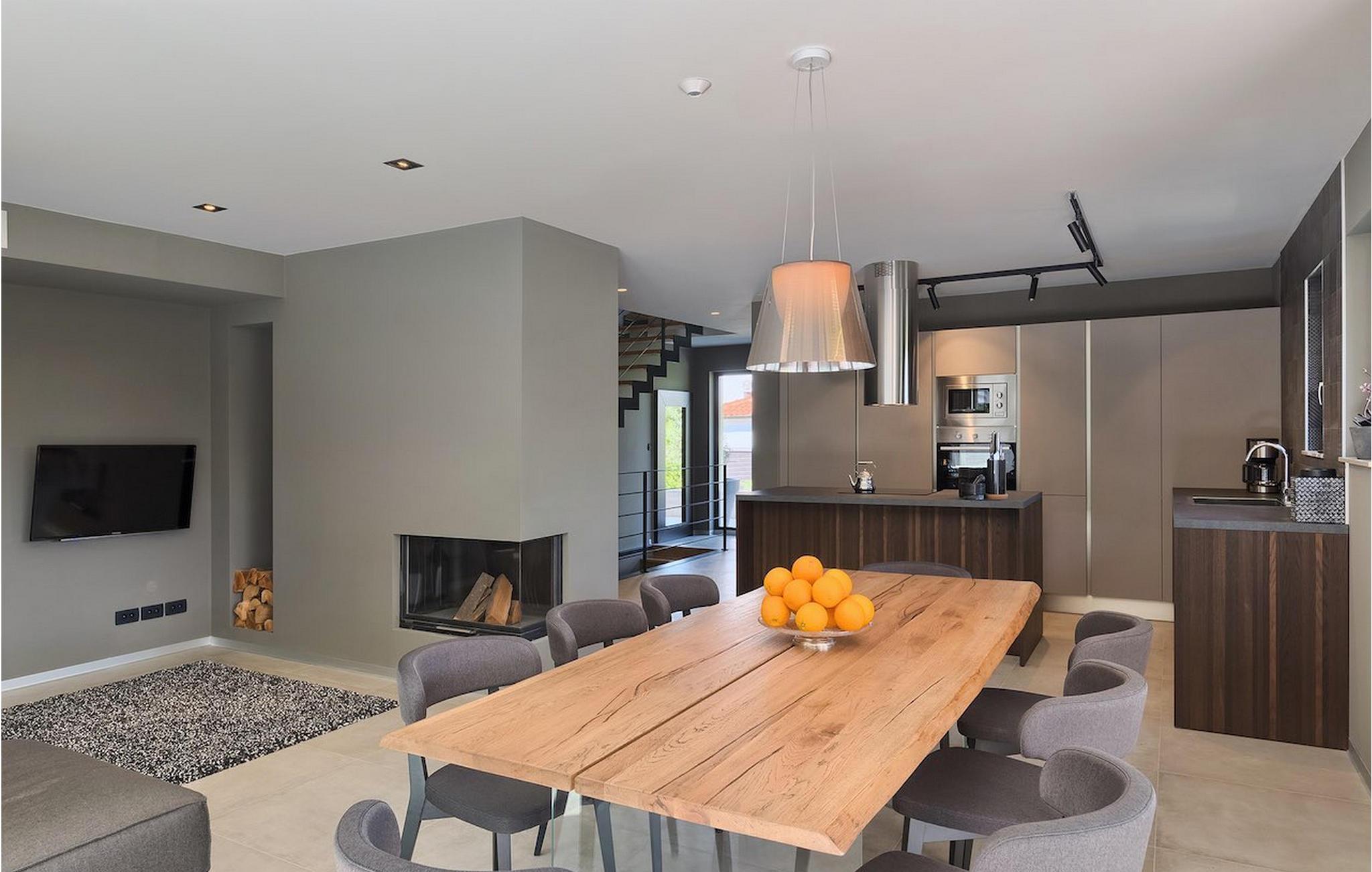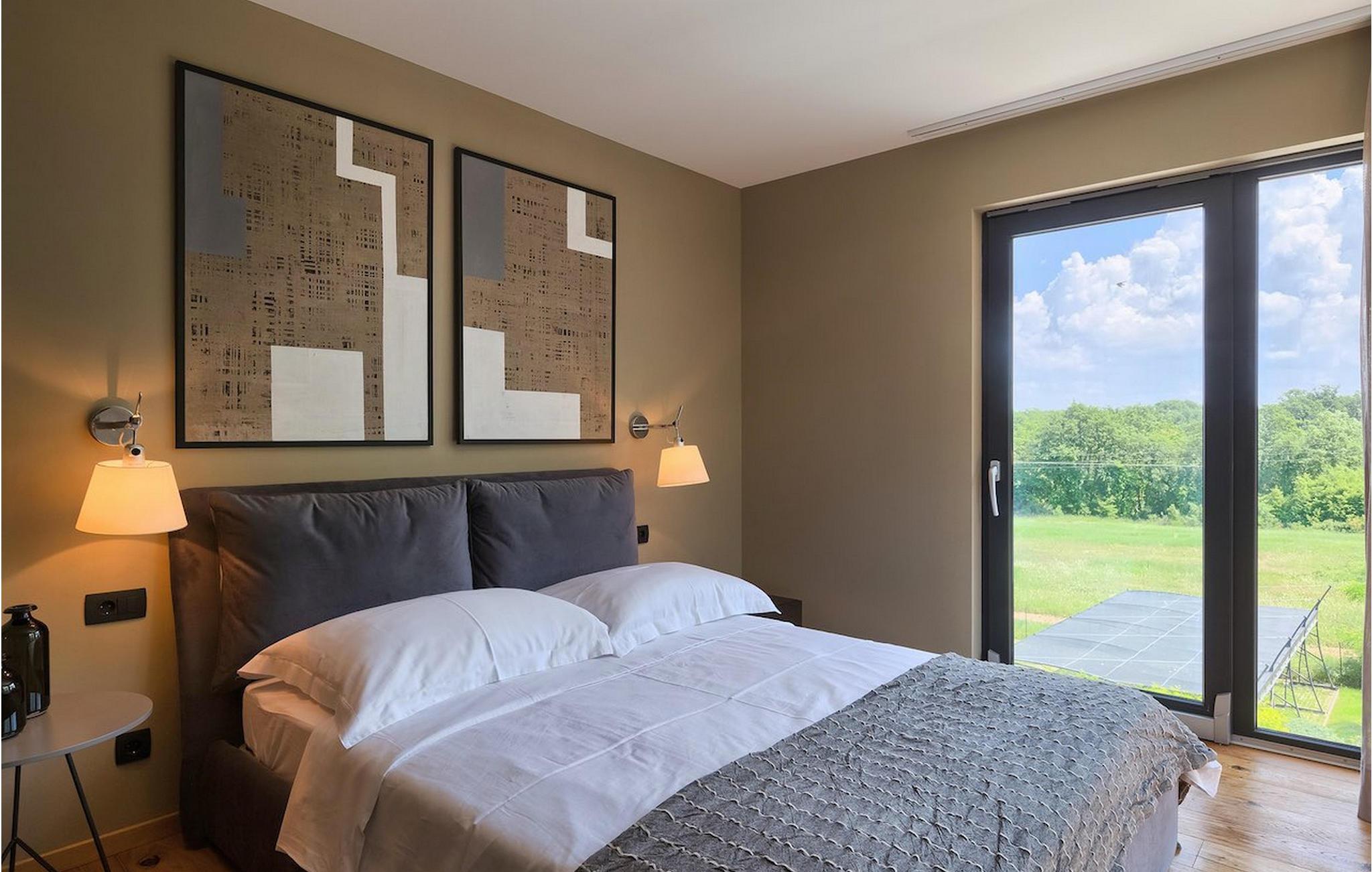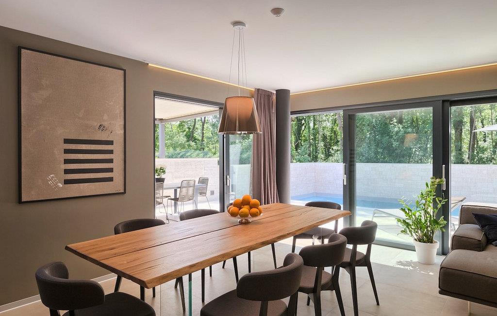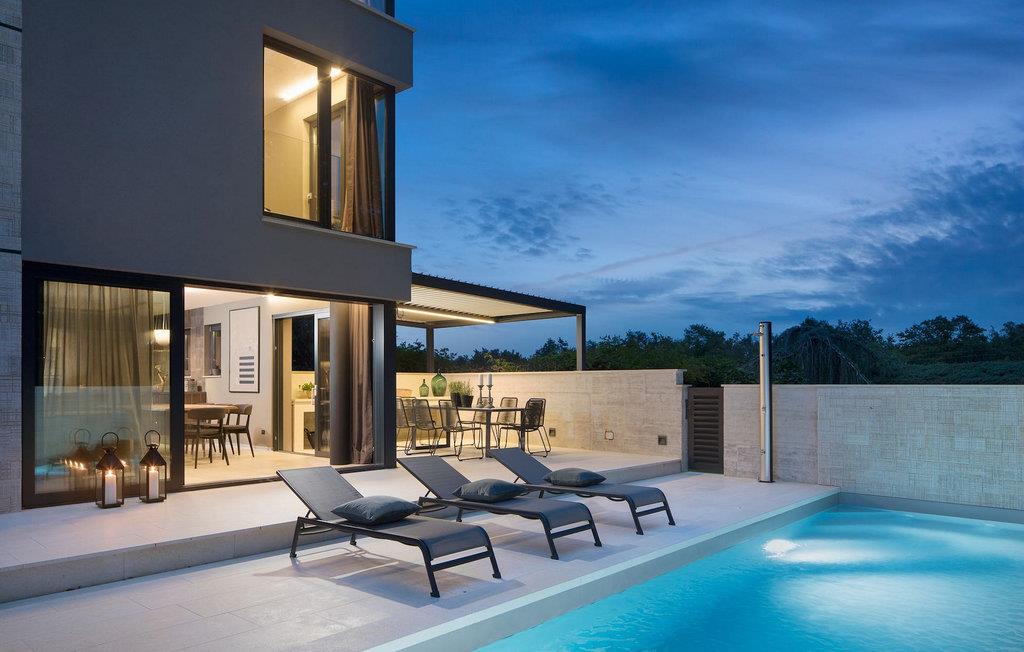 Villa Oliva 2 er beliggende i byen Umag, på den vestlige del af halvøen Istrien. Det moderne design og beliggenheden af denne smukke ferievilla lader ikke meget tilbage at ønske. Havet med smukke strande ligger kun 150 m væk. Villaen kan maksimalt rumme 8+2 gæster og har fire soveværelser. Den luftige og rummelige stueetage byder på en moderne luksuriøs opholdsstue samt et fuldt udstyret køkken og spiseplads, hvorfra store altanskydedøre fører til den private pool, som kan opvarmes på forespørgsel og mod et tillæg, og til udendørs spisepladsen. På de to øverste etager finder du de 4 soveværelser, hver med eget badeværelse, jævnt fordelt. For underholdning, tag til den nederste etage, hvor et poolbord samt en bordfodbold og dart venter på dig. Villaen er et dobbelthus, men tilbyder fuldstændig privatliv takket være det høje hegn. De to villaer kan også lejes sammen. Ved siden af villaen ligger en eng med legeplads og stor parkeringsplads, som begge deles med Villa Oliva 1.