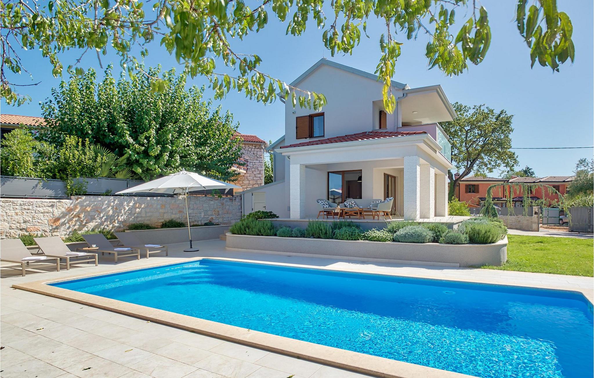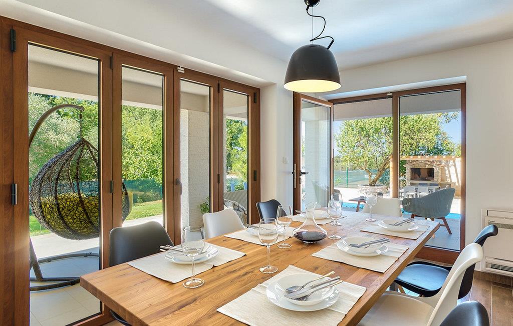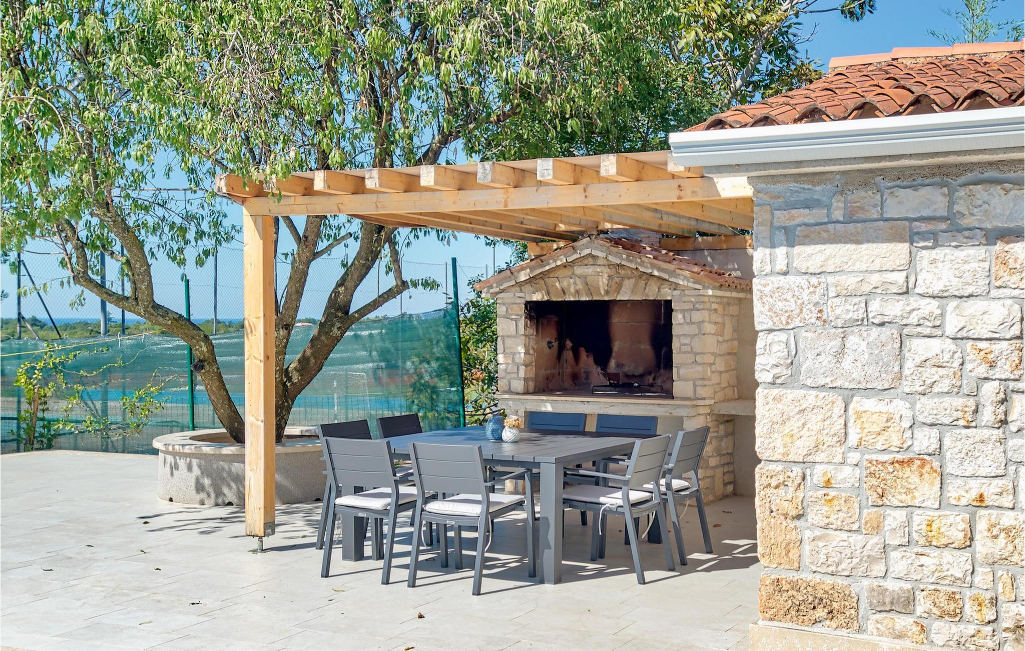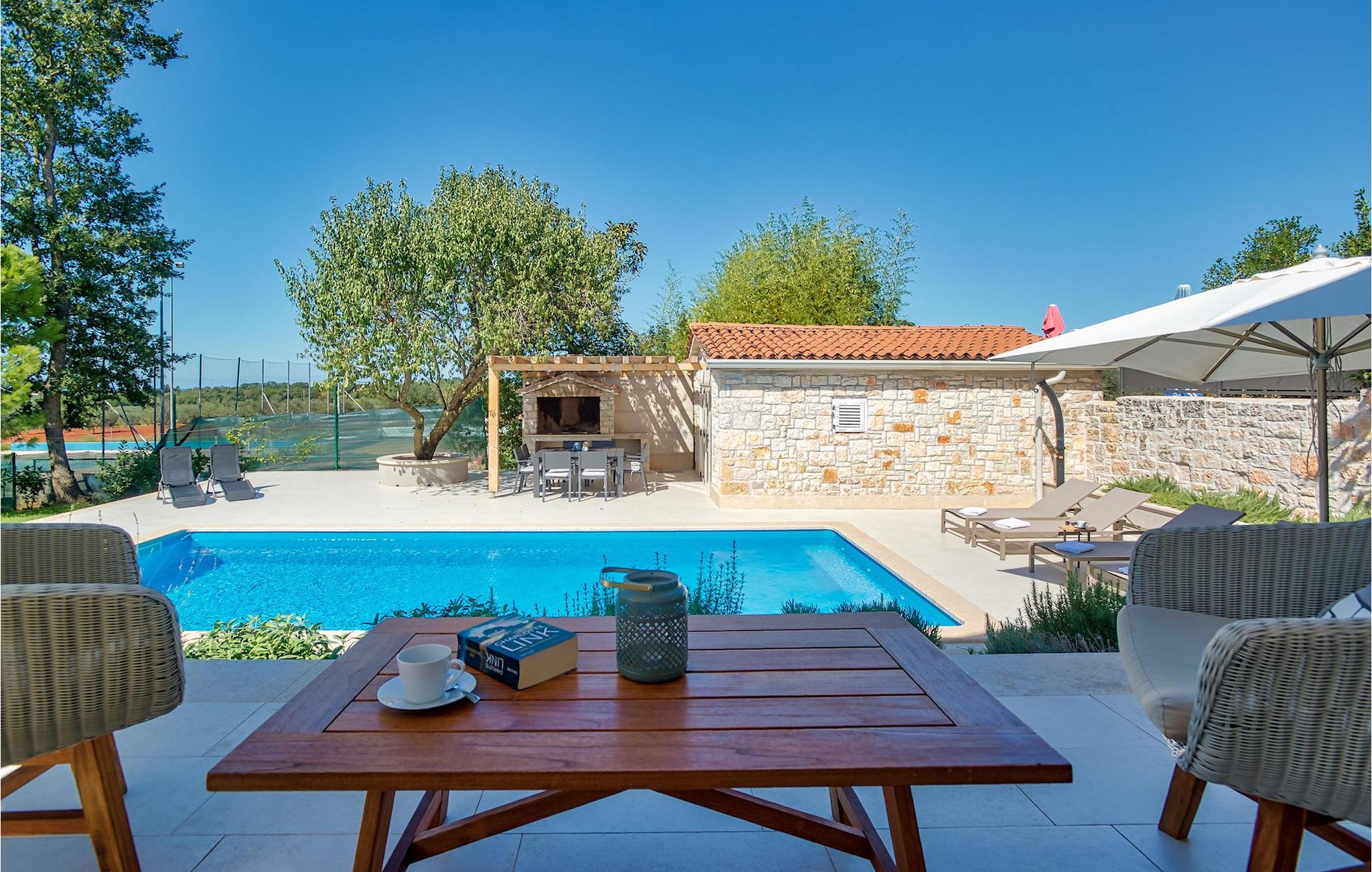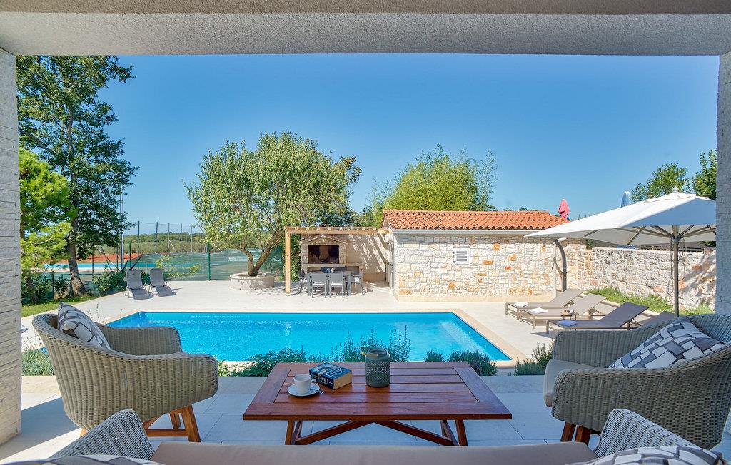Der er 2 ekstra udendørs terrasser i stueplan med adgang til haven og poolen. Der er en udendørs spiseplads i det lille hus ved siden af poolen, udstyret med en grill og et lille udendørs køkken, en dejlig ramme for din udendørs middag. VIlla Radini har privat parkering til 3 biler, er udstyret med Wi-Fi og har 4 cykler, du kan udforske det omkringliggende område med, for at gennemføre en velfortjent ferie :)Villa Radini ligger i den lille landsby Radini, som ligger tæt på til den lille kommune Brtonigla, i den nordvestlige del af Istrien-halvøen. Adriaterhavet skyller den vestlige del af amtet, og den østlige del nås af Mirna-floden.