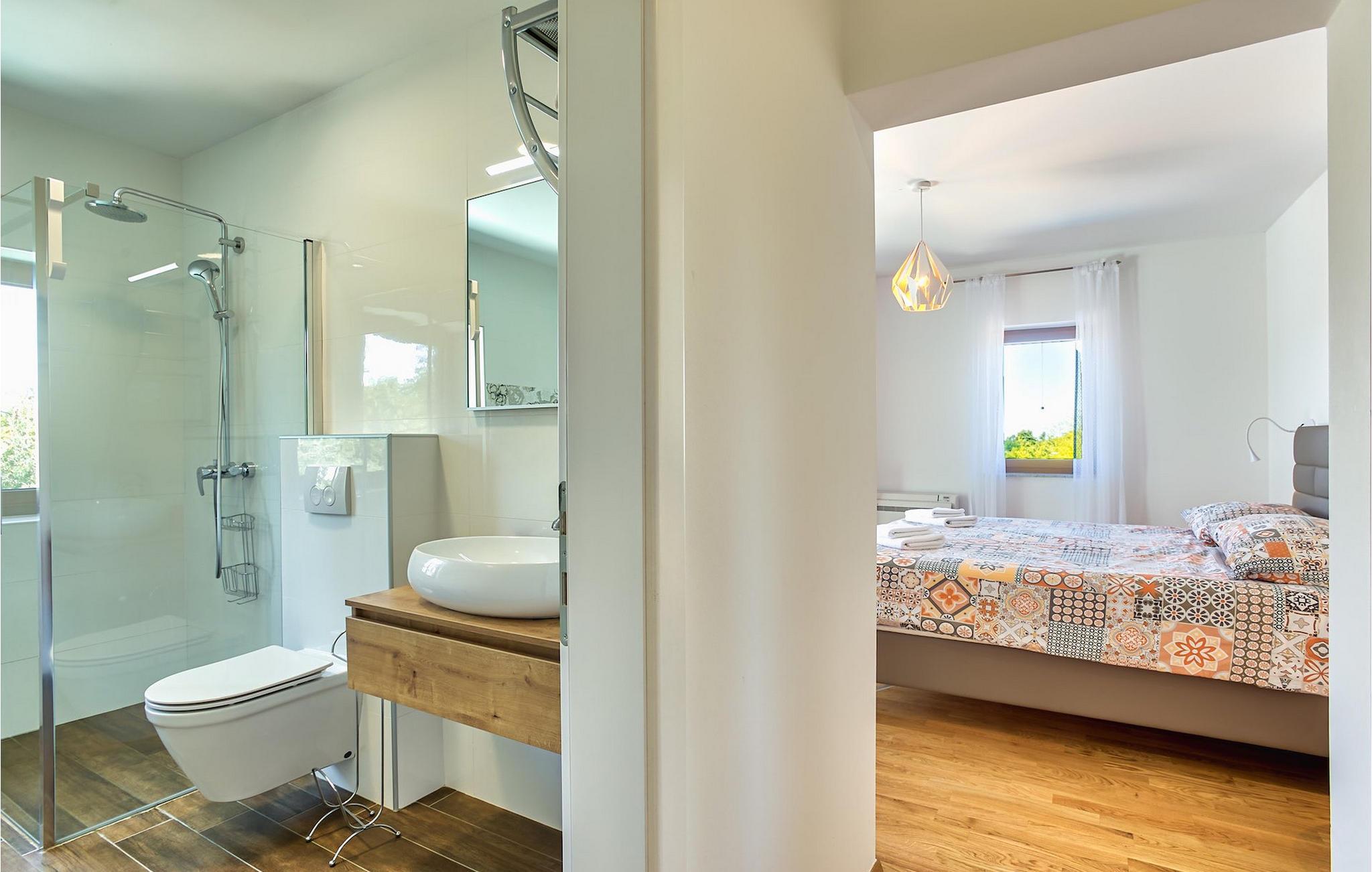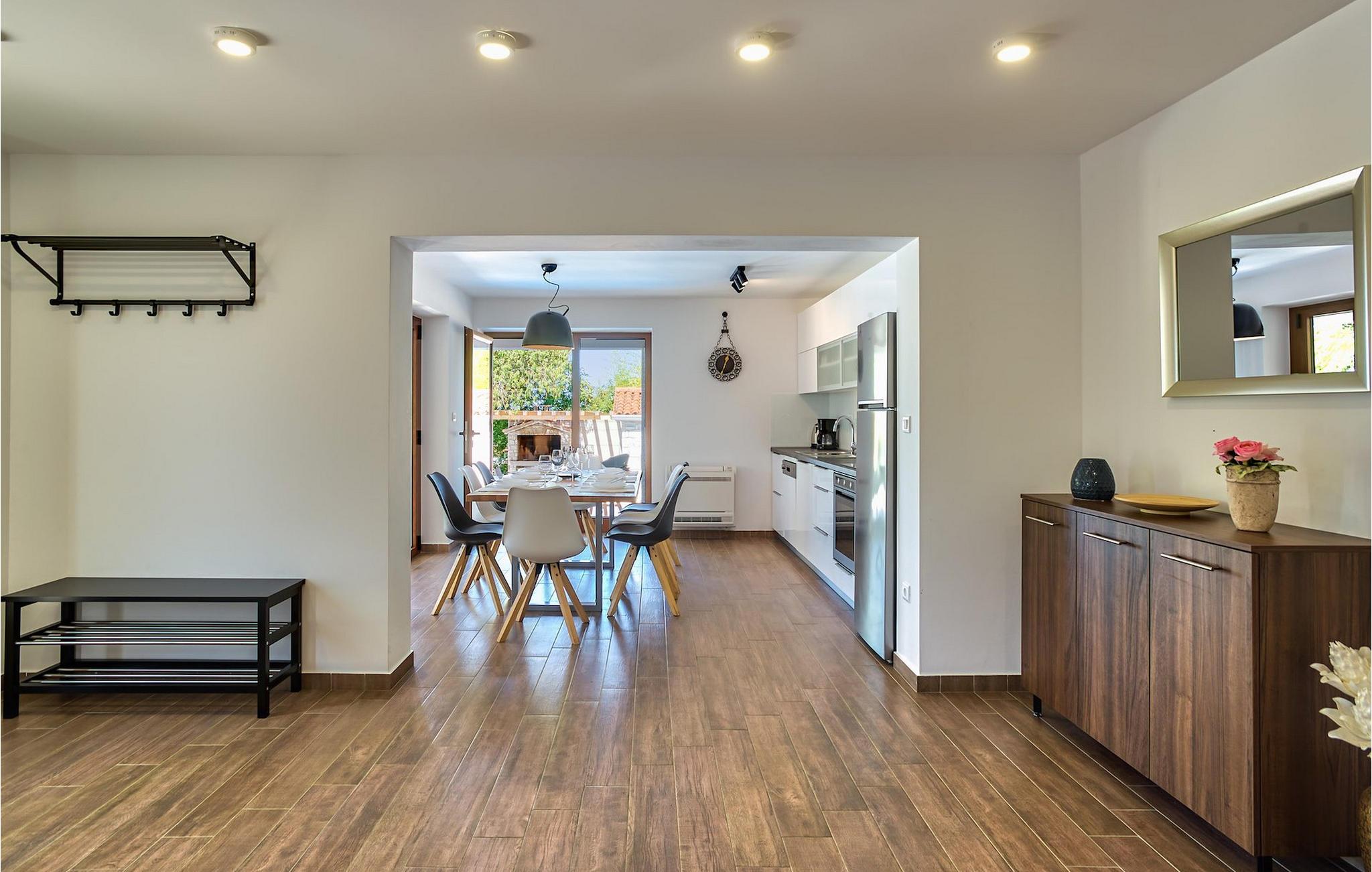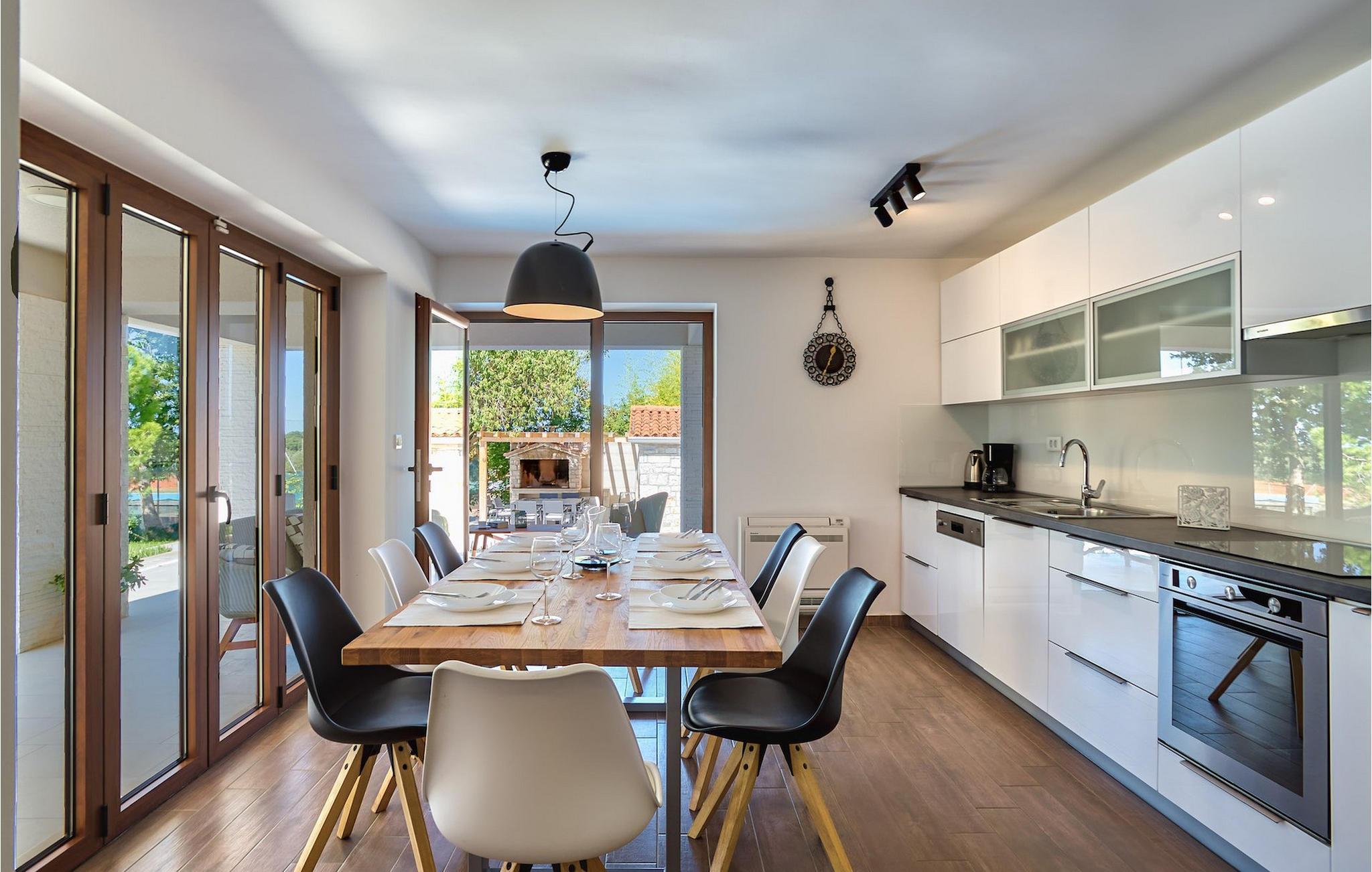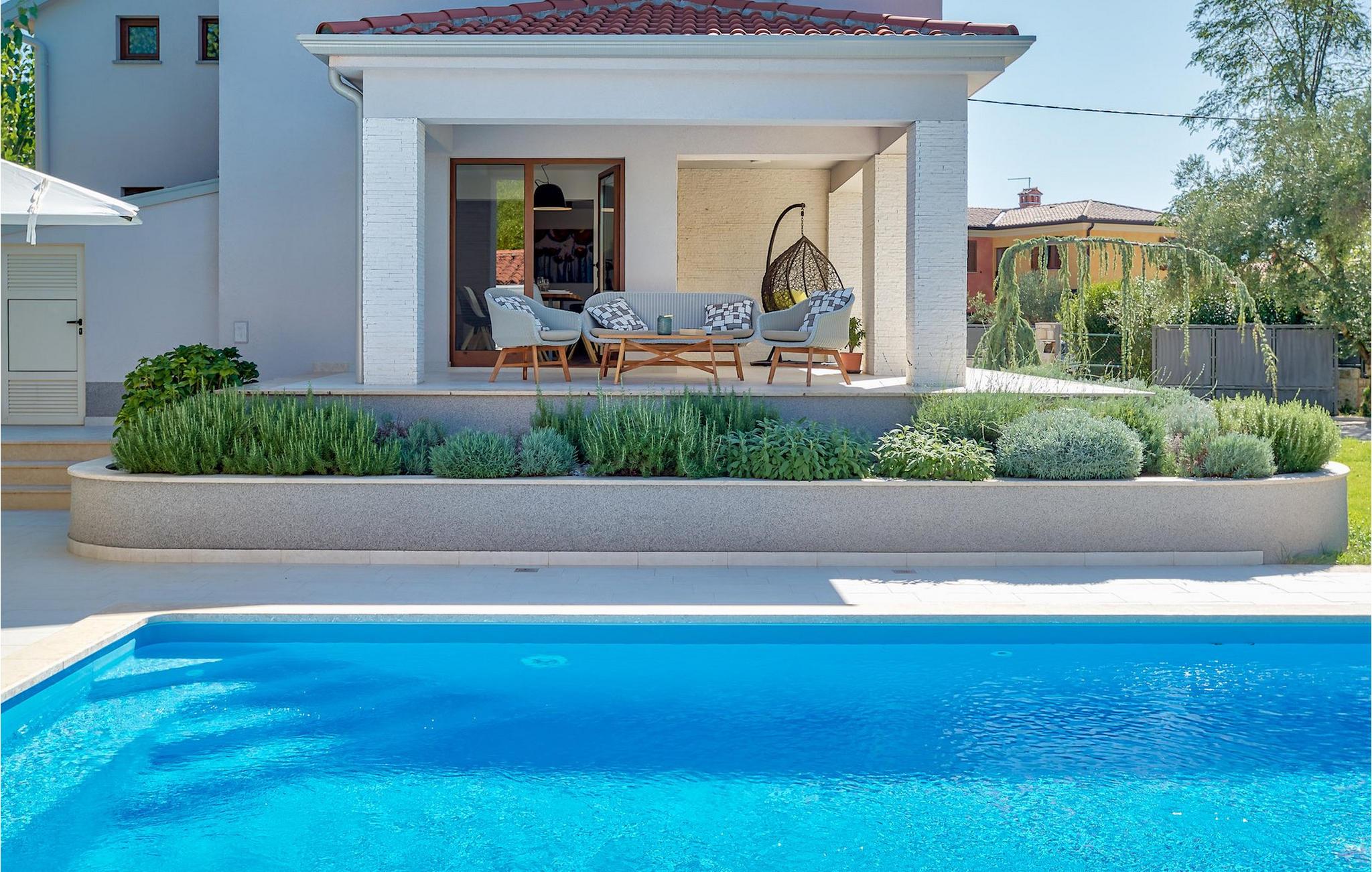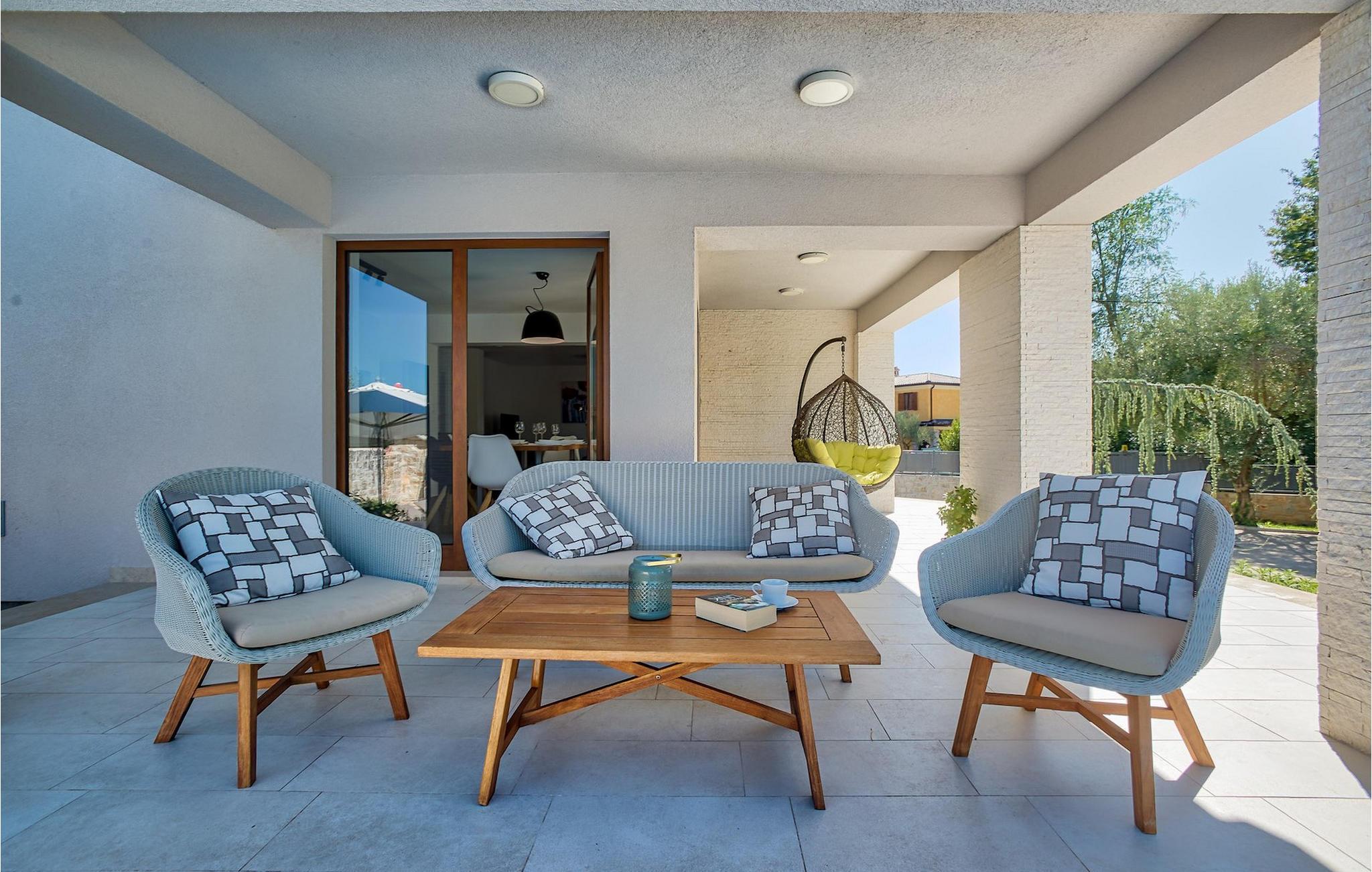 Der er 2 ekstra udendørs terrasser i stueplan med adgang til haven og poolen. Der er en udendørs spiseplads i det lille hus ved siden af poolen, udstyret med en grill og et lille udendørs køkken, en dejlig ramme for din udendørs middag. VIlla Radini har privat parkering til 3 biler, er udstyret med Wi-Fi og har 4 cykler, du kan udforske det omkringliggende område med, for at gennemføre en velfortjent ferie :)Villa Radini ligger i den lille landsby Radini, som ligger tæt på til den lille kommune Brtonigla, i den nordvestlige del af Istrien-halvøen. Adriaterhavet skyller den vestlige del af amtet, og den østlige del nås af Mirna-floden.