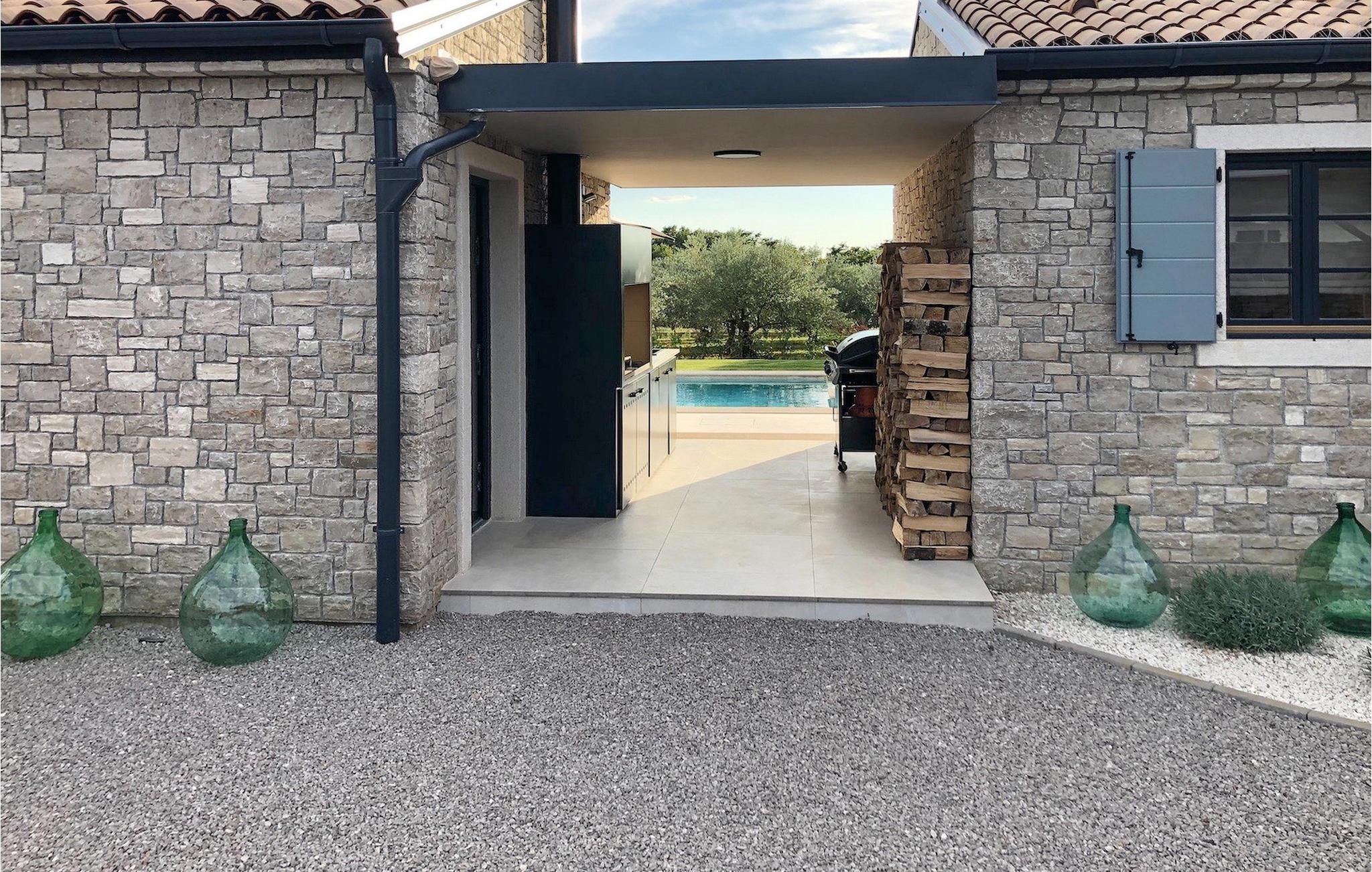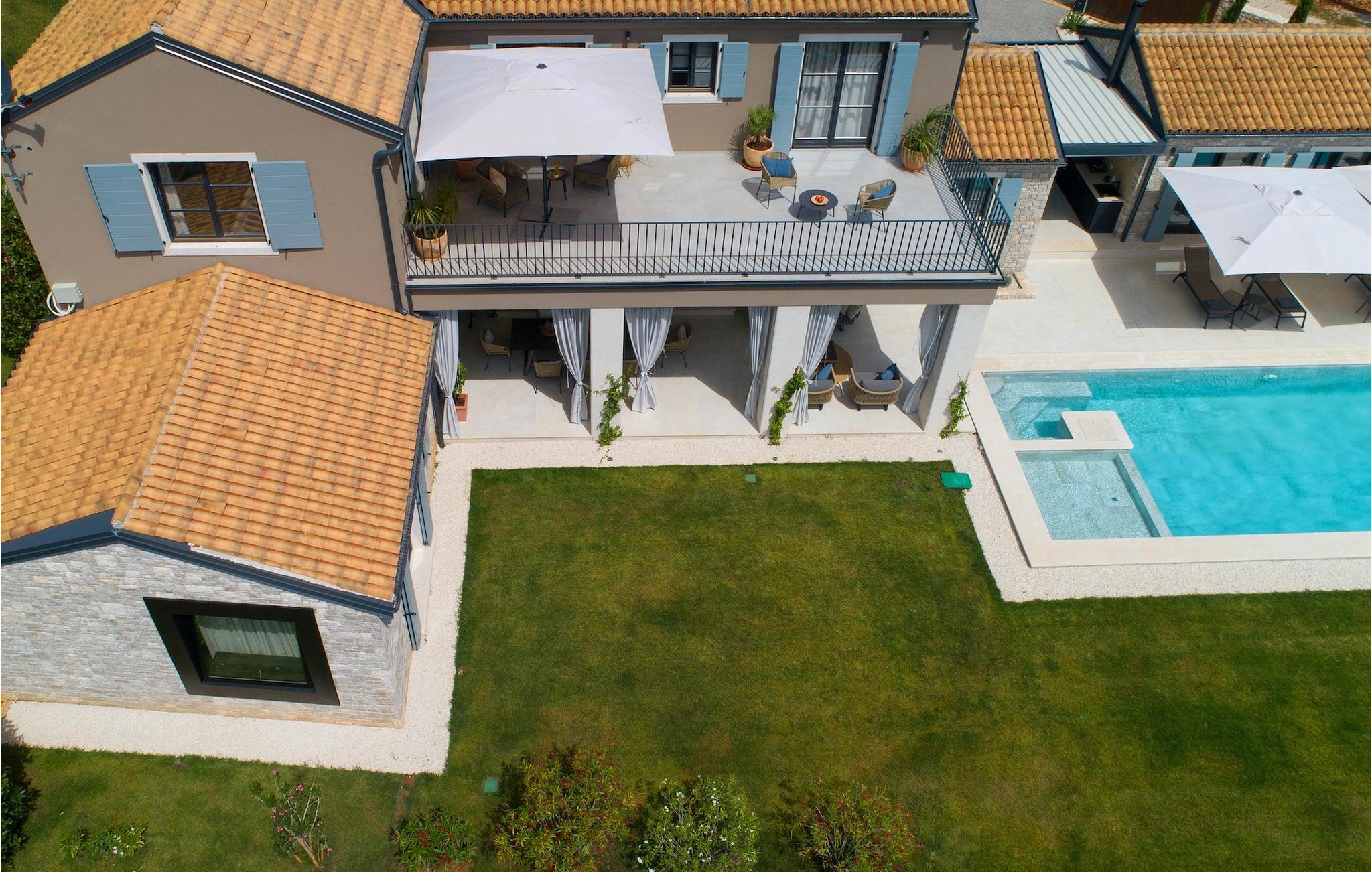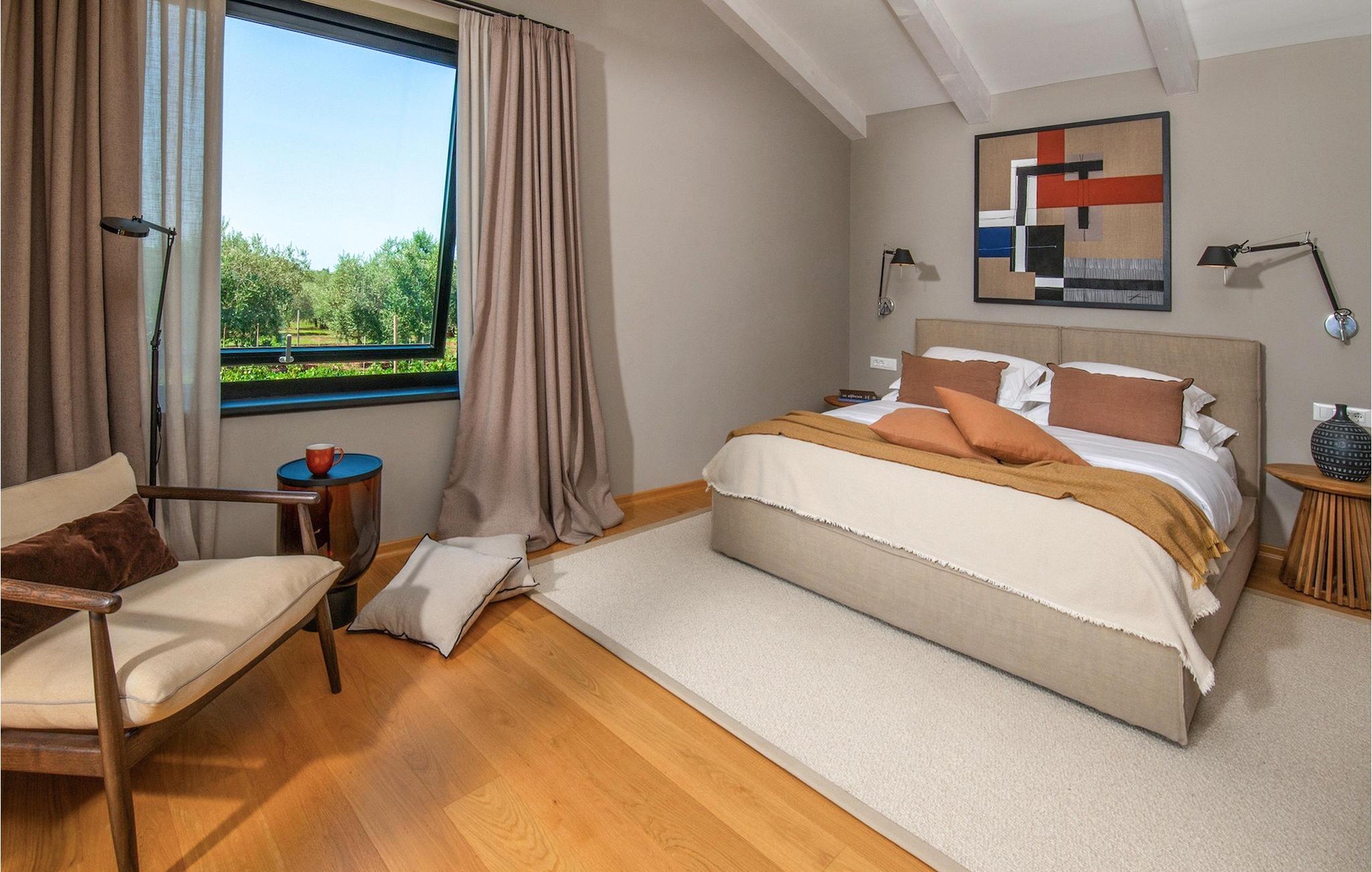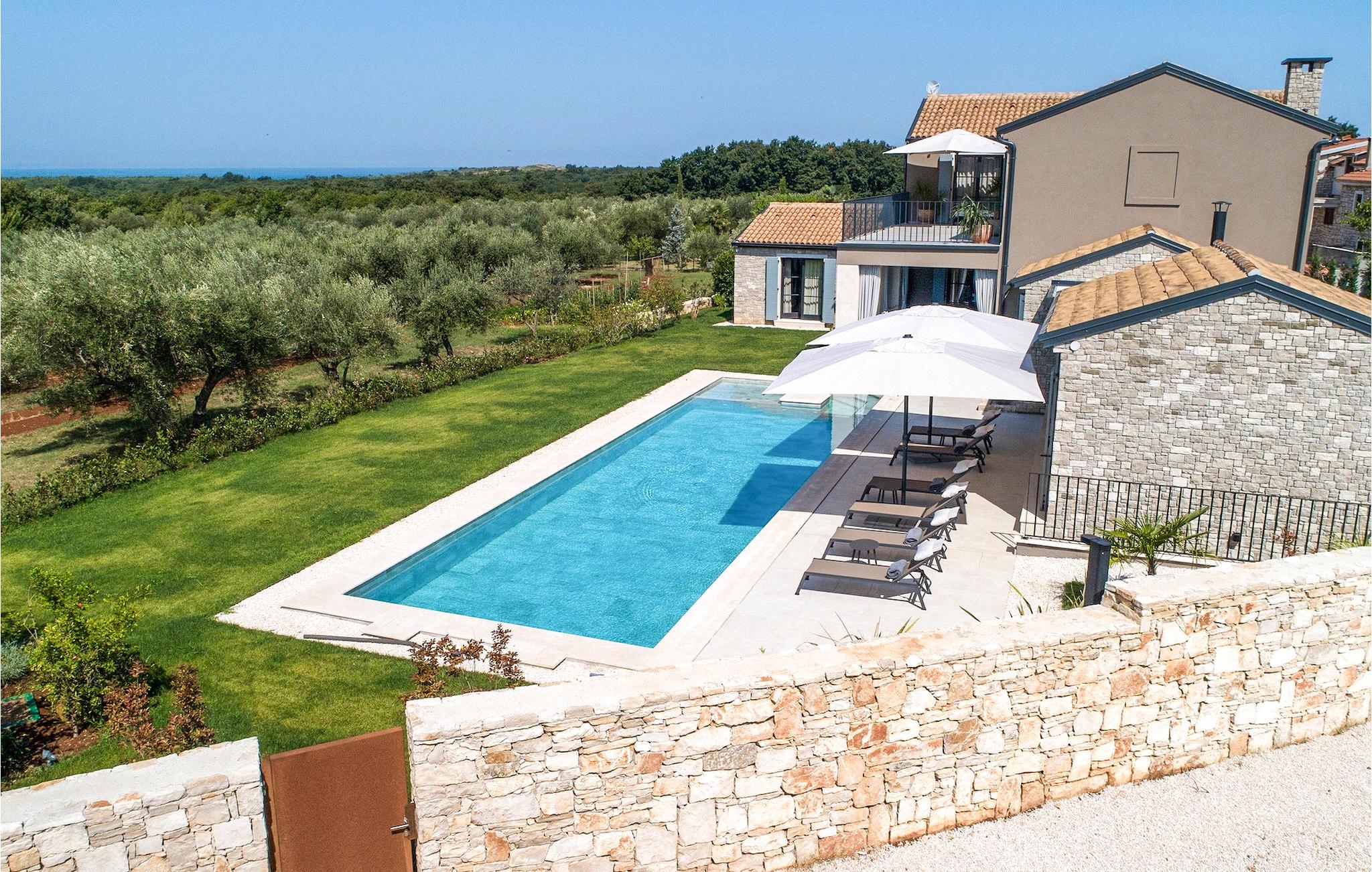 Villa Casa Cupra er en fantastisk familievilla, kun 3 km fra havet, nær Umag, i den nordlige del af Istriens vestkyst. Villaen er omgivet af gamle olivenlunde. En 80m2 pool er i hjertet af villaen, hvor du sandsynligvis vil tilbringe det meste af din ferie. Tag en dukkert i det turkisblå vand eller slap af på en af liggestolene, mens du læser en god bog. Den overdækkede terrasse byder på en hyggelig lounge og et spisebord med plads til 10 gæster og nyd lækre måltider, som du selv har tilberedt på kulgrillen. Hvis du kommer ind i villaens indre fra terrassen, vil du finde dig selv i den åbne opholdsstue med pejs, komfortable siddepladser, et spisebord og et fuldt udstyret moderne køkken samt et separat toilet. De 2 komfortable soveværelser på dette niveau har hver deres eget badeværelse. I det tilstødende hus er der sauna med bruser og desuden en hyggelig lounge, hvor du kan tilbringe hyggelige aftener med familie og venner. Første sal i hovedhuset har 3 skønne soveværelser med hver sit badeværelse. Det store soveværelse har endda et fritstående badekar på værelset. Det ideelle sted at tage en lille pause og stille og roligt nyde udsigten over landskabet med en kop te er den vidunderlige terrasse. Alt er smagfuldt indrettet med moderne og luksuriøse møbler og indrettet med stor sans for detaljer. Forkæl dig selv med noget helt særligt med et strejf af luksus og book den smukke Villa Casa Cupra!Villa Casa Cupra ligger i en stille landsby nord for Umag, kun 3 km væk fra den nærmeste strand og alle de faciliteter, som sådan en by byder på. Butikker, restauranter og caféer er alle inden for nem køreafstand. For alle sportselskere ligger en golfbane kun 2 km fra villaen. Kystbyen Umag, der ligger i det nordvestlige Istrien, er bedst kendt for sit Stella Maris Stadion, hvor den berømte ATP-tennisturnering finder sted. Denne smukke by har dog også meget at byde på i forhold til kultur, gastronomi og aktiviteter. Besøg Maria Himmelfartskirken eller bymuseet, nyd lokale specialiteter såsom fisk, vildt og trøfler, prøv den lækre olivenolie, besøg en af de smukke strande og skjulte bugter eller hav det sjovt med de sportsaktiviteter, du kan nyde her tilbydes. Nyd din ferie i Villa Casa Cupra og oplev regionens mangfoldighed.
