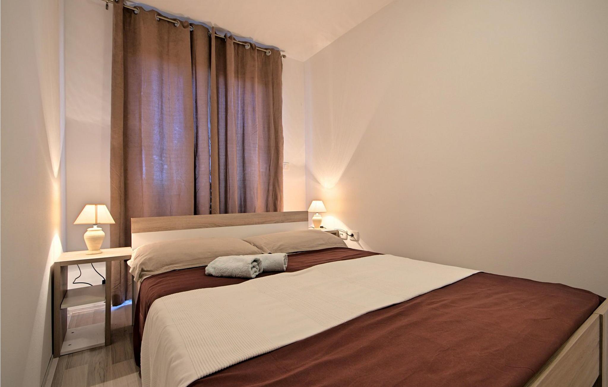 Velkommen til Apartment Zlatna, et charmerende opholdssted i stueetagen i en boligbygning bygget i 2011 og omhyggeligt renoveret i 2016. Beliggende kun 400 m fra en smuk sandstrand og kun 200 m fra en dejlig restaurant, tilbyder denne lejlighed den perfekte base for din ferie i Umag. Gæsterne kan nyde en komfortabel opholdsstue, et veludstyret køkken med spisebord og direkte adgang til en hyggelig terrasse med siddepladser og en grill - ideel til at nyde måltider under åben himmel. Lejligheden har også en praktisk parkeringsplads lige foran bygningen, hvilket gør det nemt at komme dertil under hele dit ophold. Umag, kendt for sin fantastiske kystlinje og pulserende kulturscene, byder på masser at udforske, fra den historiske gamle bydel til den livlige lystbådehavn. Apartment Zlatna tilbyder et indbydende og afslappende miljø, hvilket gør det til det perfekte sted at slappe af og opleve skønheden i Istrien. Bemærk venligst, at denne ejendom accepterer ungdomsgrupper efter anmodning. Kontakt os venligst for at tjekke. En ungdomsgruppe på denne ejendom består af personer på 26 år eller derunder.