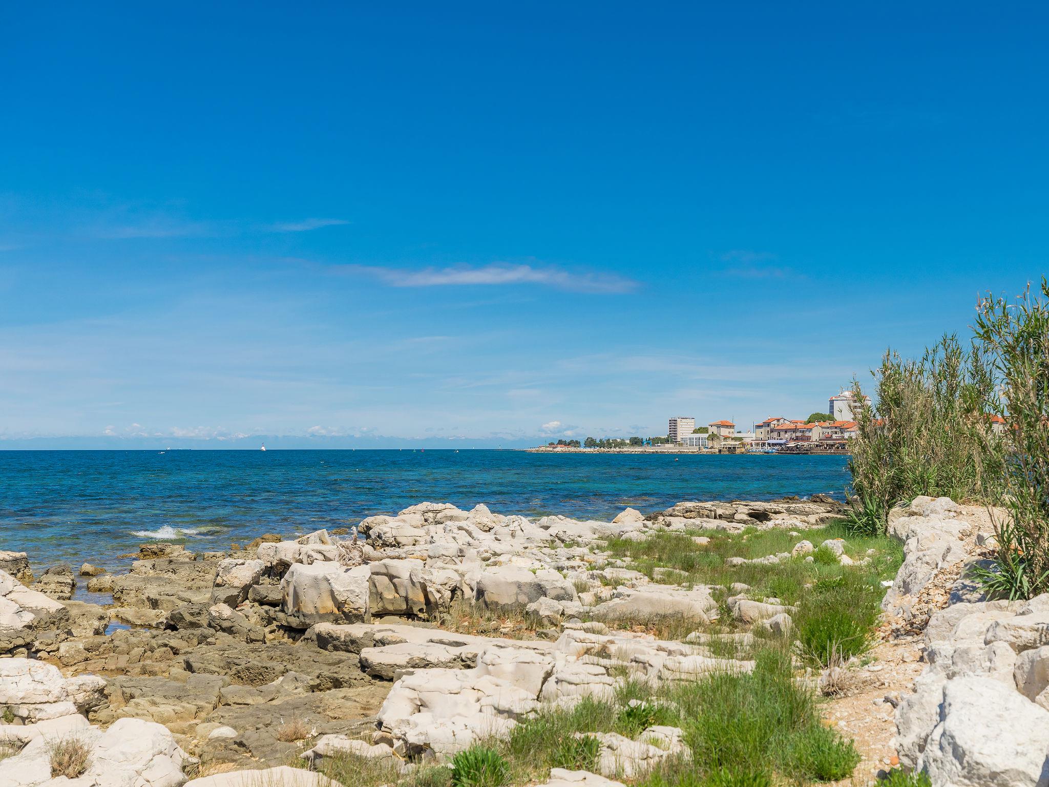 Beautiful apartment house "Mira", 2 storeys. 400 m from the centre of Umag, 20 m from the sea, 20 m from the beach, in the countryside. For shared use: property 1'000 m2 (fenced) with lawn and trees. Arbour, barbecue. In the house: internet access. Public parking. Shop, restaurant 300 m, bus stop 1.3 km, railway station 33 km, sandy beach 300 m, rocky beach, concrete beach 20 m. Golf course (18 hole) 9 km.