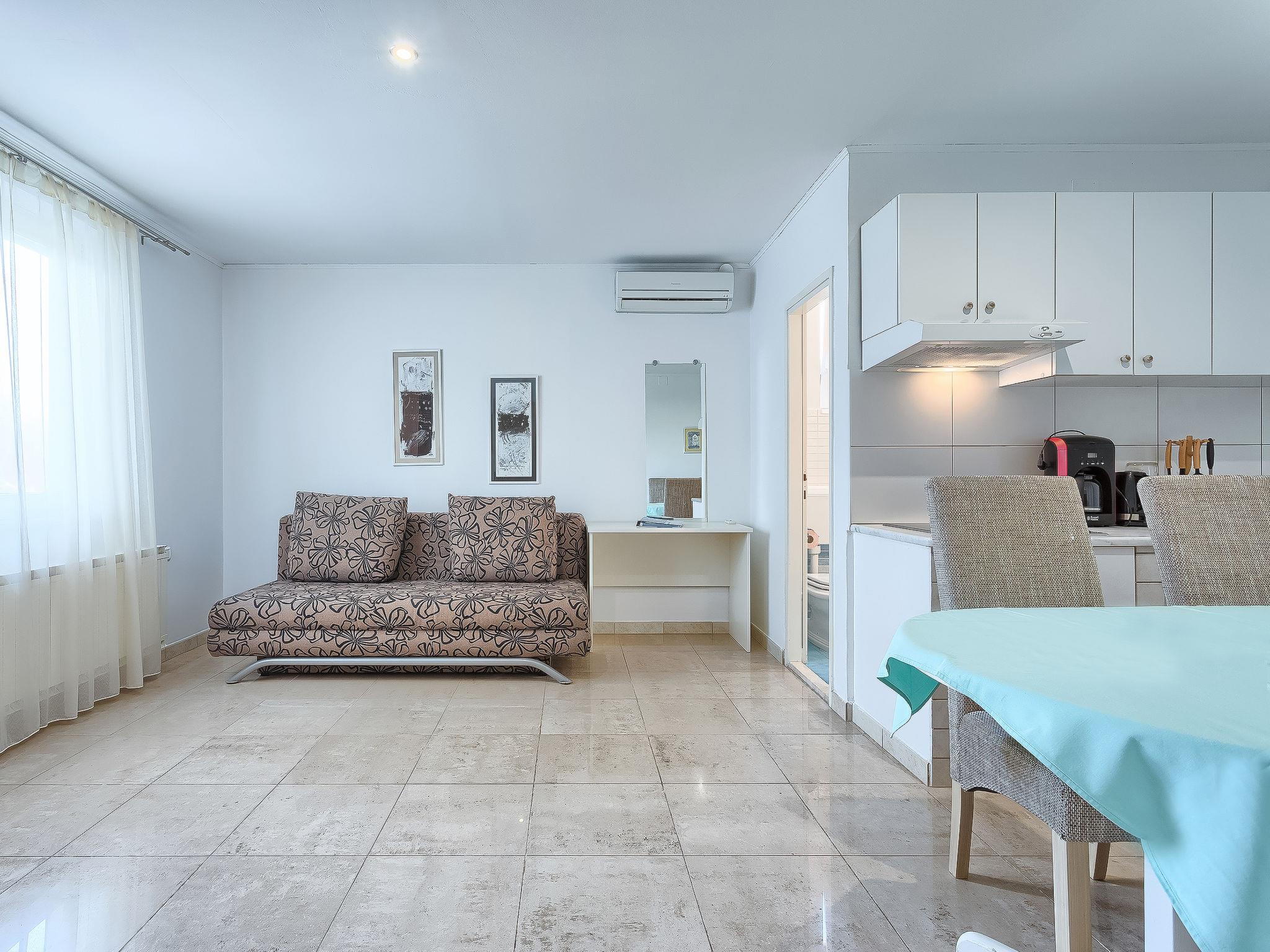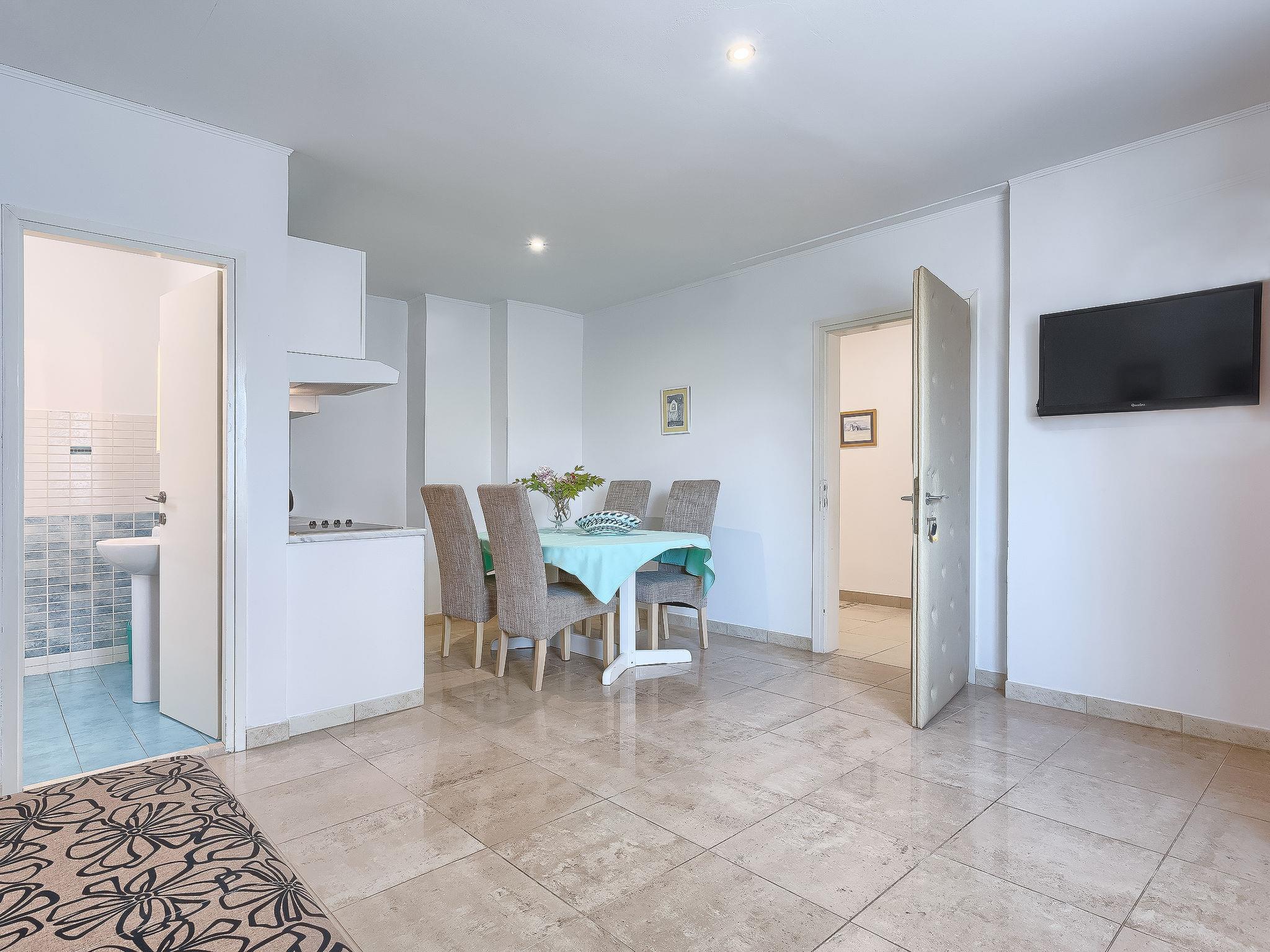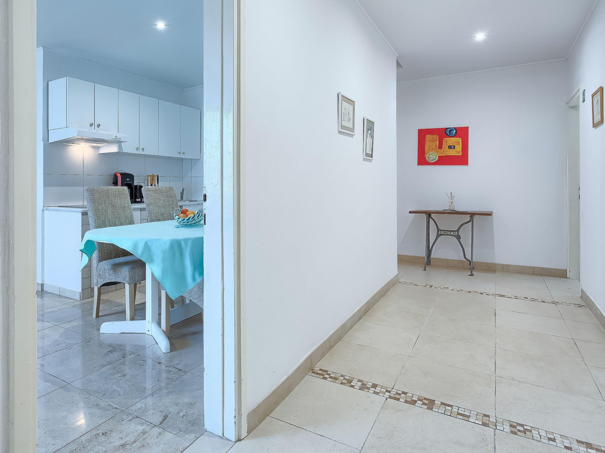 3-room apartment 70 m2 on 1st floor. Living/dining room with 1 double sofabed (150 cm, length 200 cm), satellite TV and air conditioning. 2 rooms, each room with 1 double bed (2 x 80 cm, length 200 cm), shower/WC. Open kitchen (4 hot plates). Shower/WC. Terrace 10 m2. Terrace furniture. Facilities: Internet (WiFi, free).