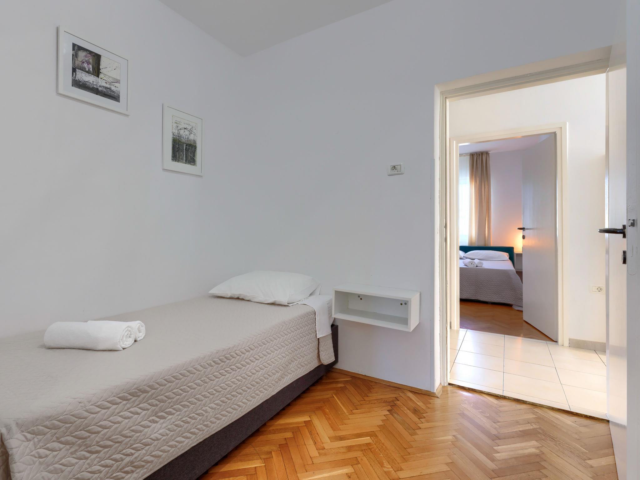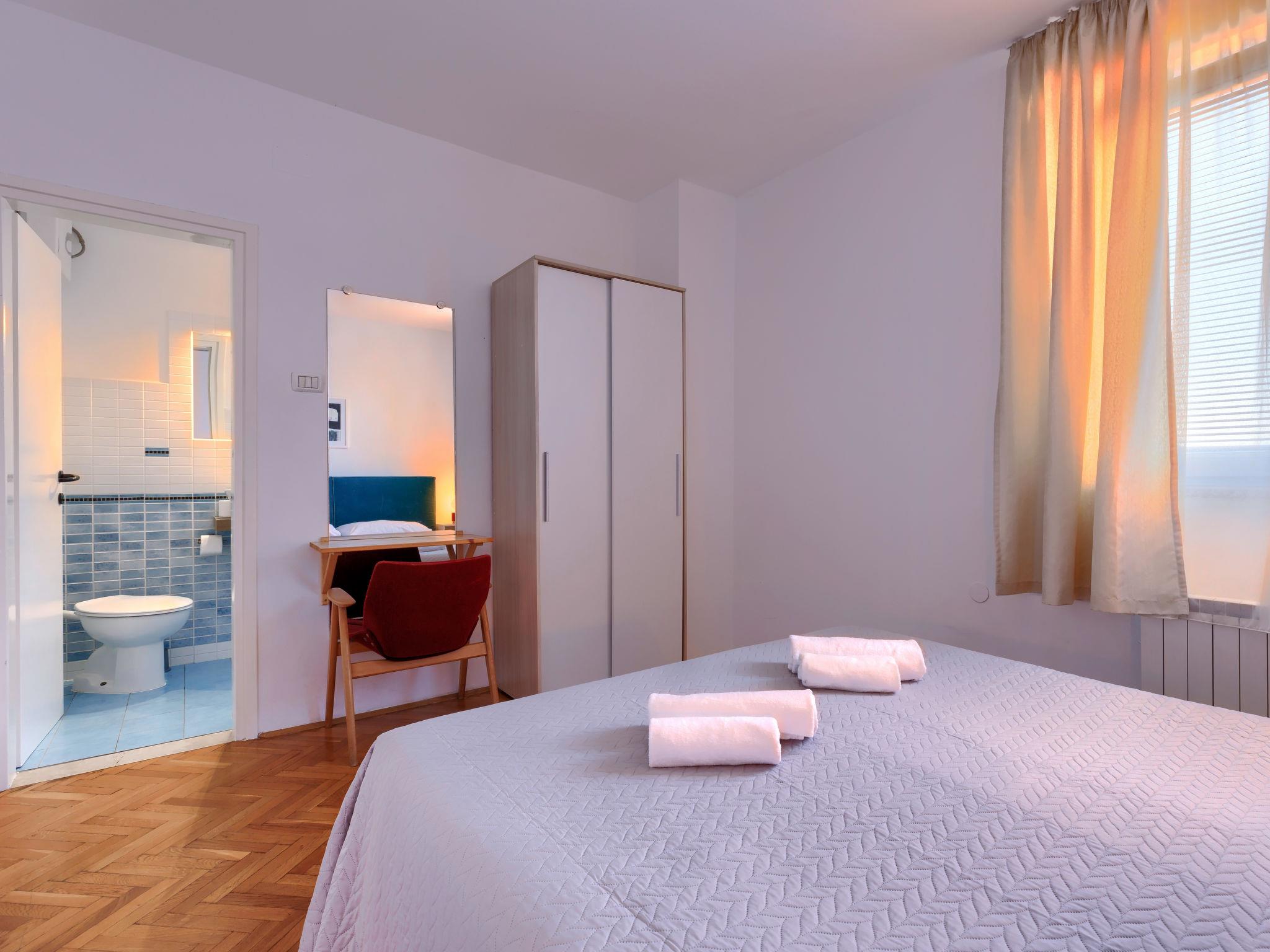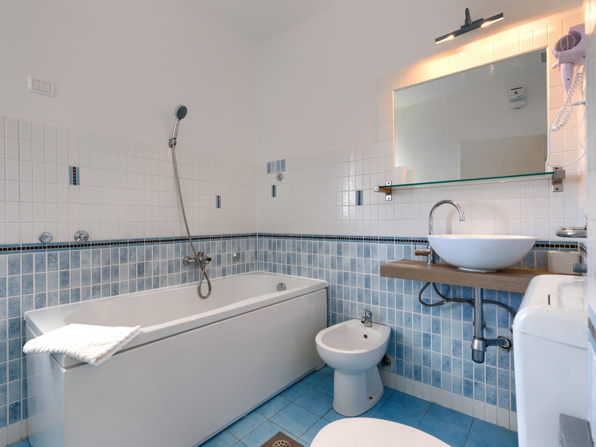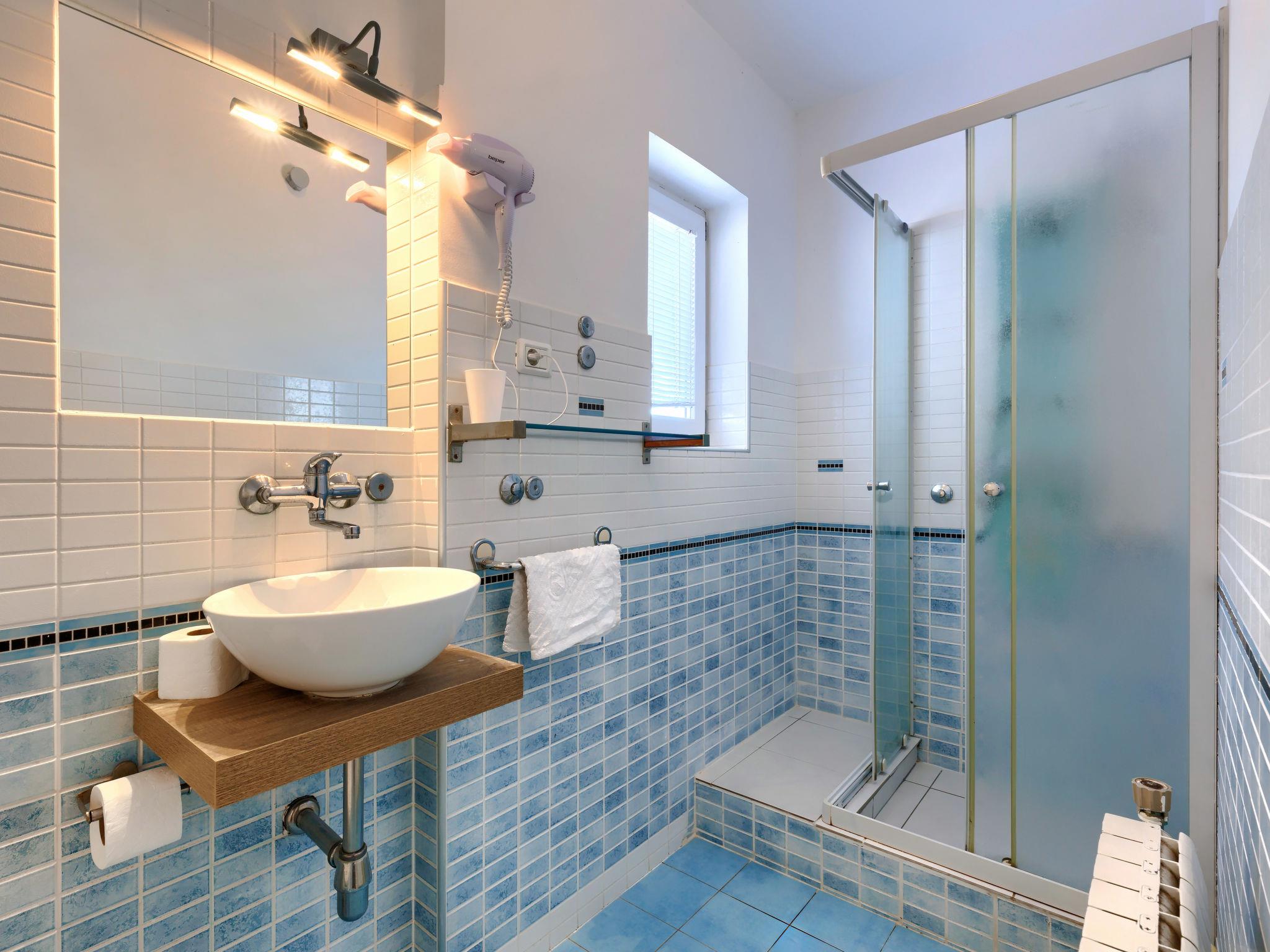 5-room apartment 120 m2 on 1st floor. 2 rooms, each room with 1 double bed (2 x 80 cm, length 200 cm), shower/WC. 2 rooms, each room with 1 double bed (2 x 80 cm, length 200 cm). 1 room with 1 bed (90 cm, length 200 cm). Dining room with satellite TV. Open kitchen (4 hot plates, toaster, kettle, electric coffee machine). Bath/WC, sep. WC, hydro massage bath. Air-conditioning. Terrace roofed. Terrace furniture. View of the garden. Facilities: Internet (WiFi, free).
