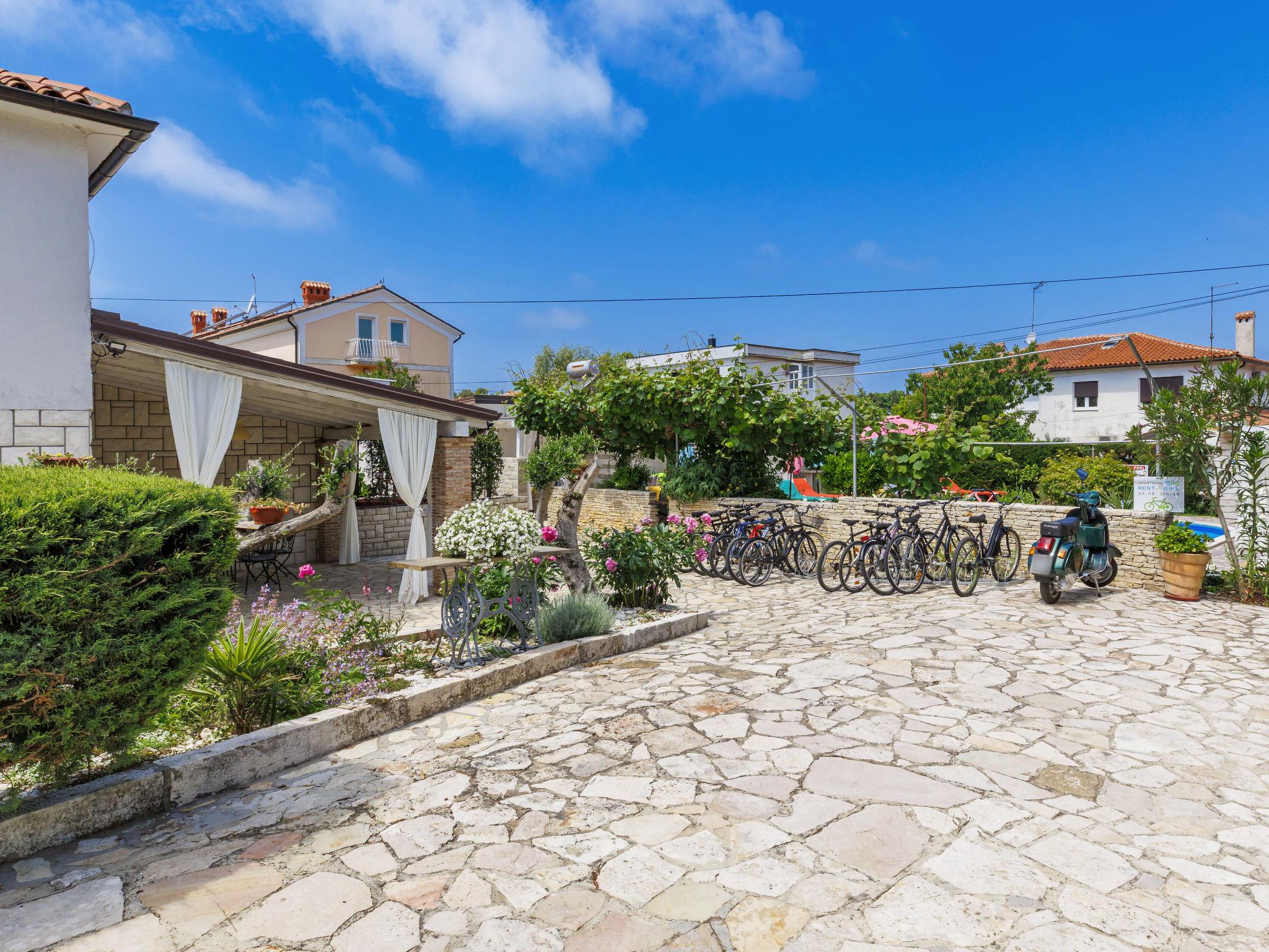 Apartment house "Nika". In the district of Punta 2 km from the centre of Umag, in a sunny position, 300 m from the sea, 300 m from the beach. For shared use: property 1'500 m2 (fenced), well-kept garden, swimming pool (8 x 4 m, depth 135 cm, seasonal availability: 25.Apr. - 19.Sep.). Outdoor shower, hot tub, barbecue. In the house: internet access, bicycles available (extra). Available: boat (extra). Parking. E-charging station. Shop, restaurant 500 m, bus stop 1.9 km, pebble beach 300 m. Tennis 200 m, children's playground 20 m. For shared use: hot tub available from 15.05. - 15.09. Video surveillance of the driveway and parking.