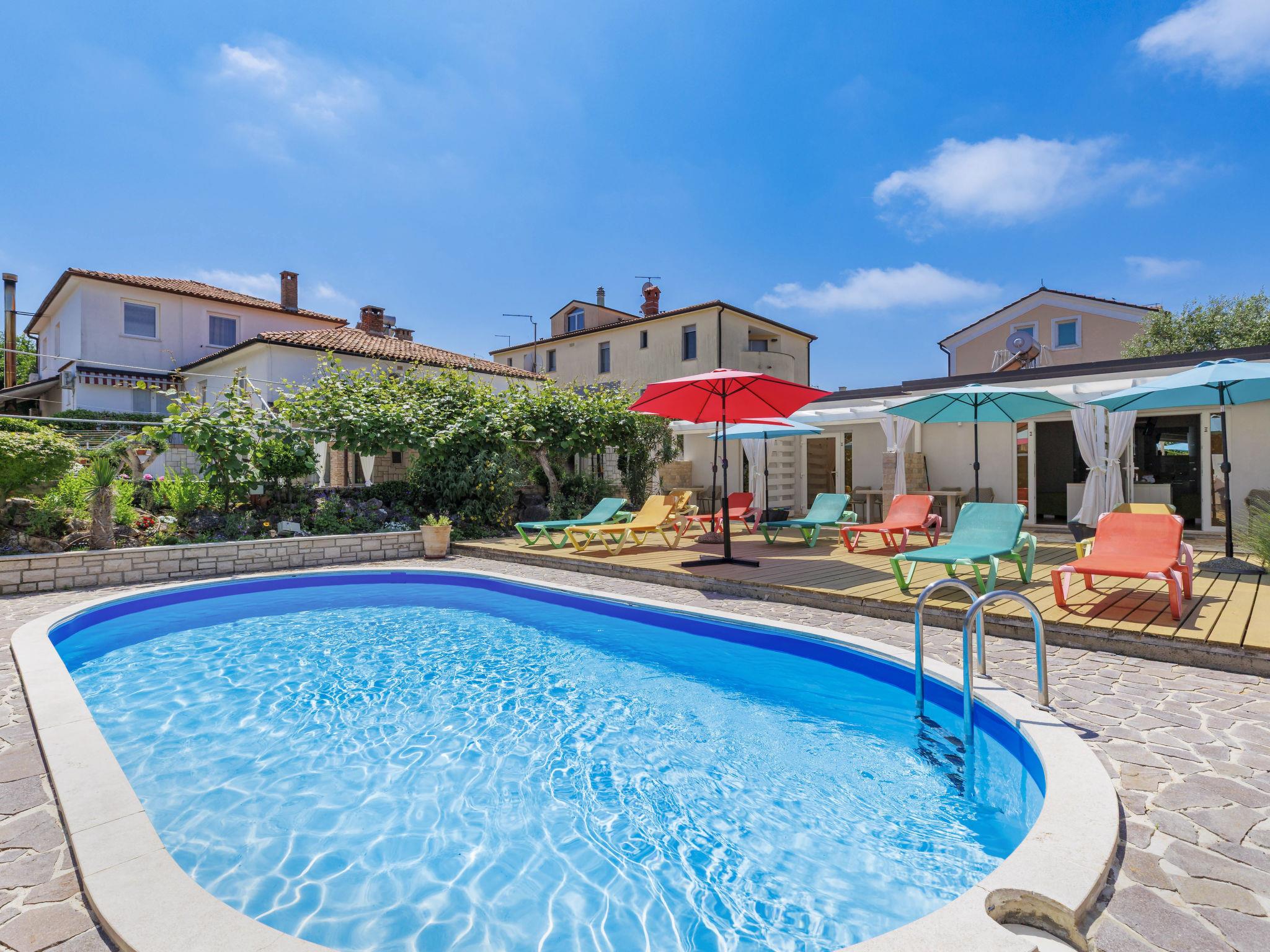 Apartment house "Nika". In the district of Punta 2 km from the centre of Umag, in a sunny position, 300 m from the sea, 300 m from the beach. For shared use: property 1'500 m2 (fenced), well-kept garden, swimming pool (8 x 4 m, depth 135 cm, seasonal availability: 25.Apr. - 19.Sep.). Outdoor shower, hot tub, barbecue. In the house: internet access, bicycles available (extra). Available: boat (extra). Parking. E-charging station. Shop, restaurant 500 m, bus stop 1.9 km, pebble beach 300 m. Tennis 200 m, children's playground 20 m. For shared use: hot tub available from 15.05. - 15.09. Video surveillance of the driveway and parking.
