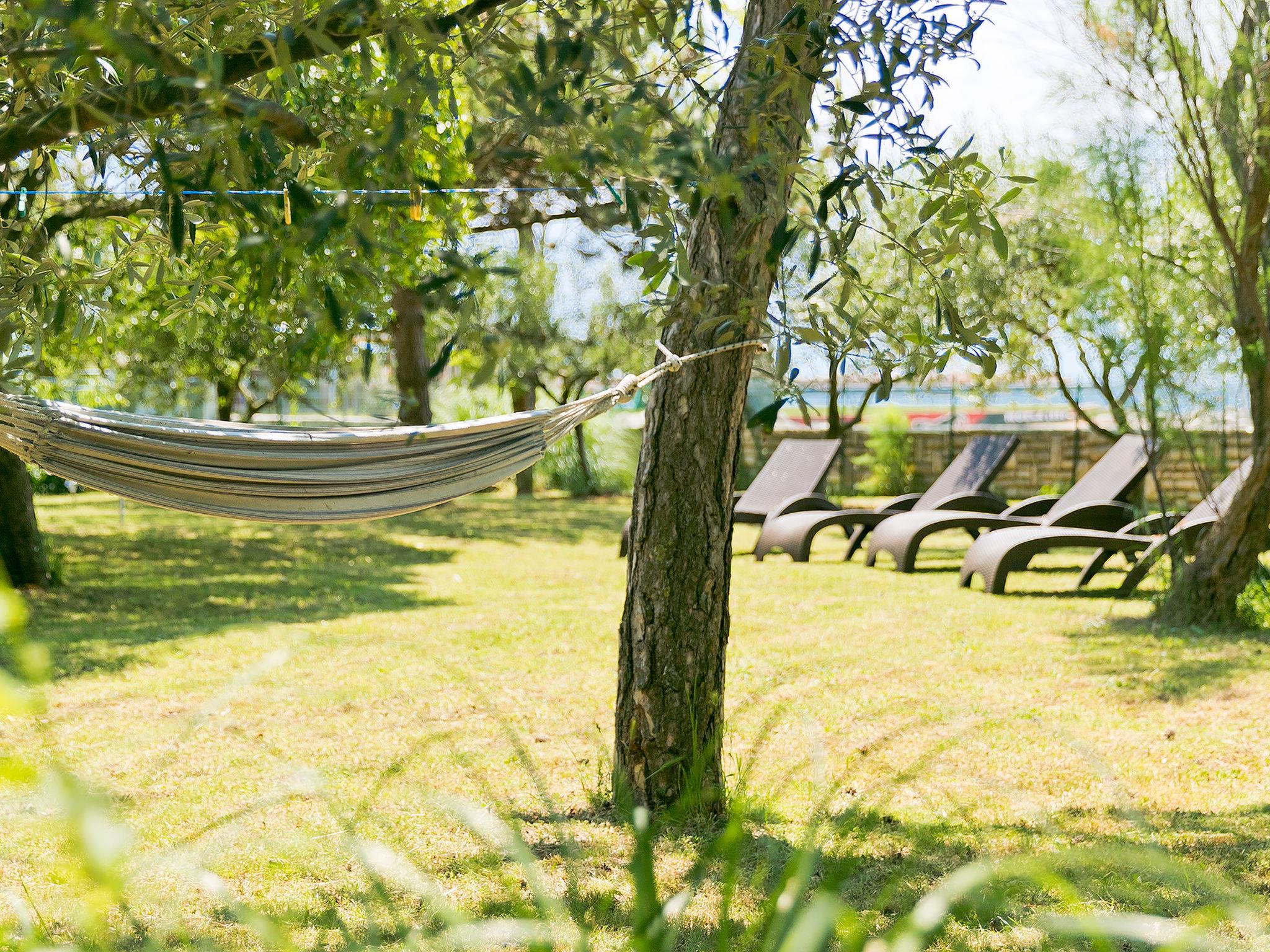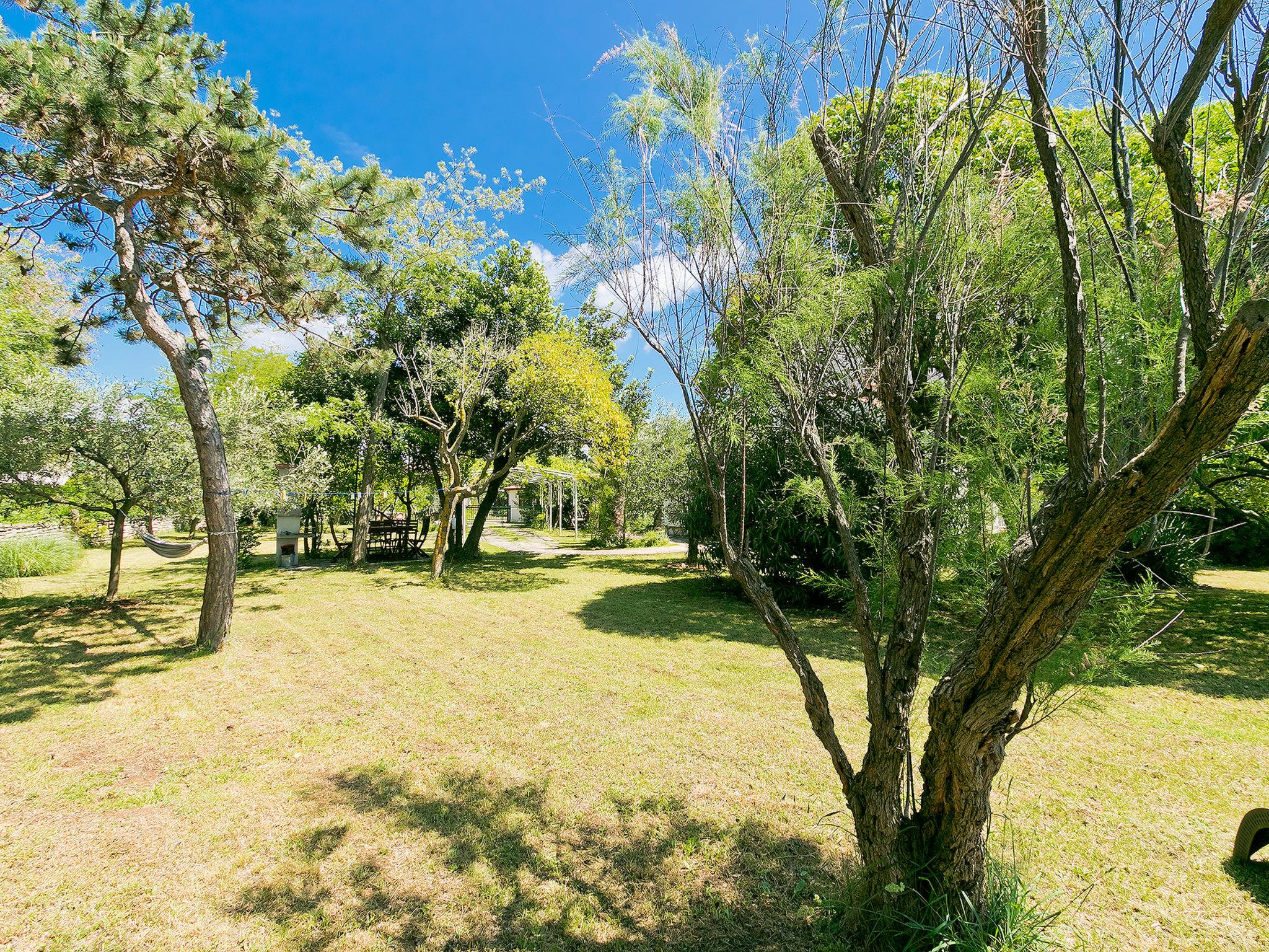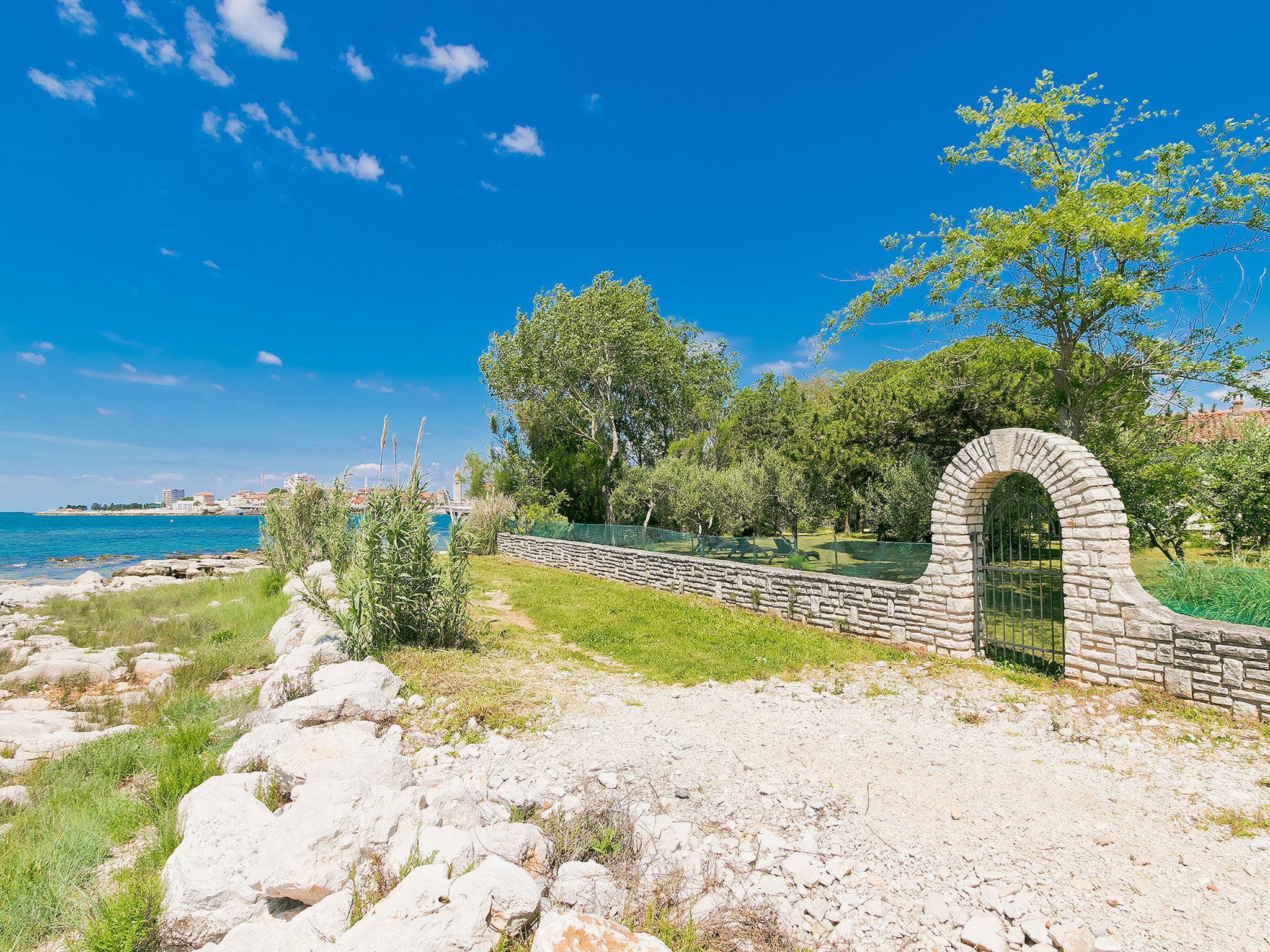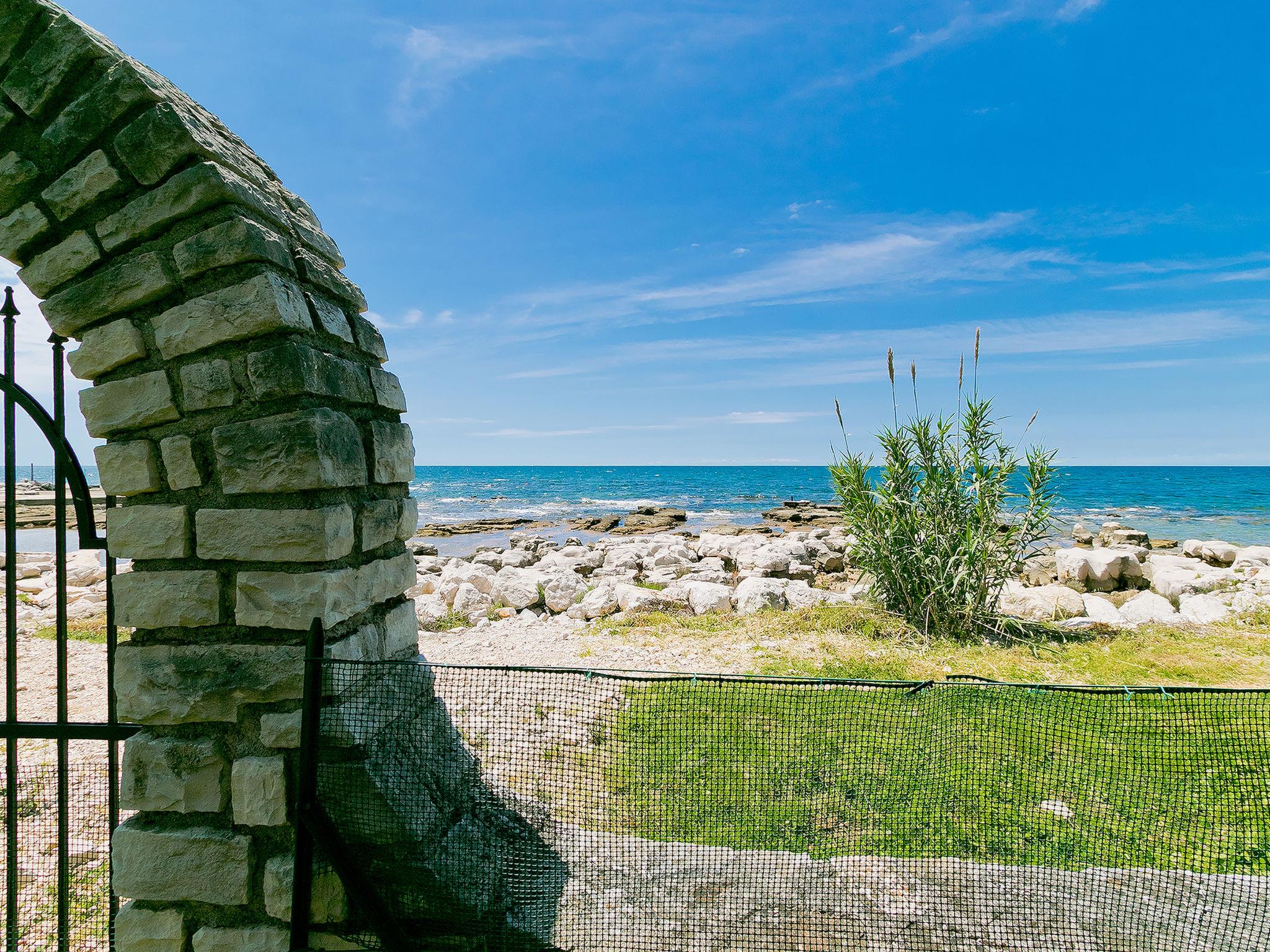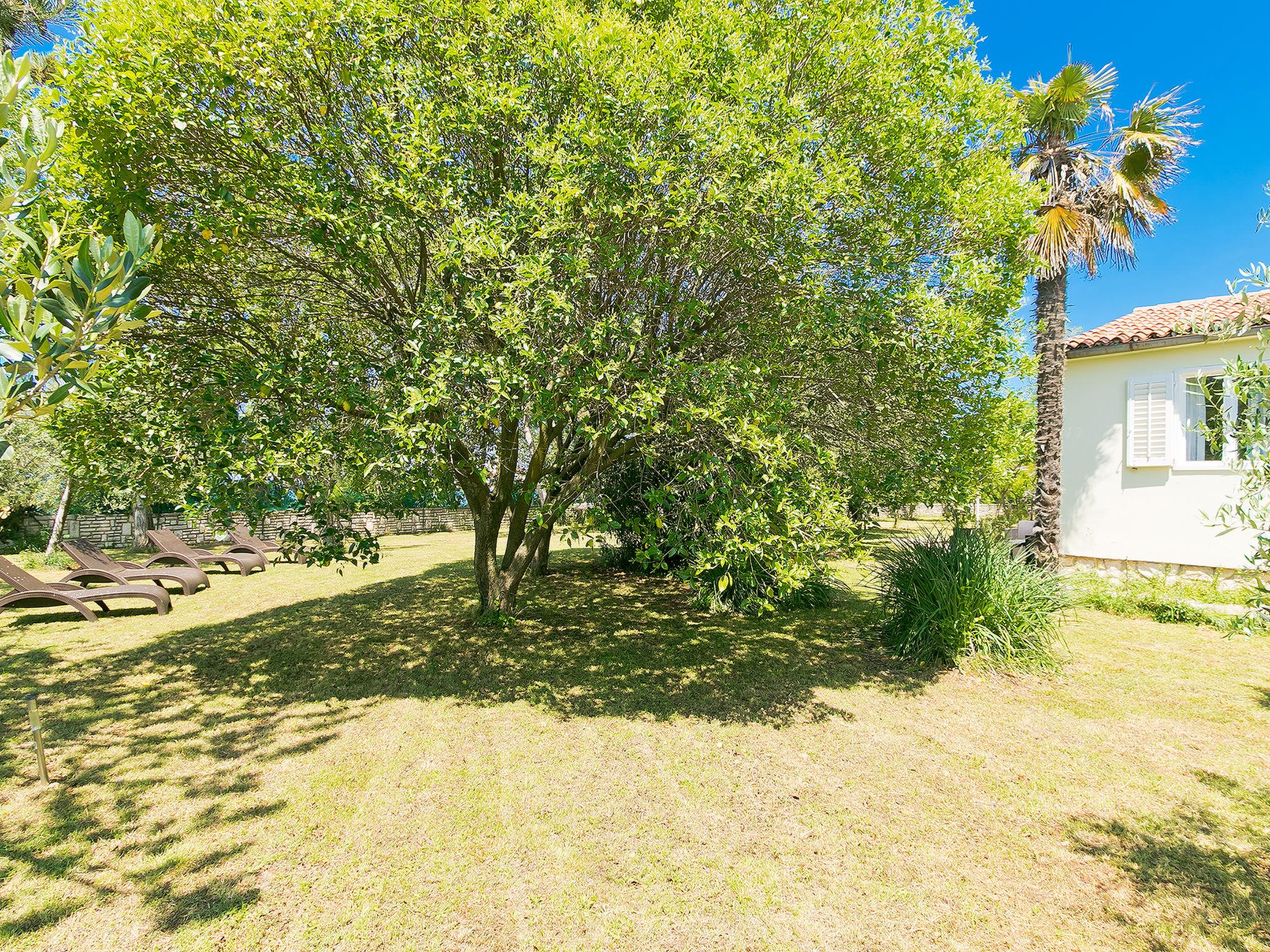 Semi-detached house "Nona". 400 m from the centre of Umag, in a quiet, sunny position, 50 m from the sea, 200 m from the beach, in a cul-de-sac. Private: property 1'600 m2 (fenced), garden with lawn and trees. Barbecue. In the house: internet access, washing machine. Parking at 300 m. Shop, restaurant 300 m, bus stop 2.5 km, railway station 33 km, sandy beach 300 m, rocky beach, concrete beach 200 m. Golf course (18 hole) 8.5 km, tennis 1.5 km, walking paths from the house, cycle lane, children's playground 200 m. Please note: Loading and unloading of baggage is possible at the holiday house. Motor access to the house only for loading and unloading of baggage.