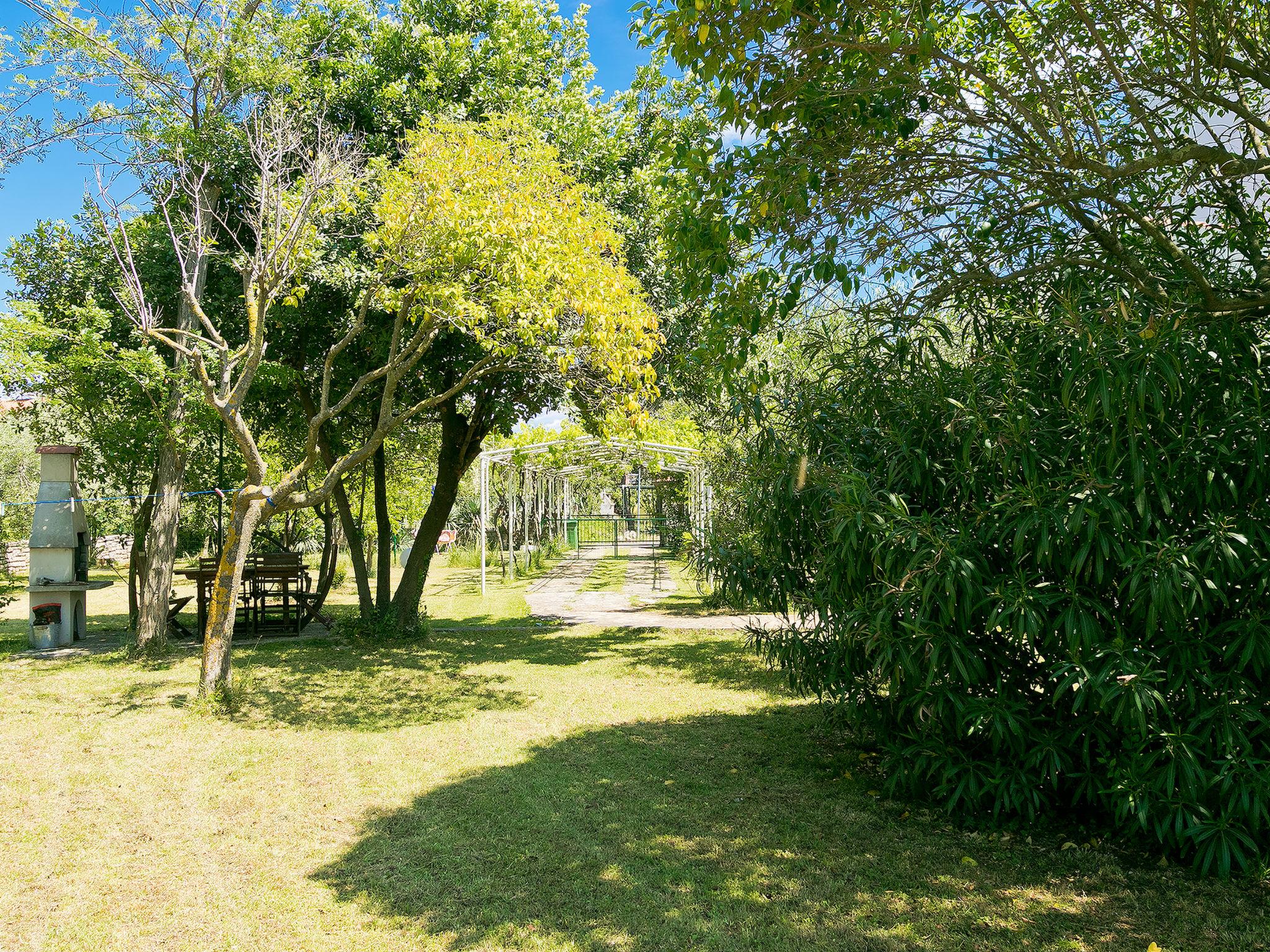 3-room semi-detached house 84 m2. Living/dining room with 1 double sofabed, satellite TV and air conditioning. Exit to the garden, to the terrace. 1 room with 1 double bed (2 x 80 cm, length 200 cm). 1 room with 2 beds (80 cm, length 190 cm). Open kitchen (4 hot plates, toaster, kettle, microwave, freezer, electric coffee machine). Shower/bidet/WC. Terrace 8 m2. Terrace furniture, barbecue (portable), deck chairs. Facilities: Internet (WiFi, free). Maximum 1 pet/ dog allowed.