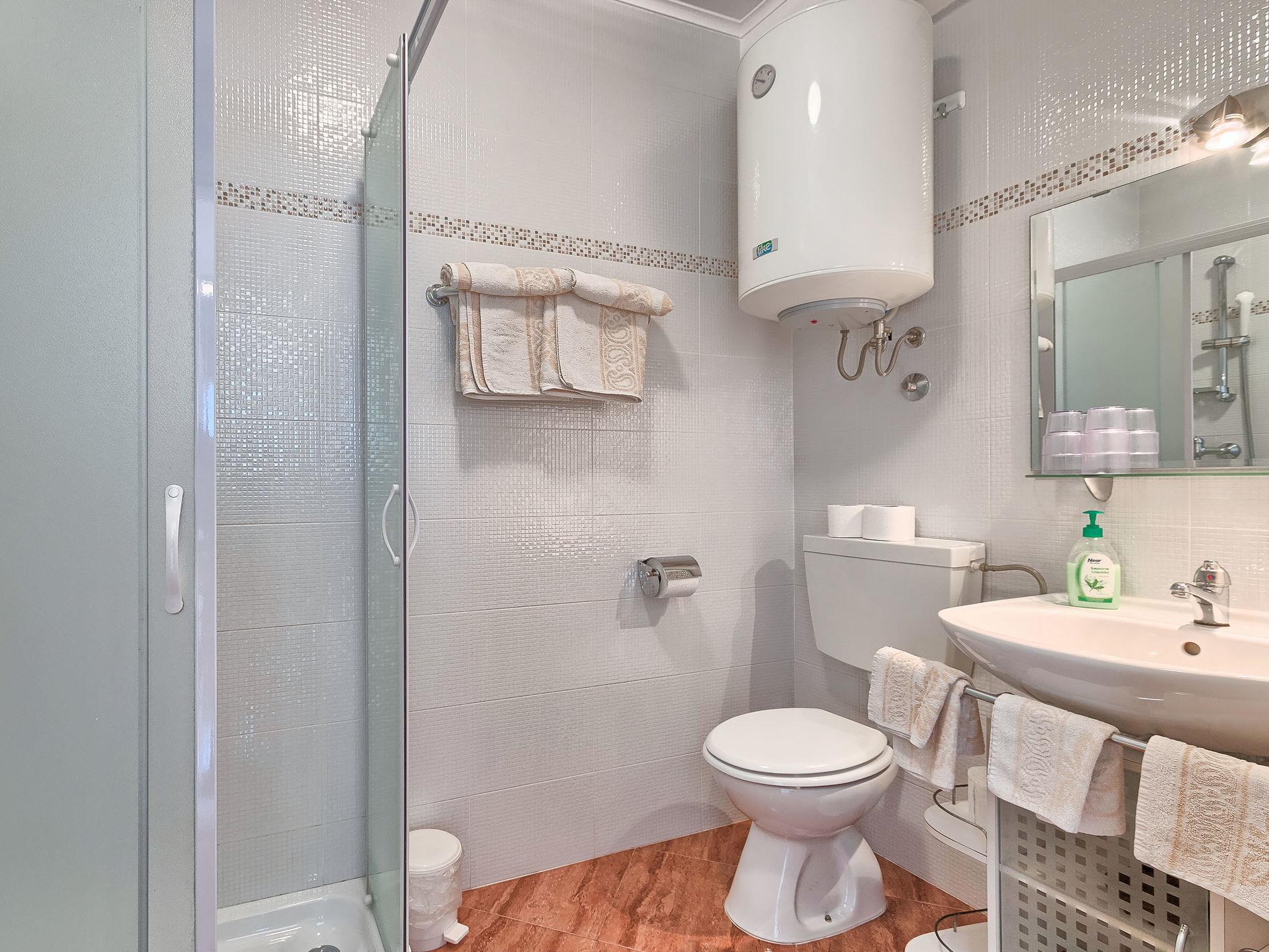 3-room apartment 52 m2, on the ground floor. Living/dining room with 1 double sofabed and satellite TV (flat screen), air conditioning. Exit to the terrace. 2 rooms, each room with 1 double bed (2 x 80 cm, length 200 cm). Open kitchen (2 ceramic glass hob hotplates, microwave, freezer). Shower/WC. Terrace 6 m2, roofed. Terrace furniture. View of the garden. Facilities: Internet (WiFi, free).