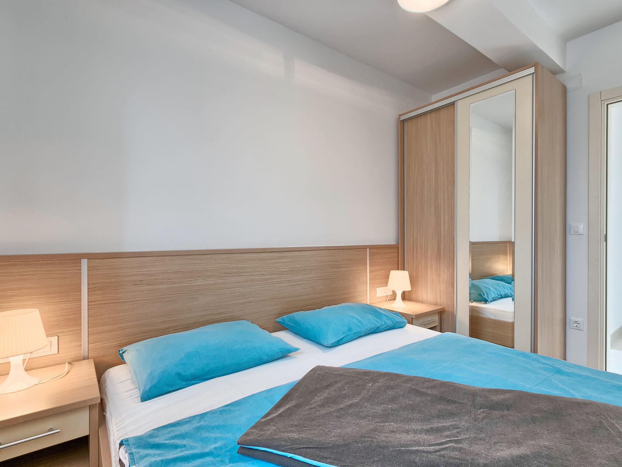 3-room apartment 52 m2 on 1st floor. Living/dining room with 1 double sofabed and satellite TV (flat screen), air conditioning. Exit to the terrace. 2 rooms, each room with 1 double bed (2 x 80 cm, length 200 cm). Open kitchen (2 ceramic glass hob hotplates, microwave, freezer). Shower/WC. Terrace 6 m2. Terrace furniture. View of the garden. Facilities: Internet (WiFi, free).