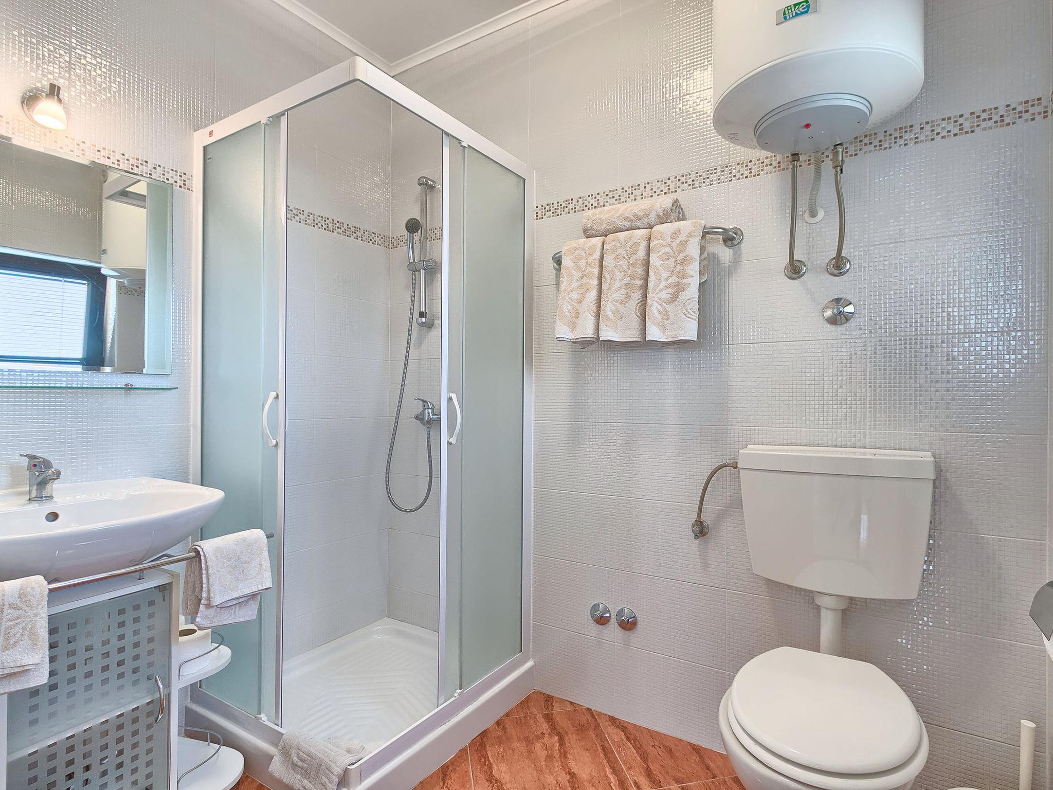Apartment house "Villa Alpa". In the district of Punta 1 km from the centre of Umag, in a quiet, sunny position, 400 m from the sea, 400 m from the beach. For shared use: property 730 m2 (fenced), small garden, swimming pool (above ground) (2 x 2 m, seasonal availability: 29.Mar. - 15.Nov.). Garden furniture. In the house: internet access, trampoline, roof terrace. Available: bicycles (extra). Parking at the house on the premises. Shop, restaurant 300 m, bus stop 1.9 km, pebble beach, rocky beach 400 m. Golf course (18 hole) 8 km, tennis 500 m, riding stable 1.5 km. Swimming pool for shared use is a hot tub for 6 persons, usage possible twice a day for one hour for the apartment.