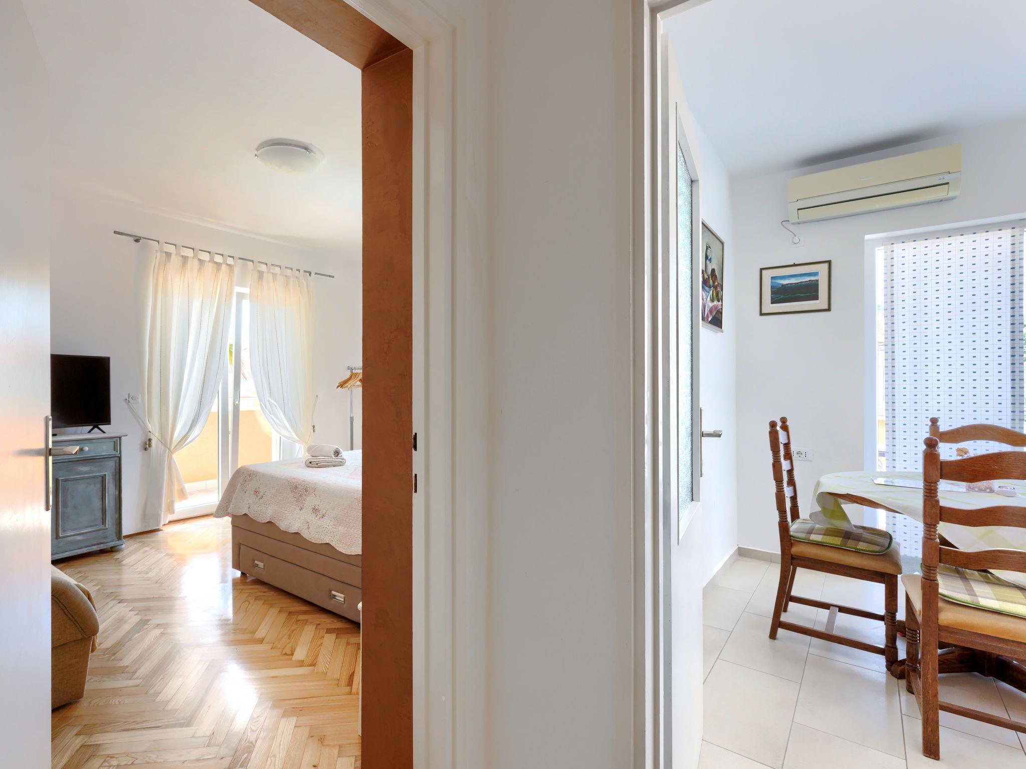 2-room apartment 50 m2 on 1st floor. 1 room with 1 french bed (160 cm, length 200 cm). Exit to the terrace. 1 room with 1 french bed (160 cm, length 200 cm), satellite TV (flat screen). Exit to the terrace. Dining room with air conditioning. Exit to the terrace. Open kitchen (oven, dishwasher, 4 ceramic glass hob hotplates, microwave, freezer, electric coffee machine). Bath/WC, sep. WC. Heating (extra). Terrace 12 m2, terrace 10 m2. Terrace furniture. Facilities: Internet (WiFi, free). 1 small pet/ dog allowed.