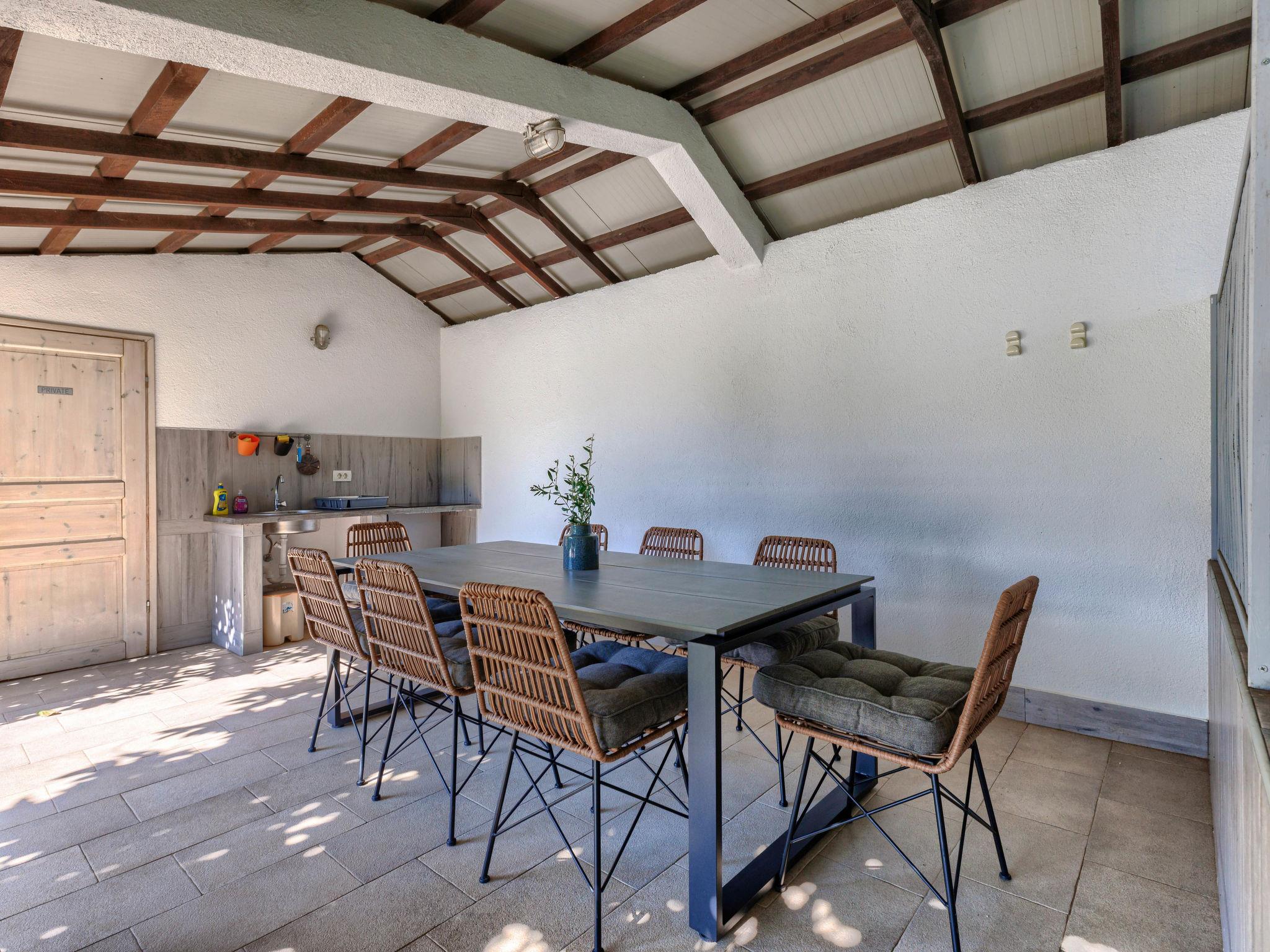 5-room house 210 m2 on 2 levels. Tasteful furnishings: living room 40 m2 with open-hearth fireplace (only for decoration), satellite TV (flat screen), air conditioning. Exit to the terrace. 1 room with 1 french bed (160 cm, length 200 cm). Exit to the terrace. Dining room with air conditioning. Exit to the terrace. Open kitchen (oven, dishwasher, 4 ceramic glass hob hotplates, microwave, freezer, electric coffee machine). Shower/WC. Upper floor: entrance hall with air conditioning. 1 room with 1 french bed (160 cm, length 200 cm), satellite TV (flat screen). Exit to the balcony. 1 room with 1 french bed (160 cm, length 200 cm). Exit to the balcony. 1 room with 2 beds (100 cm, length 210 cm). Exit to the balcony. Bath/bidet/WC, bath/shower/WC. Heating (extra). 2 balconies 6 m2, terrace 15 m2, roofed. Terrace furniture, deck chairs. View of the swimming pool and the garden. Facilities: Internet (WiFi, free). It is necessary to announce 7 days in advance if the heating (extra) is required.