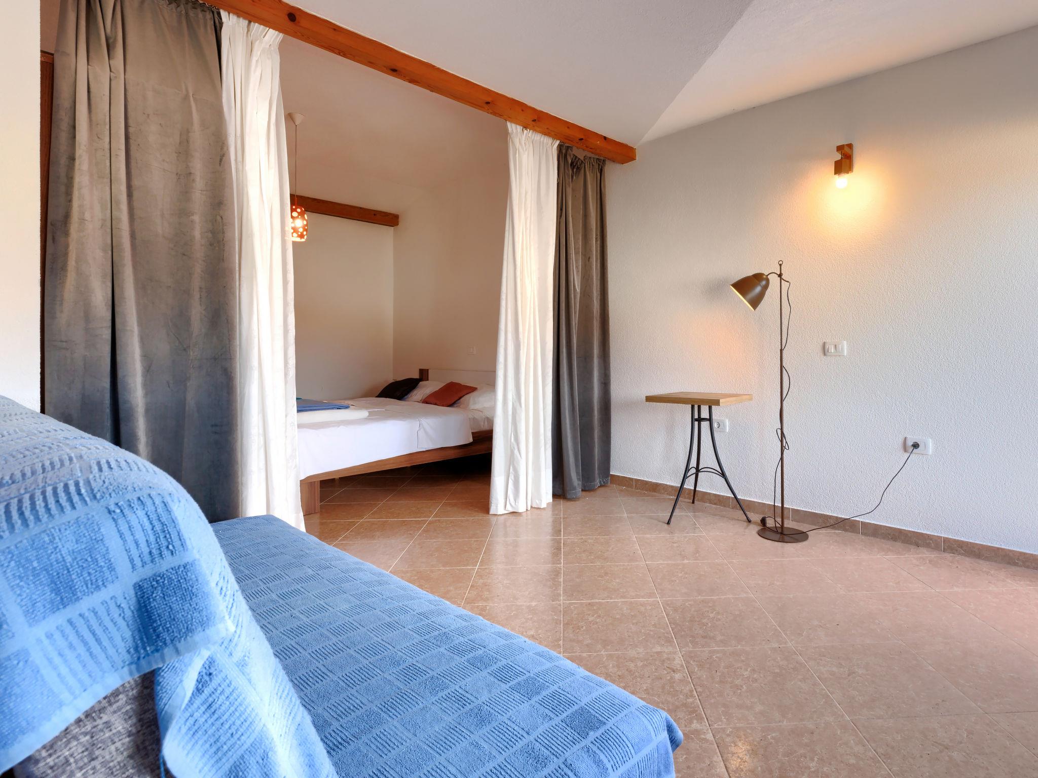 5-room semi-detached house 147 m2. Living/dining room with satellite TV (flat screen), air conditioning. Exit to the terrace. 1 room with 1 french bed (160 cm, length 200 cm). Walk-through room with 1 french bed (160 cm, length 200 cm). 1 room with 1 bed (80 cm, length 190 cm), 1 sofabed (140 cm, length 200 cm). Open kitchen (4 hot plates, oven, dishwasher). Shower/WC. No heating option. Top floor: (exterior staircase) living/sleeping room with sloping ceilings, ceiling height 185 - 250 cm with 2 sofabeds (140 cm, length 200 cm), 1 double bed (2 x 90 cm, length 200 cm), satellite TV (flat screen), air conditioning. Exit to the terrace. With sloping ceilings, open kitchen (1 hot plate, oven, dishwasher, 3 gas rings, freezer) with dining table, ceiling height 185 - 250 cm. Shower/WC. Terrace 18 m2, roofed, terrace 12 m2. Terrace furniture, deck chairs. View of the swimming pool and the garden. Facilities: Internet (WiFi, free). 1 small pet/ dog allowed.