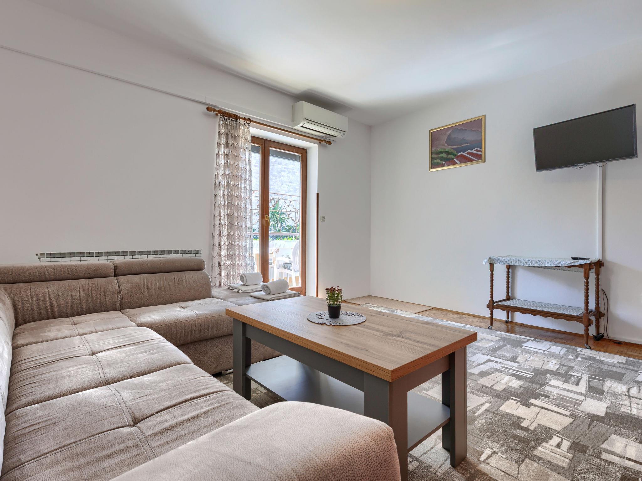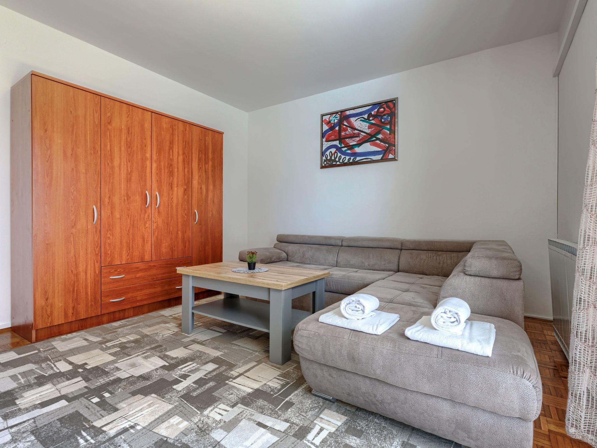"Zoki 1", 2-room apartment 65 m2, on the upper ground floor. Living/sleeping room with 1 double sofabed (140 cm, length 200 cm), satellite TV and air conditioning. Exit to the balcony. 1 room with 1 french bed (160 cm, length 200 cm). Kitchen (2 hot plates, 2 gas rings, kettle, microwave, freezer) with dining table. Bath/WC. Balcony 5 m2. Balcony furniture. Facilities: washing machine. Internet (WiFi, free). Parking (1 car) at the house. Please note: non-smoking house.