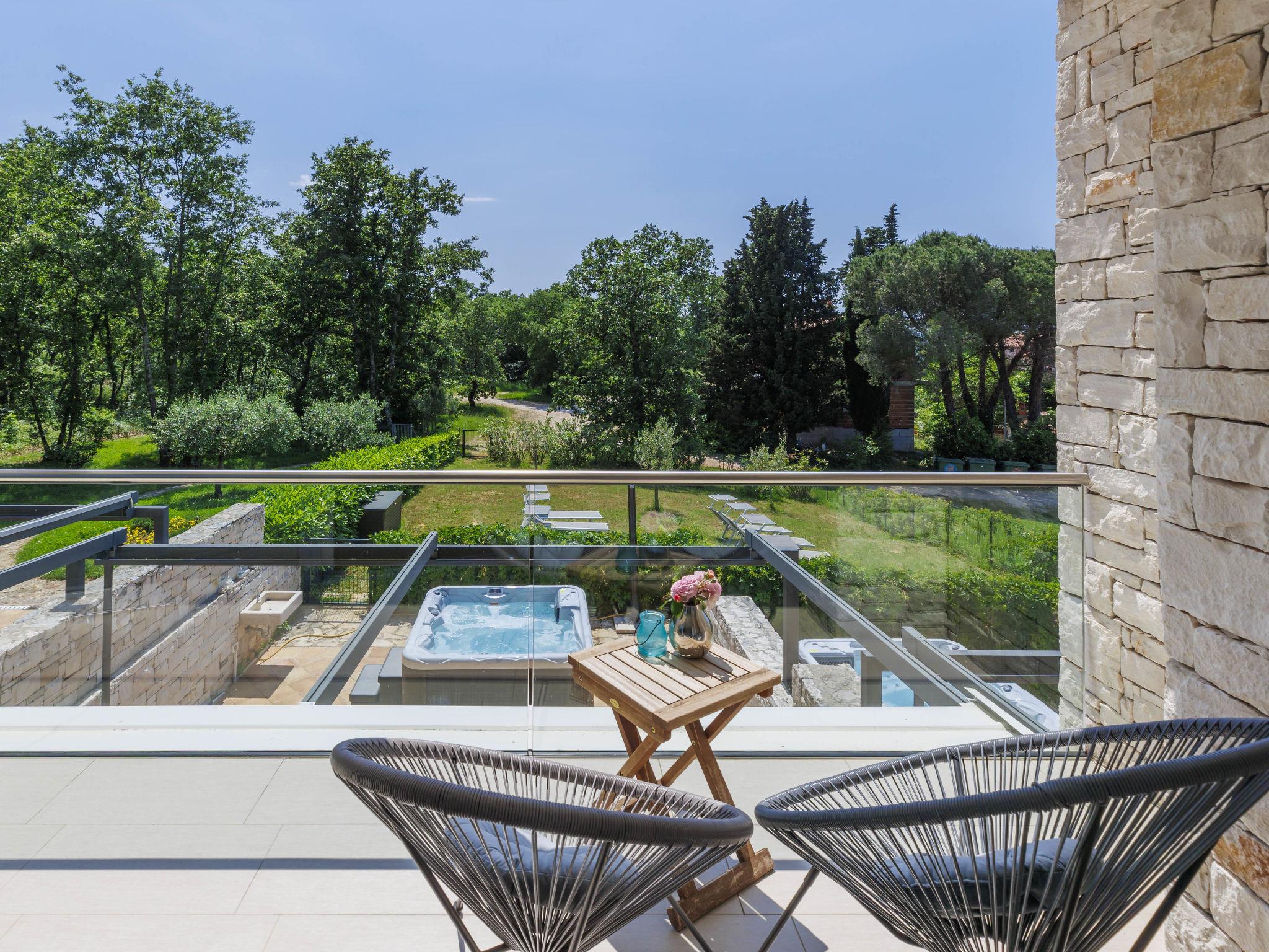 Modern, beautiful terraced house "Sv. Ivan 2", 2 storeys. In the hamlet Sv. Ivan 4 km from the centre of Umag, in a quiet, sunny position, from the sea, 100 m from the beach. For shared use: property 500 m2 (fenced) with lawn. Private: swimming pool (above ground) heated (2 x 2 m, depth 50 cm, seasonal availability: 13.Apr. - 12.Oct.). Barbecue. In the house: internet access. Parking. Shop 200 m, restaurant 100 m, bus stop 4 km, railway station 35 km, rocky beach 100 m. Golf course (18 hole) 15 km, tennis, cycle lane 100 m. Groups of teenagers on request only. Swimming pool for private use is a hot tub for 4 persons. Additional change of water in the hot tub (extra). In the same terraced house there is house ref. HR2200.450.1 for rent.