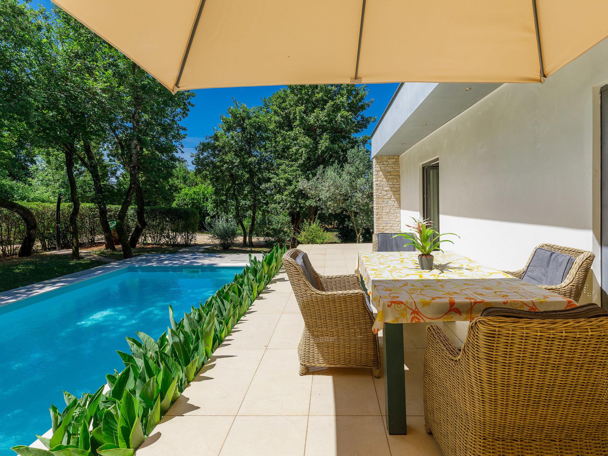 Single-family house "Villa Frleti", 2 storeys. In the hamlet Frleti 9 km from the centre of Umag, in a quiet, sunny position, 4 km from the sea, in a cul-de-sac, in the countryside. Private: property 1'700 m2 with trees, swimming pool angular (7 x 3 m, depth 140 cm, seasonal availability: 01.May. - 30.Sep.). Outdoor shower, terrace, barbecue. In the house: internet access, billiard table, table football, washing machine. Parking (for 2 cars) at the house on the premises. Shop 5 km, restaurant 3 km, bus stop 7 km, railway station 35 km, pebble beach 5.5 km, rocky beach 5.5 km. Walking paths from the house, cycle lane 100 m. The owner does not accept any youth groups. Please note: airfield 80 km from the property. Solar heating of the water in the swimming pool.