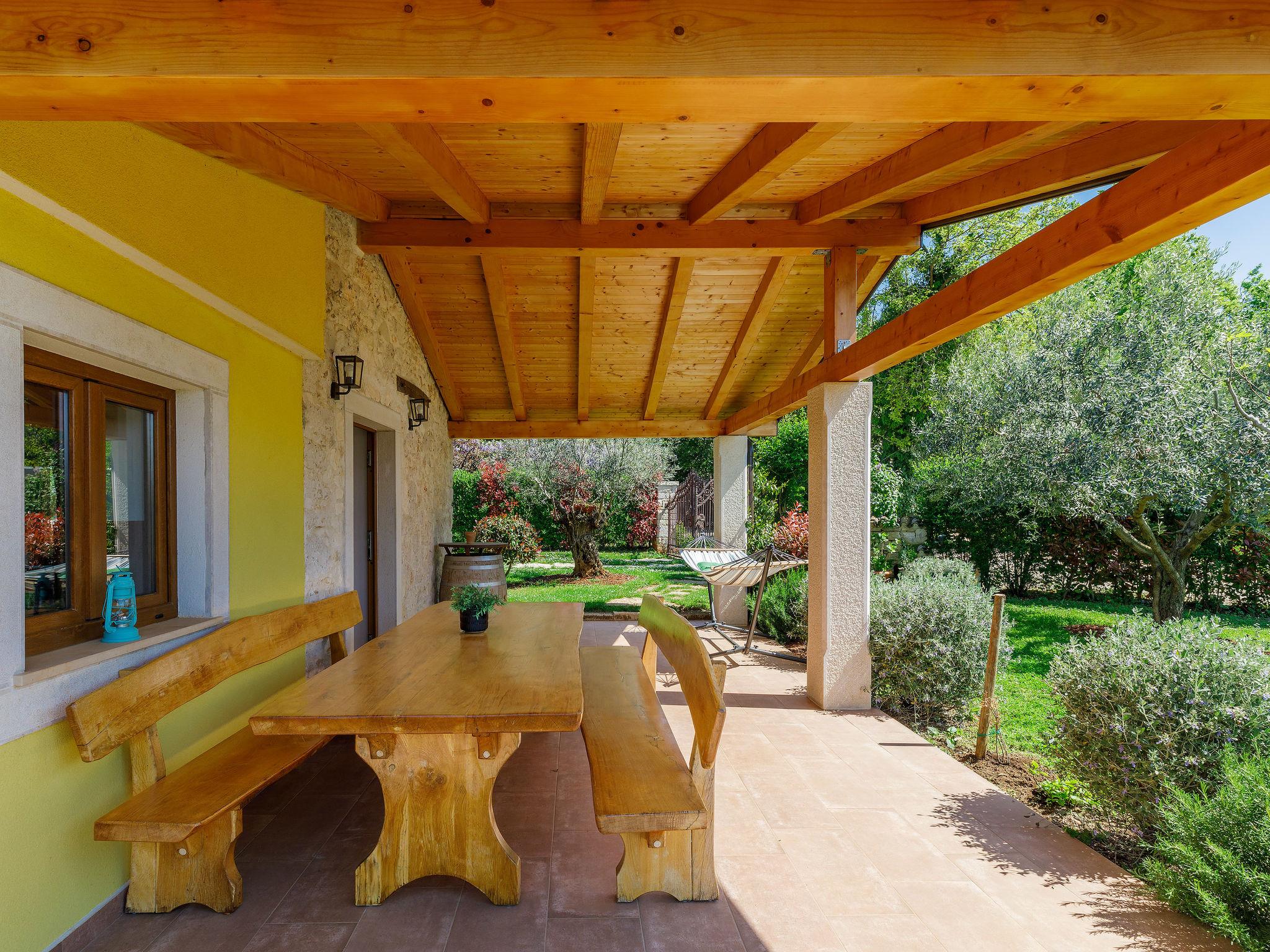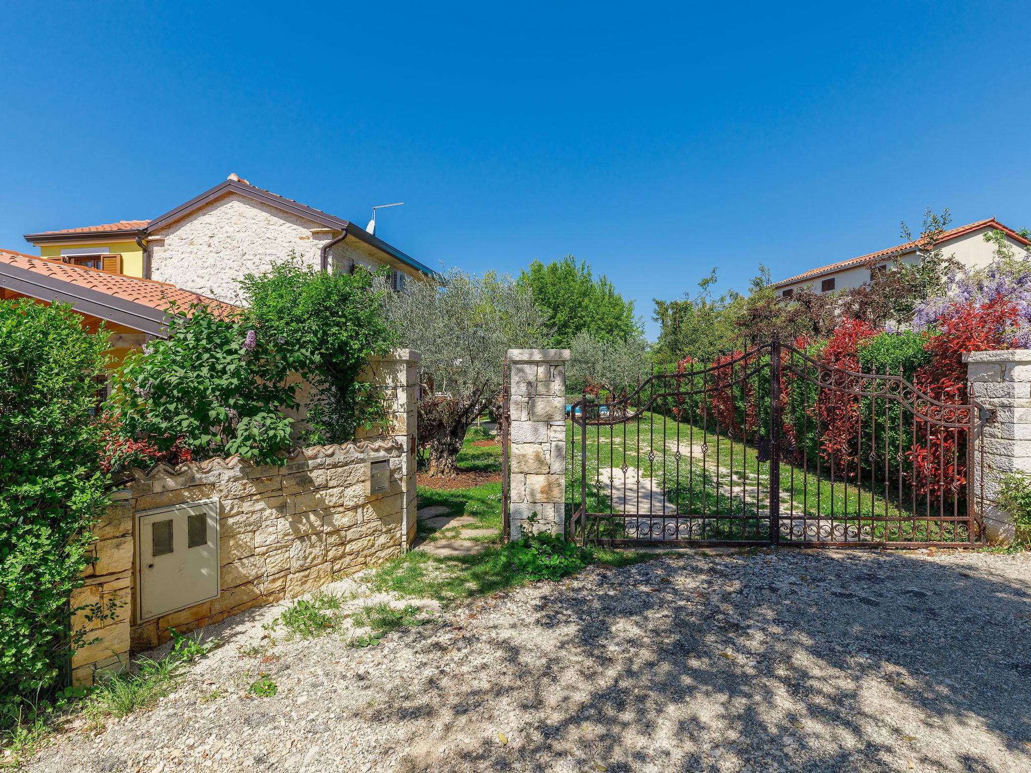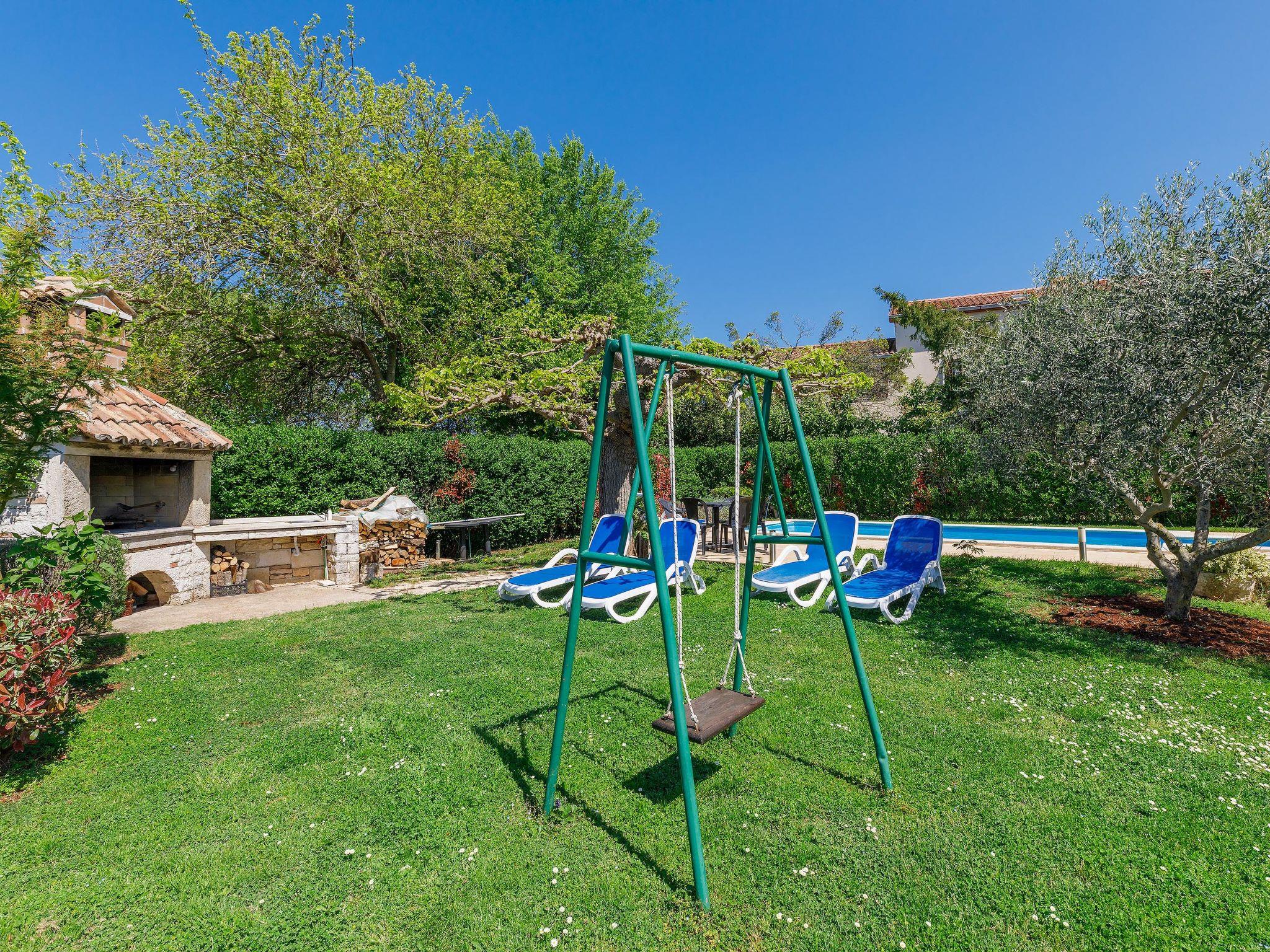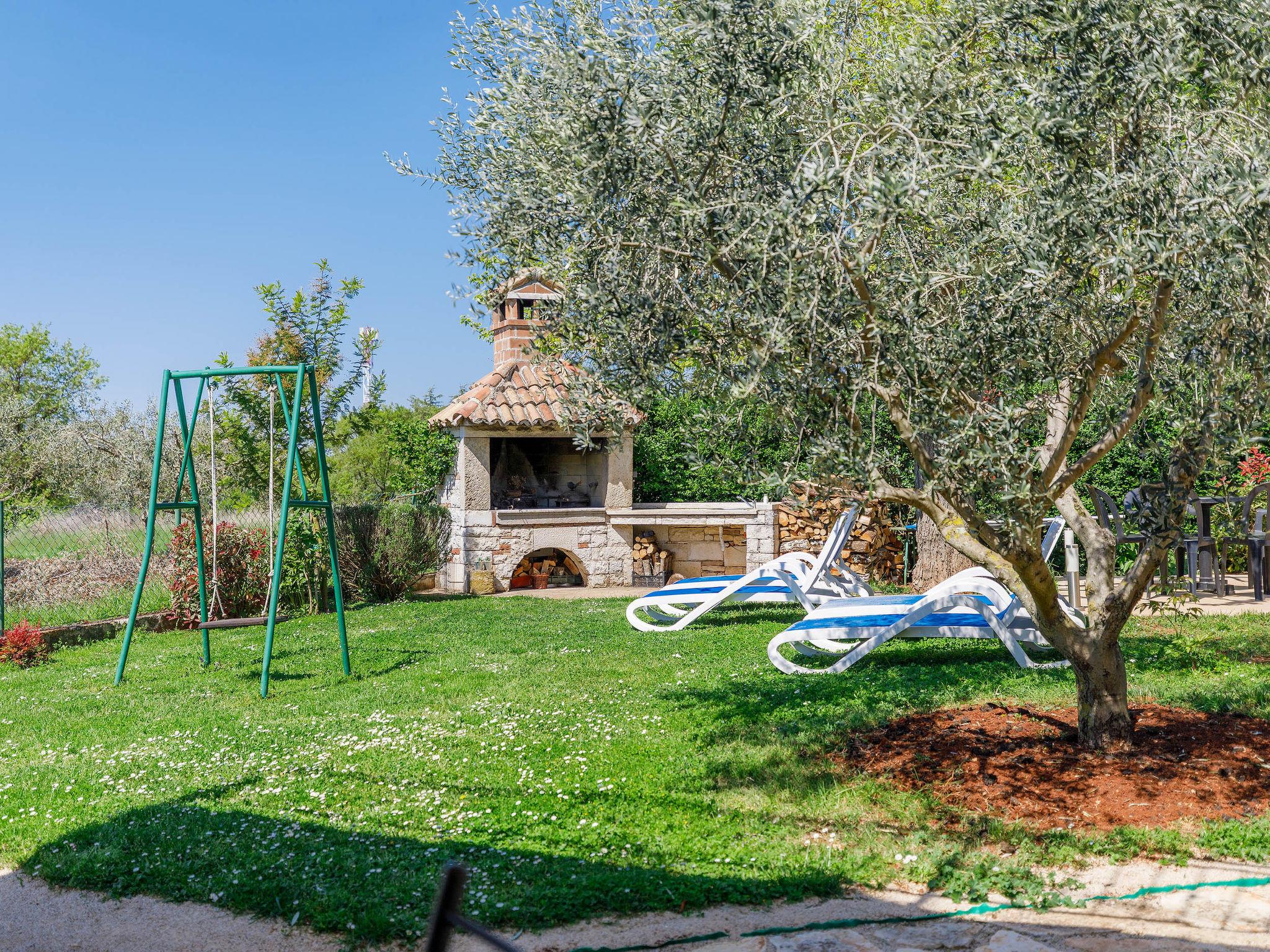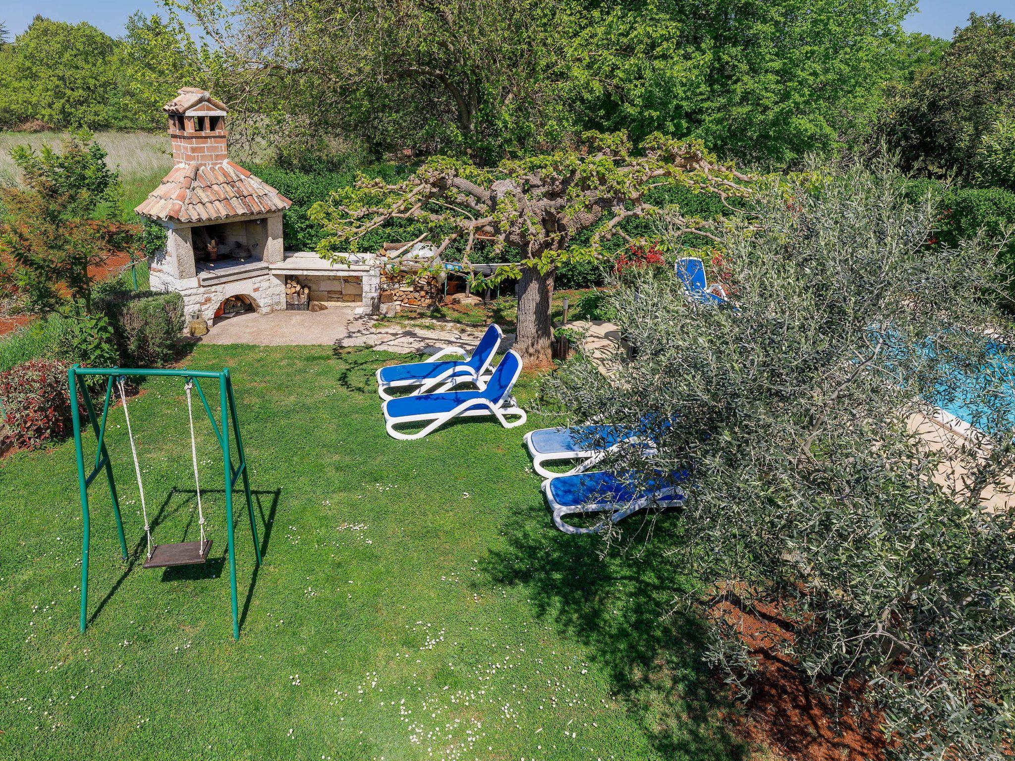 Old, child friendly country house "Marinko", 2 storeys, surrounded by trees. In the hamlet Kušci 6 km from the centre of Umag, outside the resort, in a quiet position, 1.5 km from the sea, 1.5 km from the beach, in the countryside. Private: property 800 m2 (fenced) with lawn, swimming pool angular (7 x 3 m, depth 140 cm, seasonal availability: 15.Apr. - 01.Oct.) with internal staircase. Terrace (30 m2), garden furniture, barbecue (swing). In the house: washing machine. Motor access to the house (250 m via unmade road). Parking at the house on the premises. Shop 1.5 km, restaurant 1.5 km, bus stop 2.2 km, pebble beach 1.5 km, rocky beach 1.5 km.