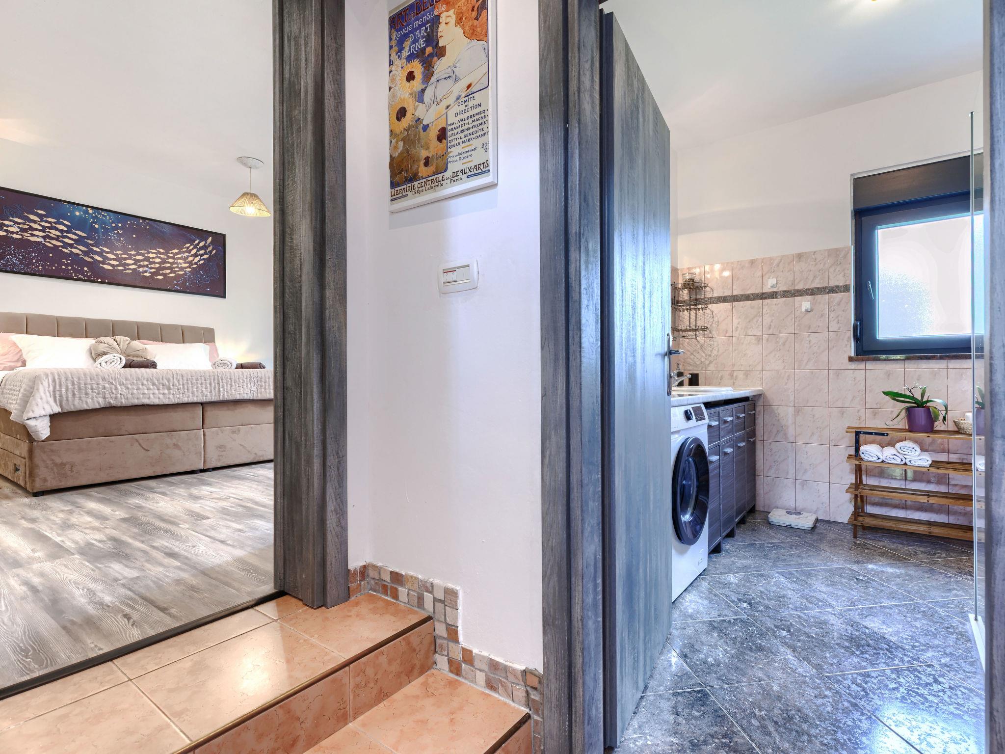 Beautiful house "Acquila", 2 storeys in 2025, surrounded by trees. In the hamlet Lokvini 4.5 km from the centre of Umag, in a quiet position, 4.5 km from the sea, 4.5 km from the beach. Private: property 600 m2, garden, swimming pool (24 m2, depth 155 cm, seasonal availability: 01.May. - 15.Oct.) with internal staircase. Outdoor shower, hot tub, terrace (30 m2), garden furniture, barbecue, pool maintenance by the owner/gardener. In the house: internet access. Parking (for 2 cars) at the house on the premises. Shop 4 km, supermarket 4 km, restaurant 1 km, bus stop 4.5 km, railway station 27 km, pebble beach 4.5 km. Golf course (18 hole) 9.5 km, tennis 4.5 km, cycle lane 50 m. Nearby attractions: Aquapark 15 km. The owner does not accept any groups. The owner does not accept any youth groups.