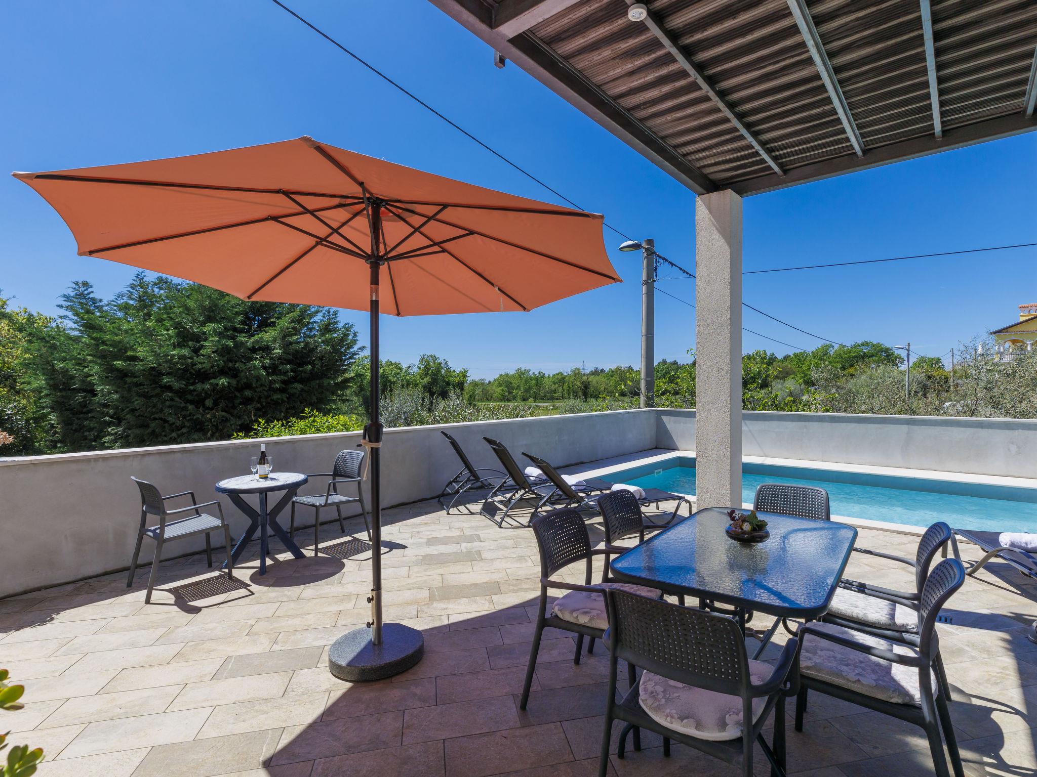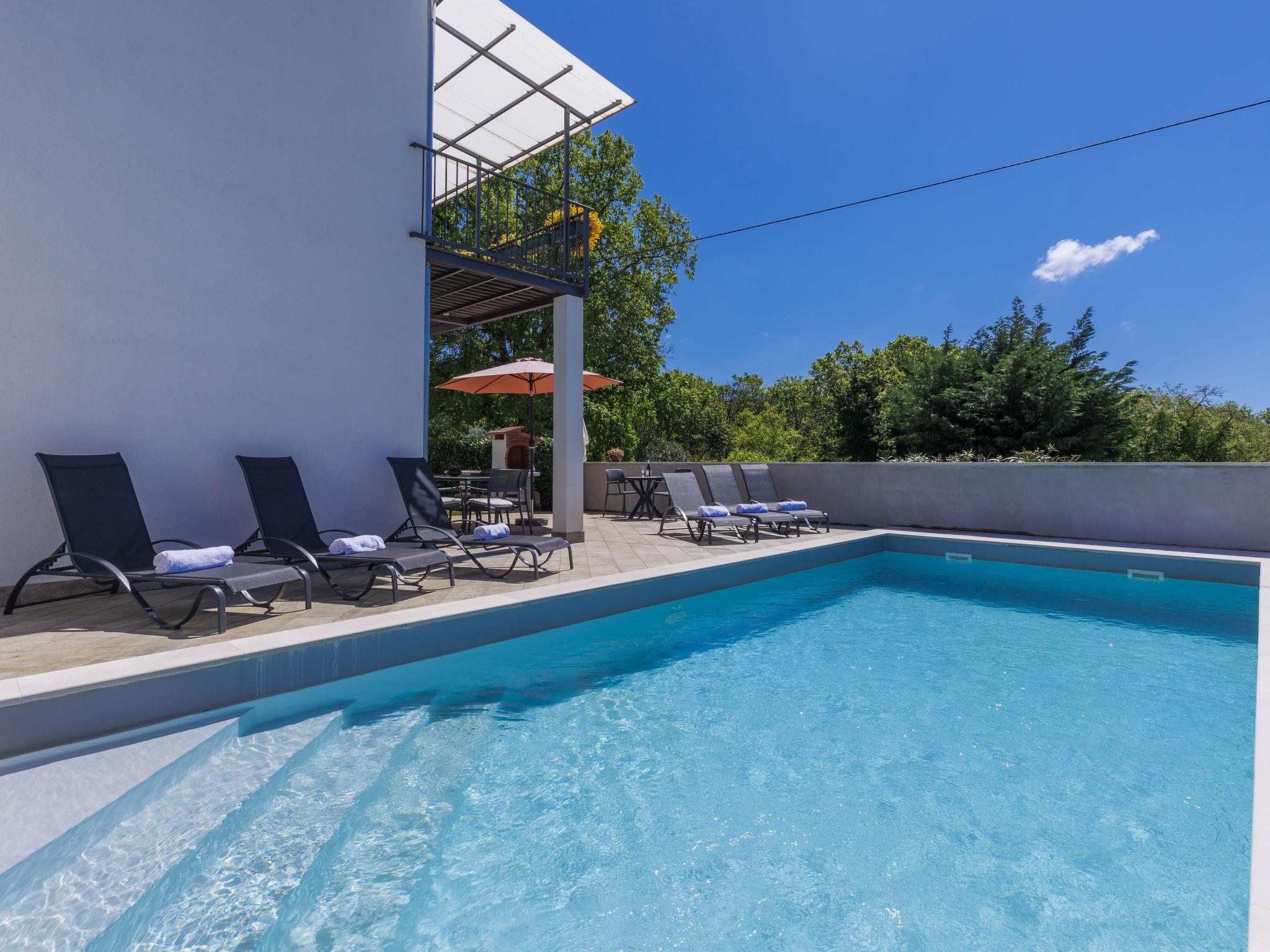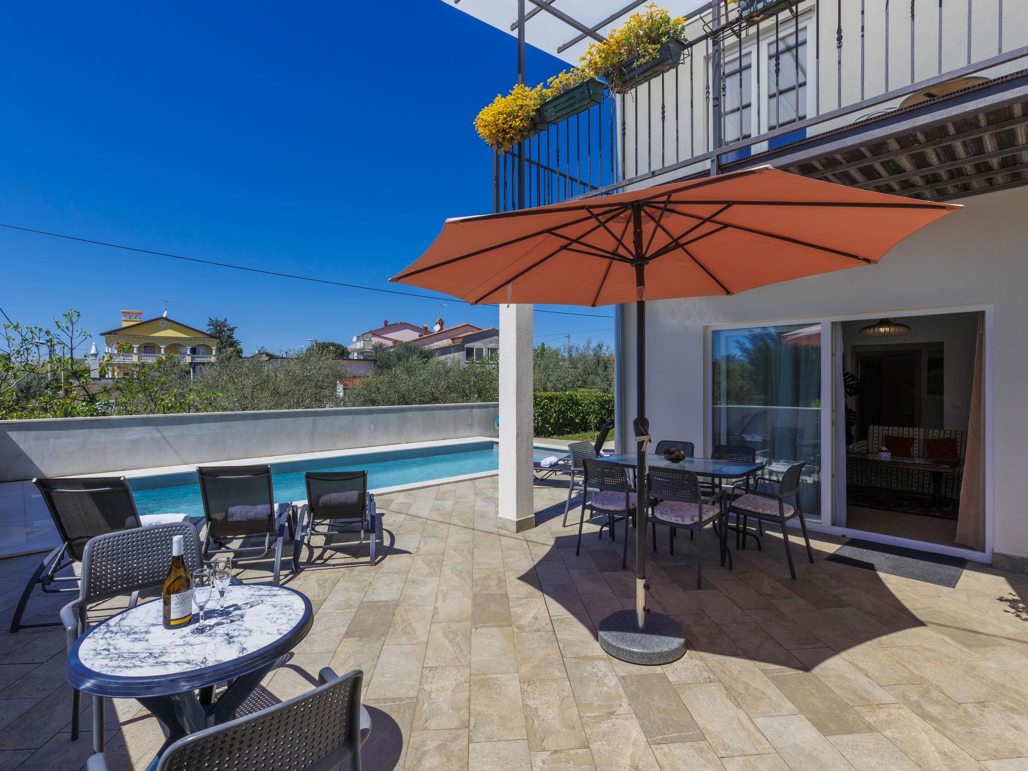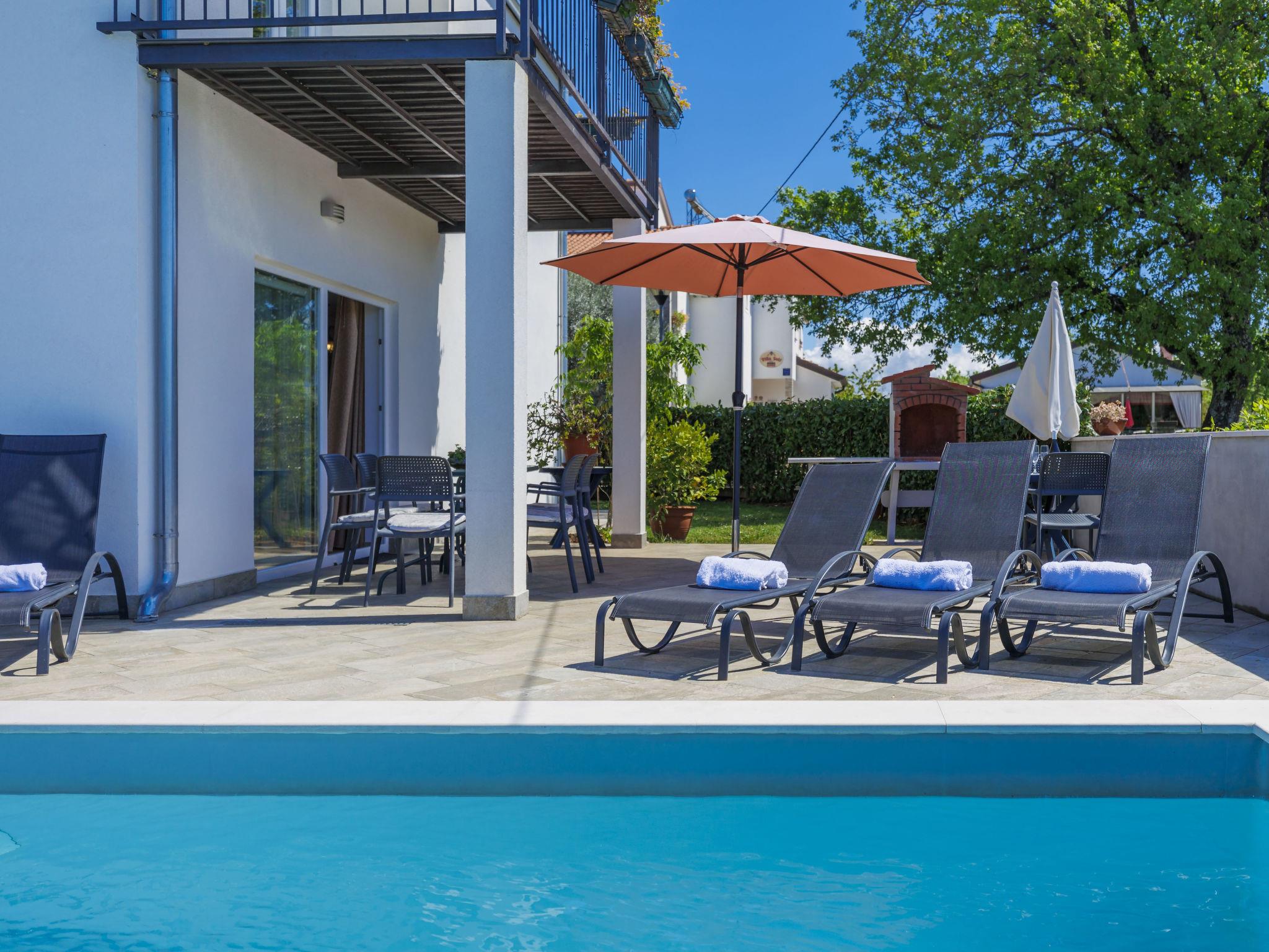 Beautiful house "Villa Soši", 2 storeys. In the hamlet Soši 3.5 km from the centre of Umag, in a quiet position, 3 km from the sea, 3 km from the beach. Private: property 500 m2 (fenced), garden, swimming pool angular (8 x 4 m, depth 150 cm, seasonal availability: 15.Apr. - 15.Oct.) with internal staircase. Outdoor shower, terrace (30 m2), garden furniture, barbecue, pool maintenance by the owner/gardener. In the house: internet access, washing machine. Breakfast on request. Parking (for 2 cars) at the house on the premises. Shop 3.5 km, supermarket 3.5 km, restaurant 800 m, bus stop "Umag" 4 km, railway station 33 km, pebble beach 3 km. Golf course (18 hole) 7 km. Nearby attractions: Aquapark 10 km. The owner does not accept any youth groups.
