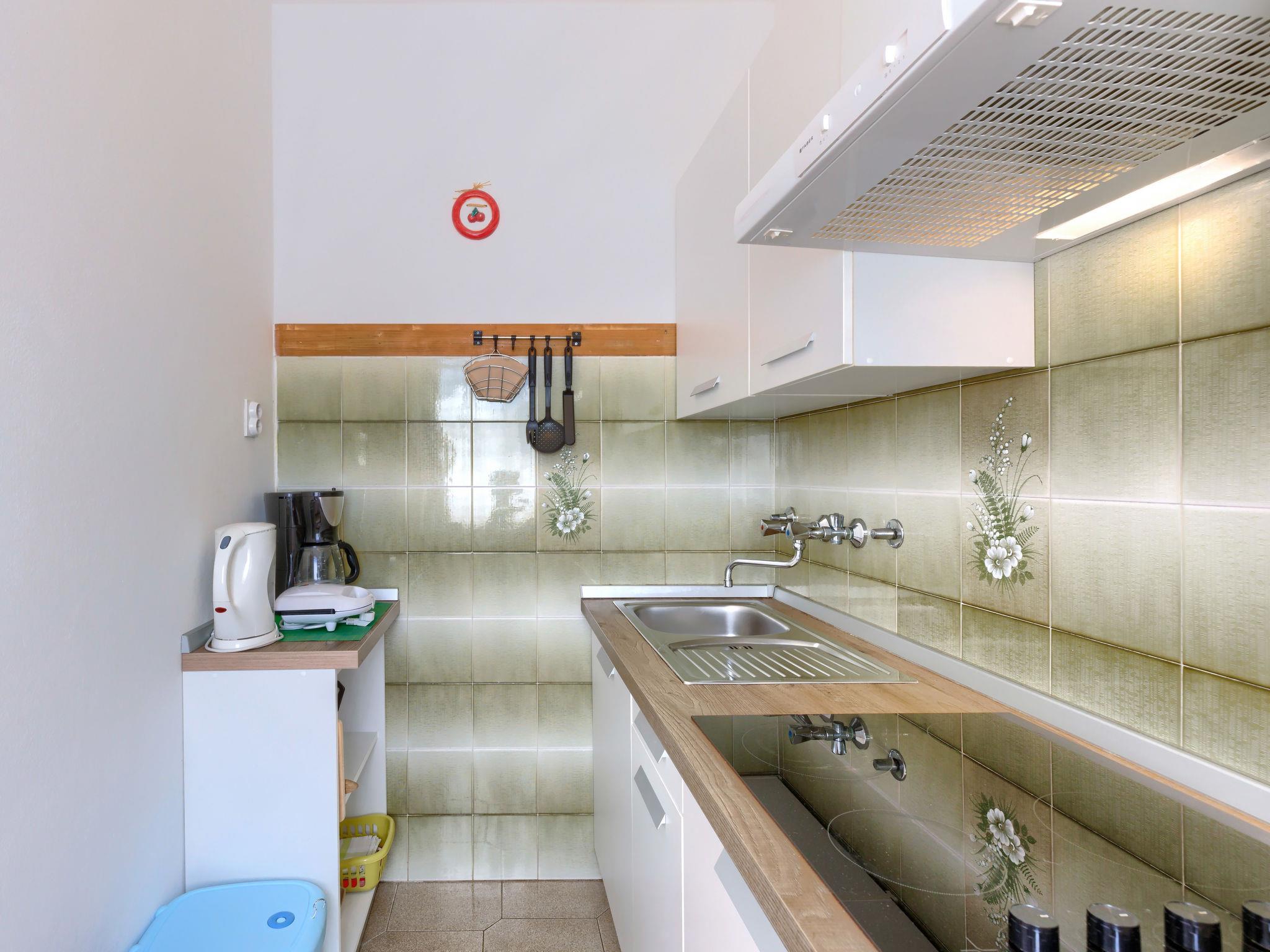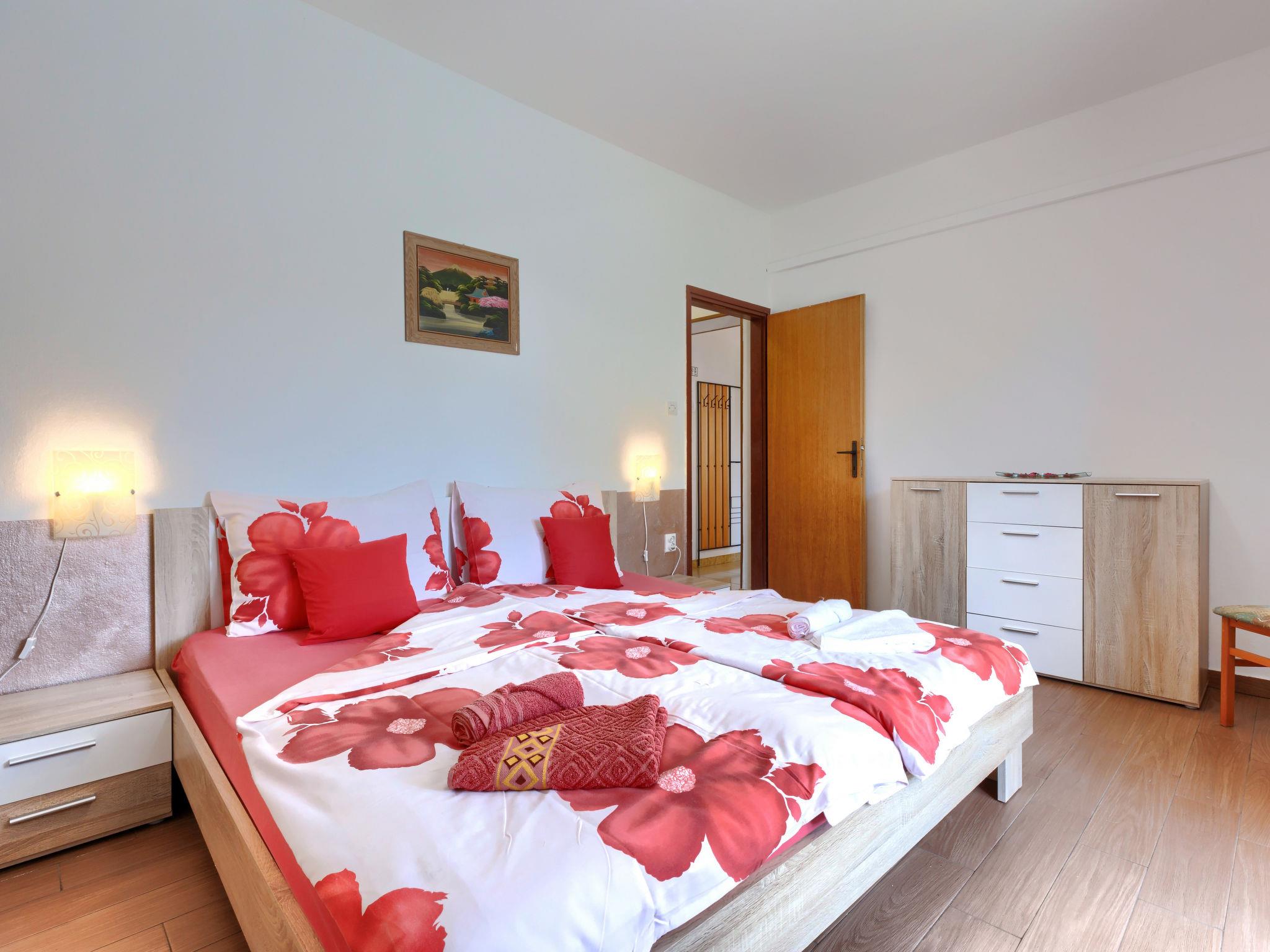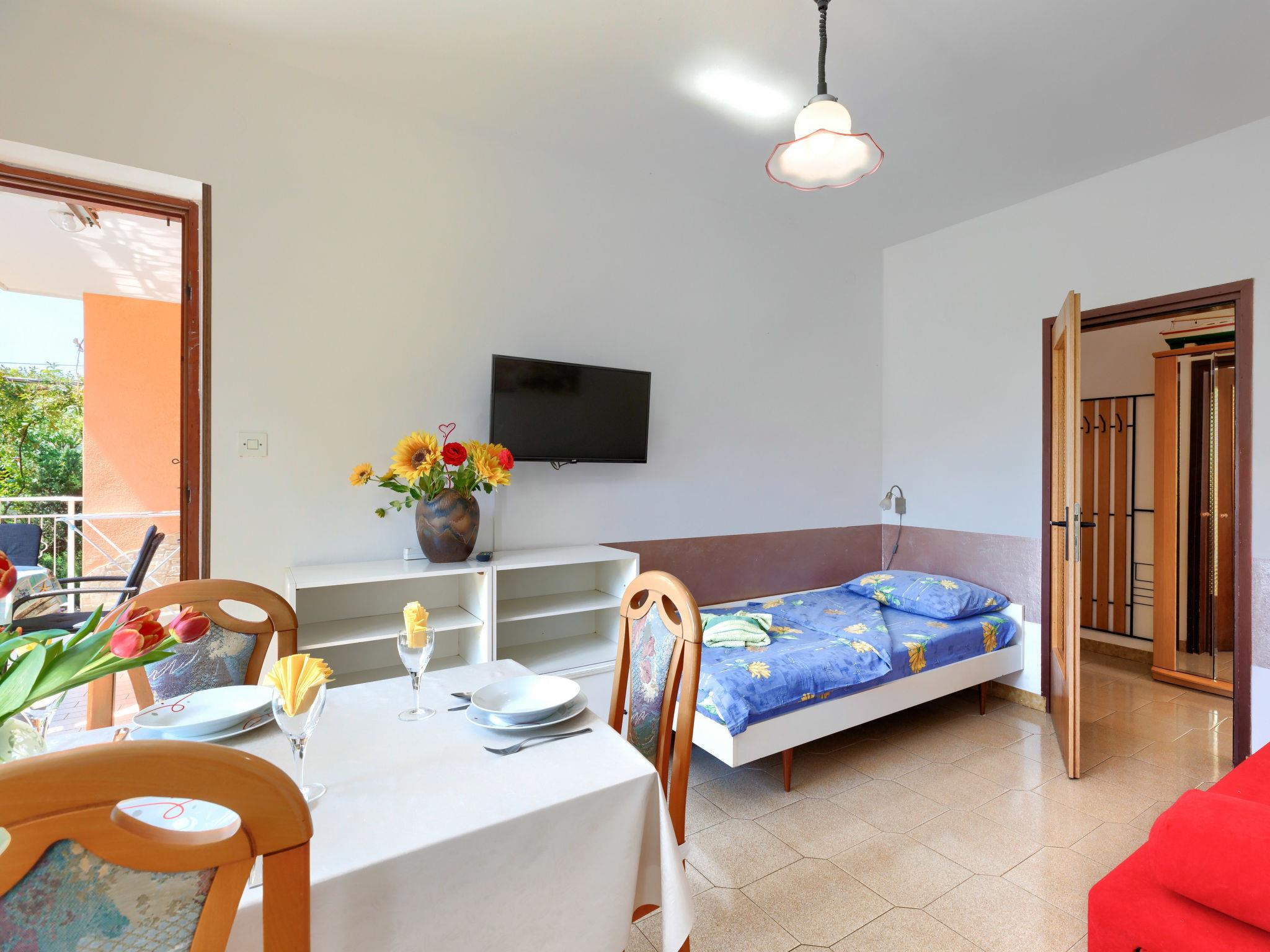"Elvi", 2-room apartment 45 m2, on the ground floor. Living/sleeping room with 1 bed, dining table, satellite TV and air conditioning. Exit to the balcony. 1 room with 1 double bed (2 x 90 cm, length 200 cm). Exit to the balcony. Open kitchen (4 hot plates, toaster, kettle, microwave, electric coffee machine). Shower/WC. No heating option. Balcony, terrace. Terrace furniture, balcony furniture. Facilities: Internet (WiFi, free). Please note: non-smoking house. Maximum 1 small pet/ dog allowed. Private entrance.