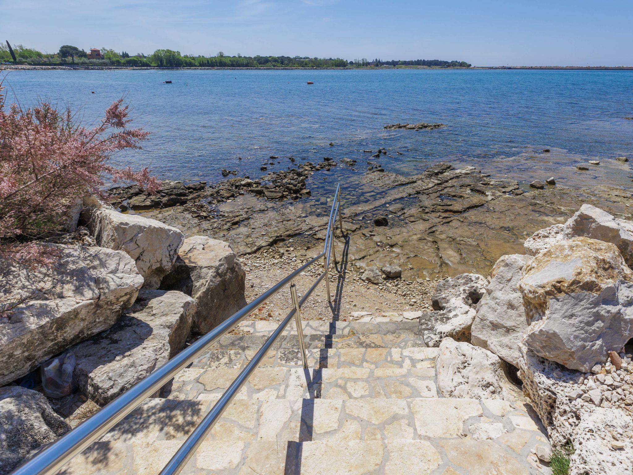 Apartment house. 500 m from the centre of Umag, 15 km from the centre of Novigrad, 35 km from the centre of Porec, 50 m from the sea, 50 m from the beach. For shared use: property 300 m2 (fenced) with plants. Barbecue. In the house: internet access. Parking on the premises. Shop, restaurant, café, pedestrian zone 500 m, bus stop 2 km, railway station 33 km, sandy beach 300 m, rocky beach 50 m. Marina 700 m, golf course (18 hole) 9 km. Please note: the owner lives in the same residence.
