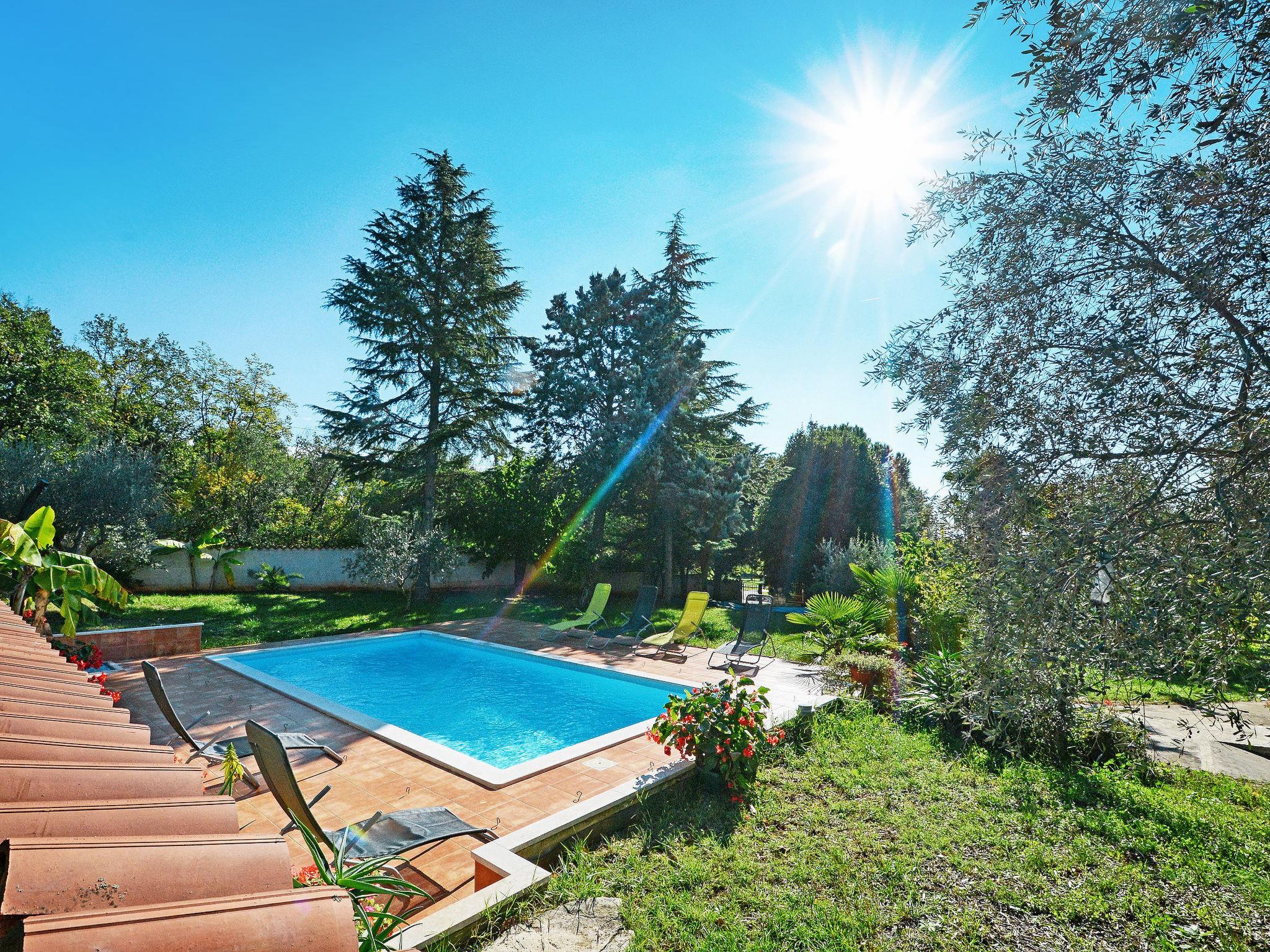 Apartment house "Albina". In the hamlet Valica 6 km from the centre of Umag, 1.2 km from the sea, 1.2 km from the beach, in the countryside. For shared use: property 4'500 m2, garden with lawn and trees, swimming pool angular (23 m2, depth 150 cm, seasonal availability: 01.May. - 25.Sep.). Outdoor shower, barbecue (swing). In the house: internet access, washing machine (for shared use). Parking on the premises. Shop 1.2 km, restaurant 150 m, bus stop 6 km, railway station 33 km, pebble beach 1.2 km, rocky beach 1.2 km. Golf course (18 hole) 6 km.