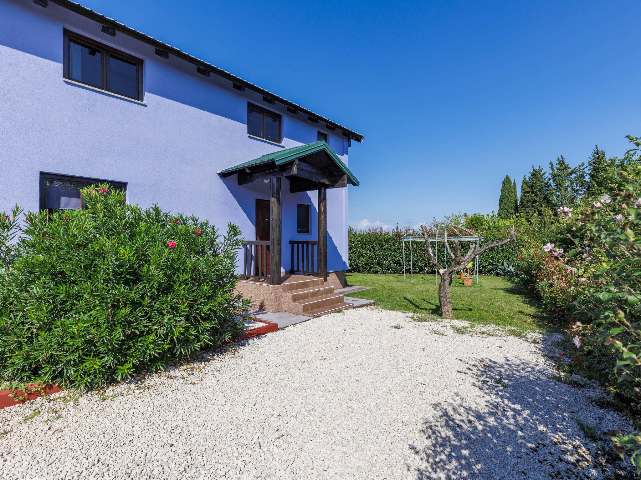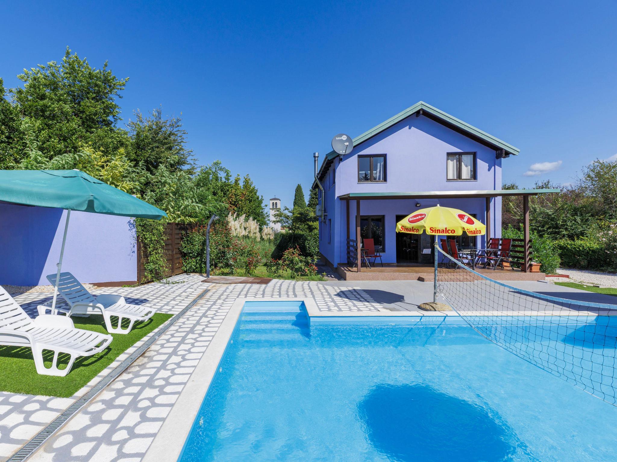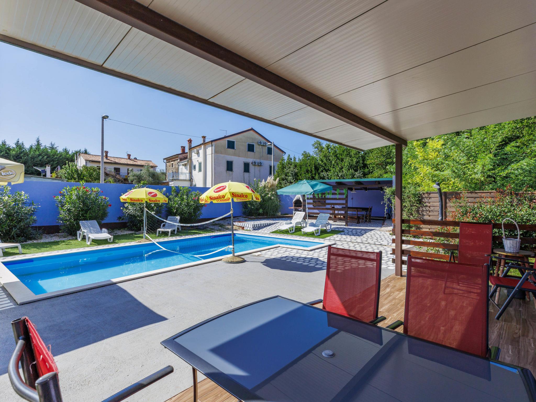 Single-family house "Minja", 2 storeys, built in 2015. In the hamlet Martincici 2 km from the centre of Buje, 8 km from the centre of Umag, 7 km from the sea. Private: property 750 m2 (fenced), swimming pool angular (8 x 4 m, depth 150 cm, seasonal availability: 04.Apr. - 06.Nov.) with internal staircase. Outdoor shower, terrace, garden furniture, barbecue, pool maintenance by the owner/gardener. In the house: internet access, washing machine. Parking (for 2 cars) on the premises. Shop 1 km, supermarket 2 km, bus stop 7 km, railway station 34 km, pebble beach 7 km, rocky beach 7 km.