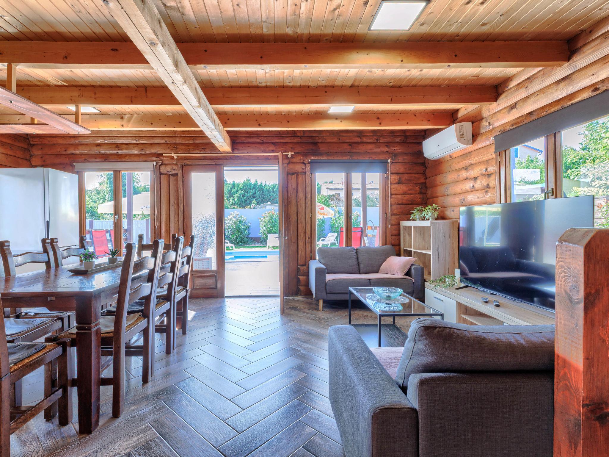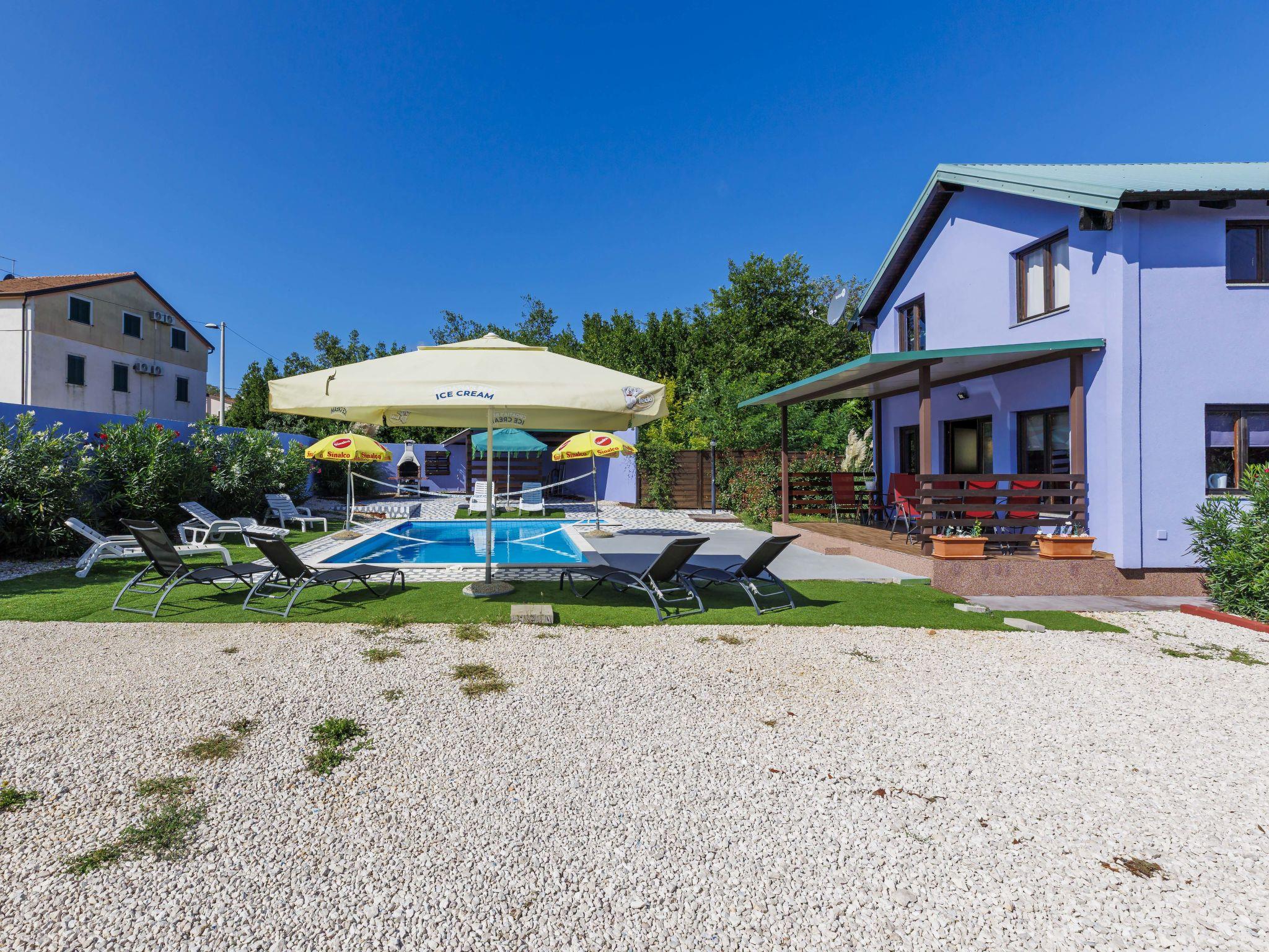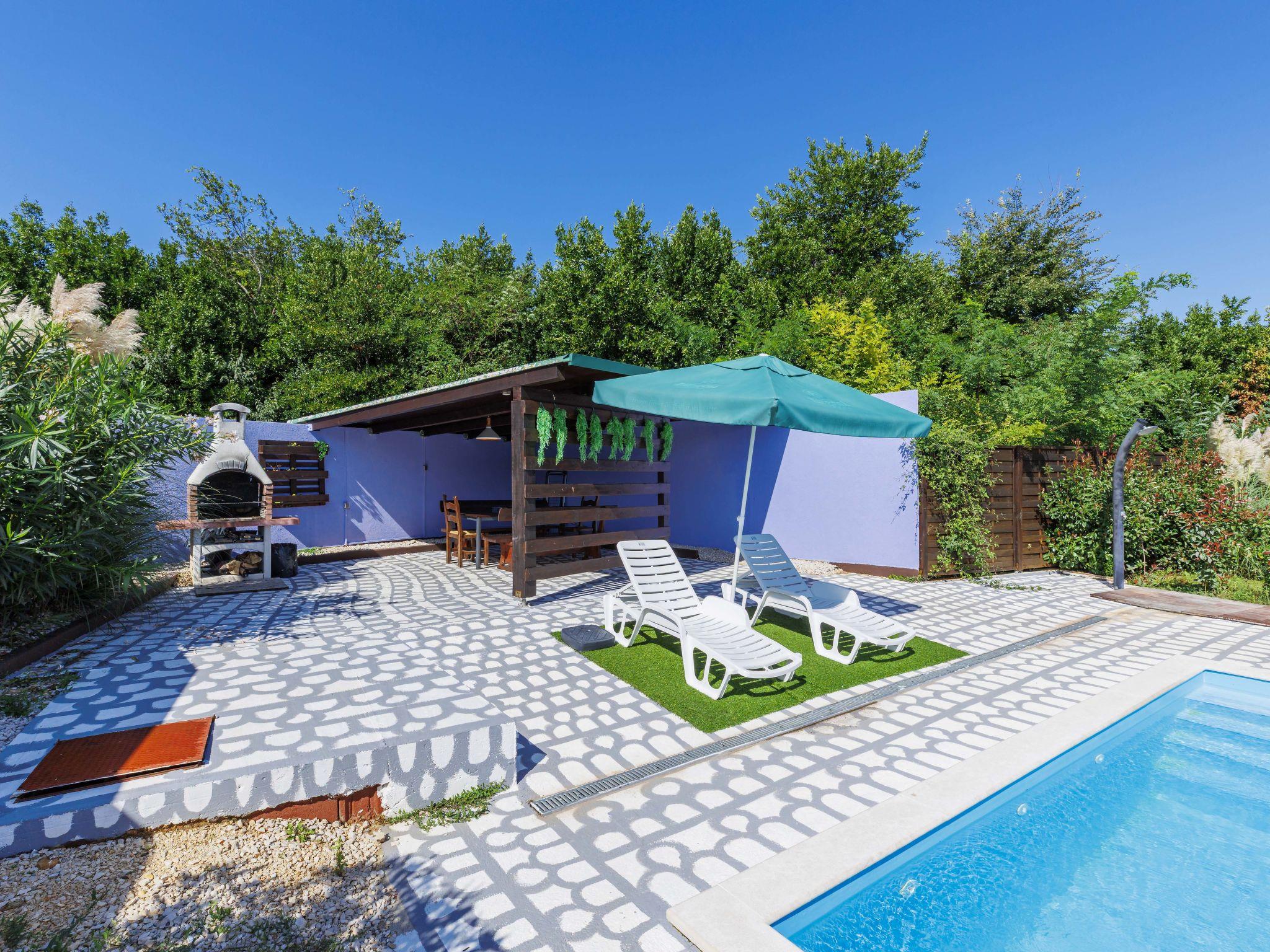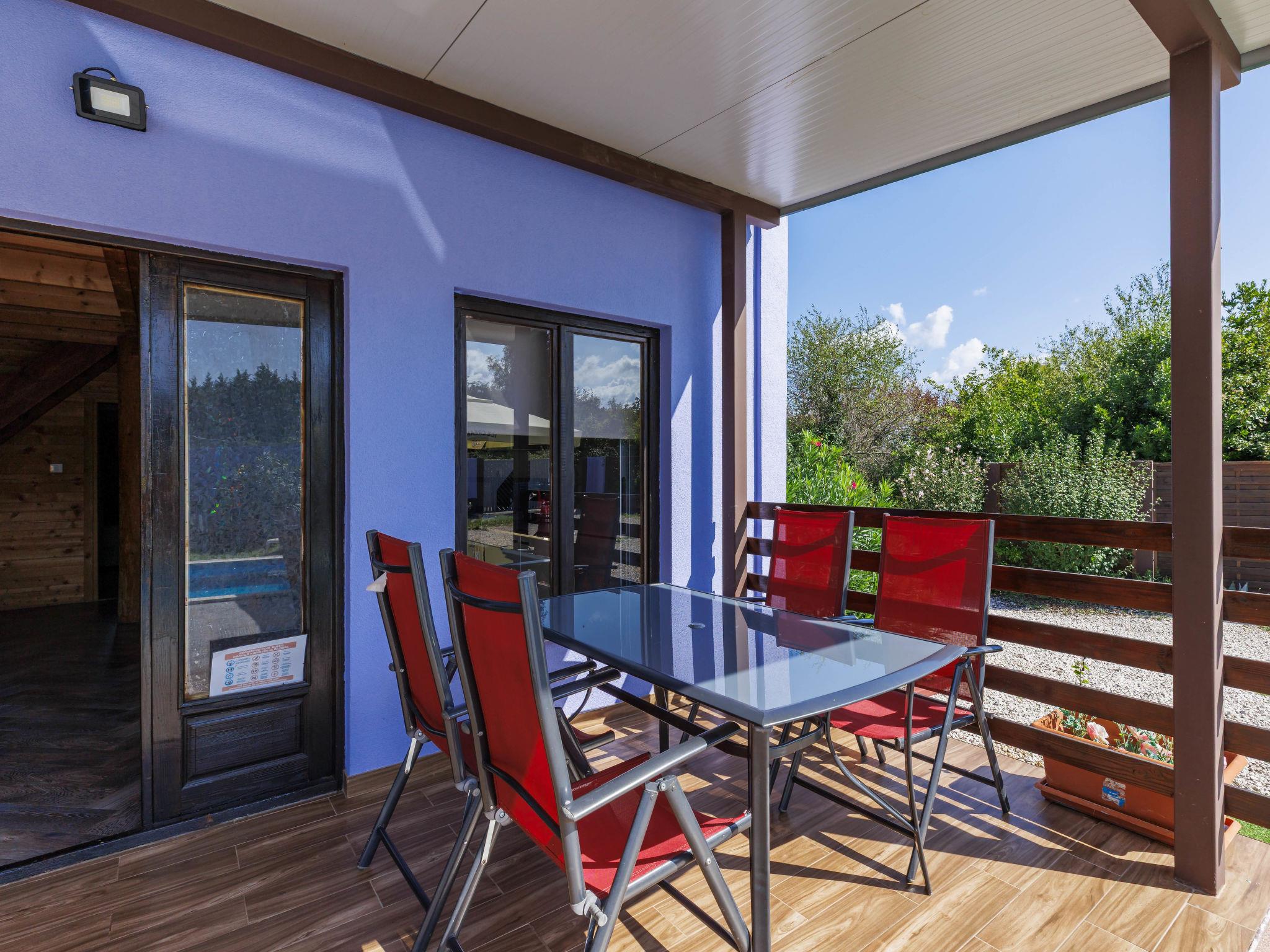 Single-family house "Minja", 2 storeys, built in 2015. In the hamlet Martincici 2 km from the centre of Buje, 8 km from the centre of Umag, 7 km from the sea. Private: property 750 m2 (fenced), swimming pool angular (8 x 4 m, depth 150 cm, seasonal availability: 04.Apr. - 06.Nov.) with internal staircase. Outdoor shower, terrace, garden furniture, barbecue, pool maintenance by the owner/gardener. In the house: internet access, washing machine. Parking (for 2 cars) on the premises. Shop 1 km, supermarket 2 km, bus stop 7 km, railway station 34 km, pebble beach 7 km, rocky beach 7 km.