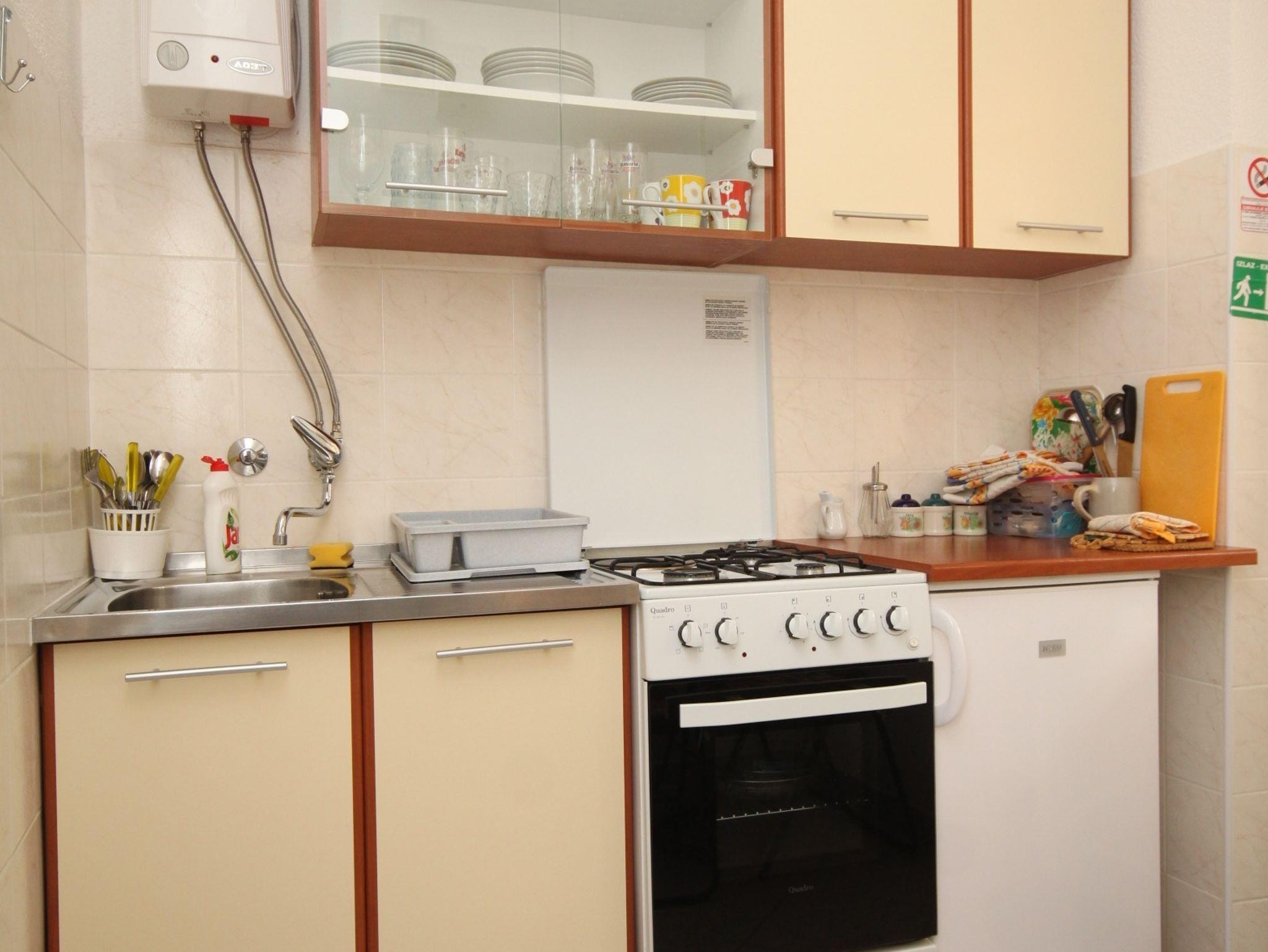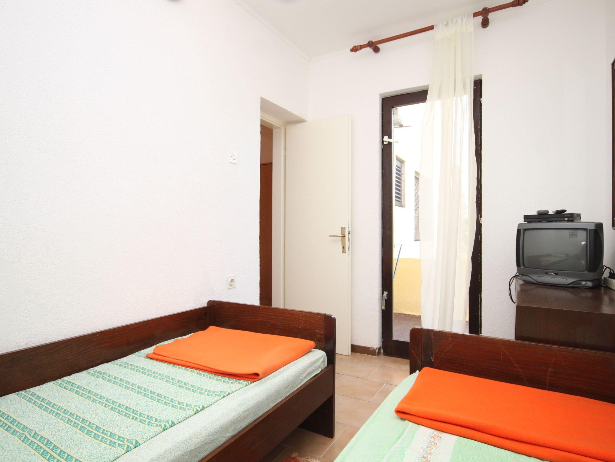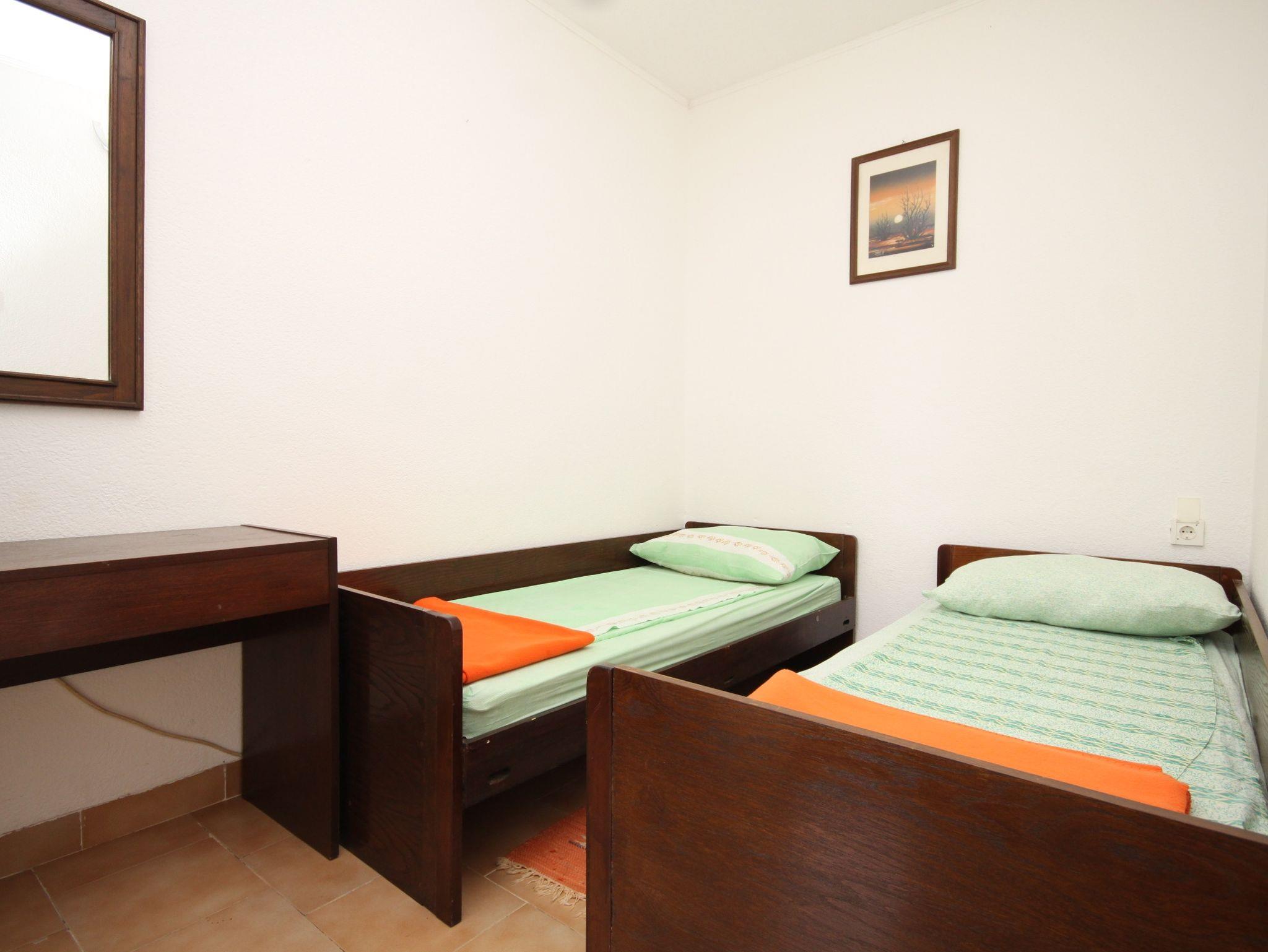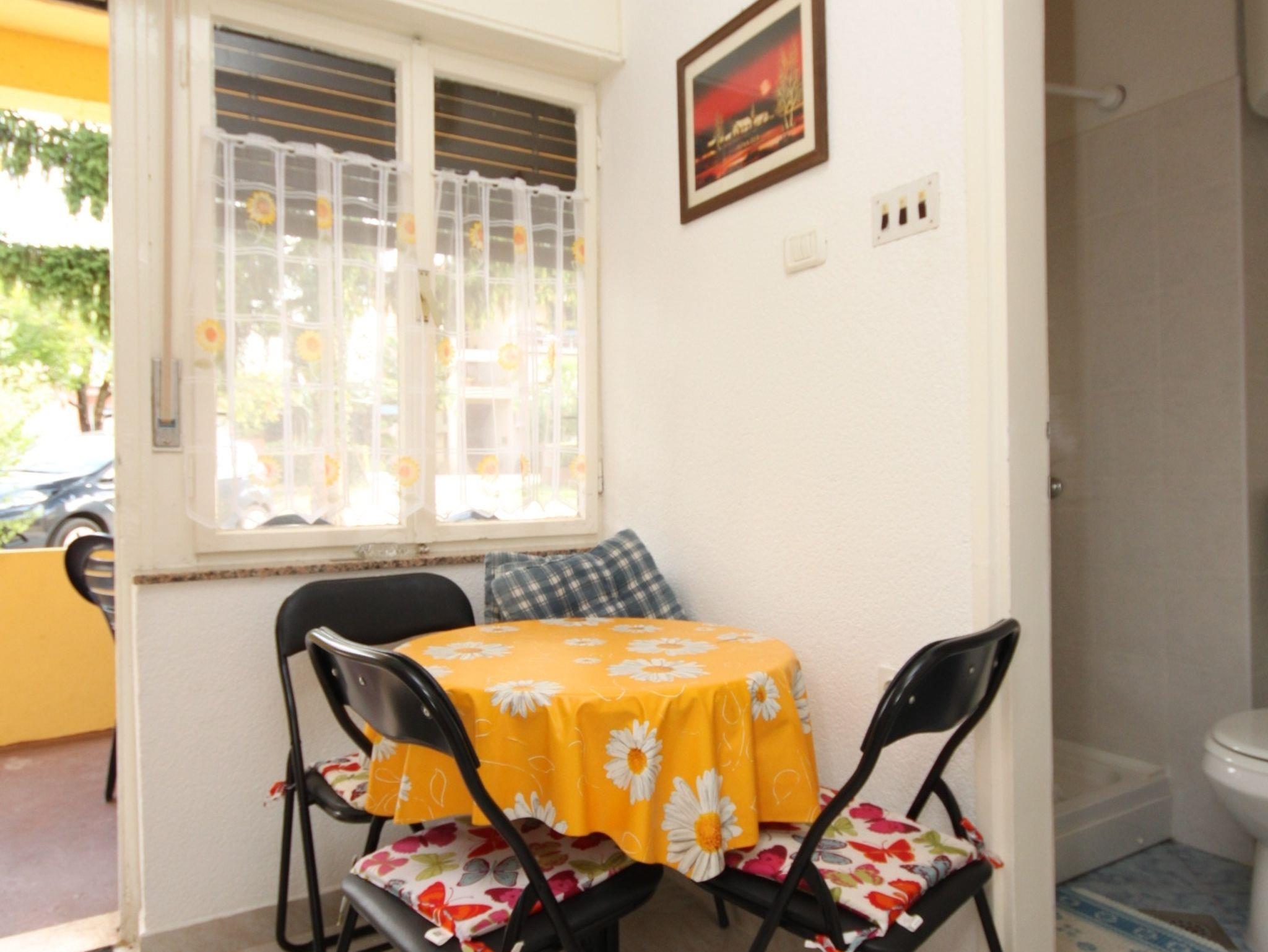 Ferienwohnung bietet Platz für 4 Gäste. Die Betten sind in Schlafzimmern, die es 2 gibt, innerhalb einer Gesamtfläche von 27m2, angeordnet. Die Gäste haben eine eigene Terrasse zur Verfügung, auf der sie in warmen Sommernächten genießen können. Es ist erlaubt, Speisen auf dem Gemeinschafts-Grill vorzubereiten. Durch das Schlafzimmer der gebuchten Unterkunftseinheit geht man in die andere Räume der Einheit. IM PREIS INBEGRIFFEN: Kurtaxe, Endreinigung, Parkplatz, Internet, Wäschewaschen, Bügeleisen, Bügelbrett, Föhn. VERBINDLICHE ZUSÄTZLICHE KOSTEN: Aufzahlung für Kurzaufenthalte (prozentualer Zuschlag pro Nächtigungsanzahl: 30% - 1, 20% - 2, 10% - 3). UNVERBINDLICHE ZUSÄTZLICHE KOSTEN: Klimatisierung (5,00 € pro Nacht). Die Verfügbarkeit zusätzlicher Dienstleistungen in Ihrem reservierten Termin und die Preise derselben (falls nicht aufgeführt) müssen im Voraus überprüft werden. Zusätzliche Dienstleistungen die in der Zahlungsaufforderung nicht aufgeführt sind werden direkt beim Vermieter bezahlt, angenommen der Gast nutzt auch diese.