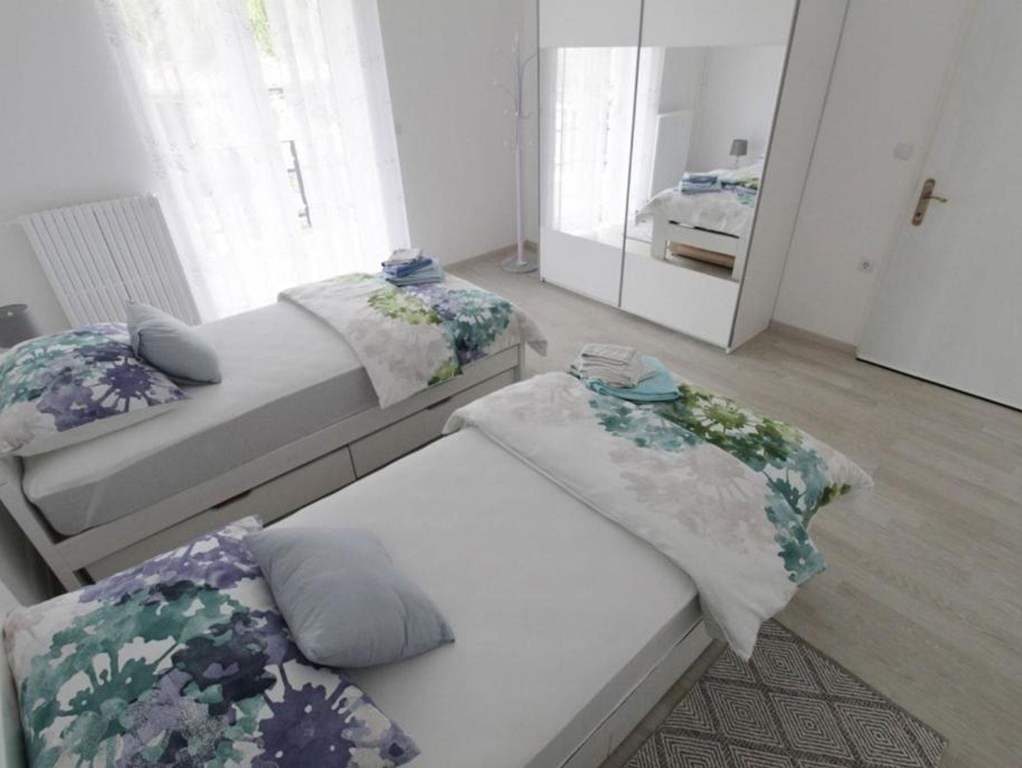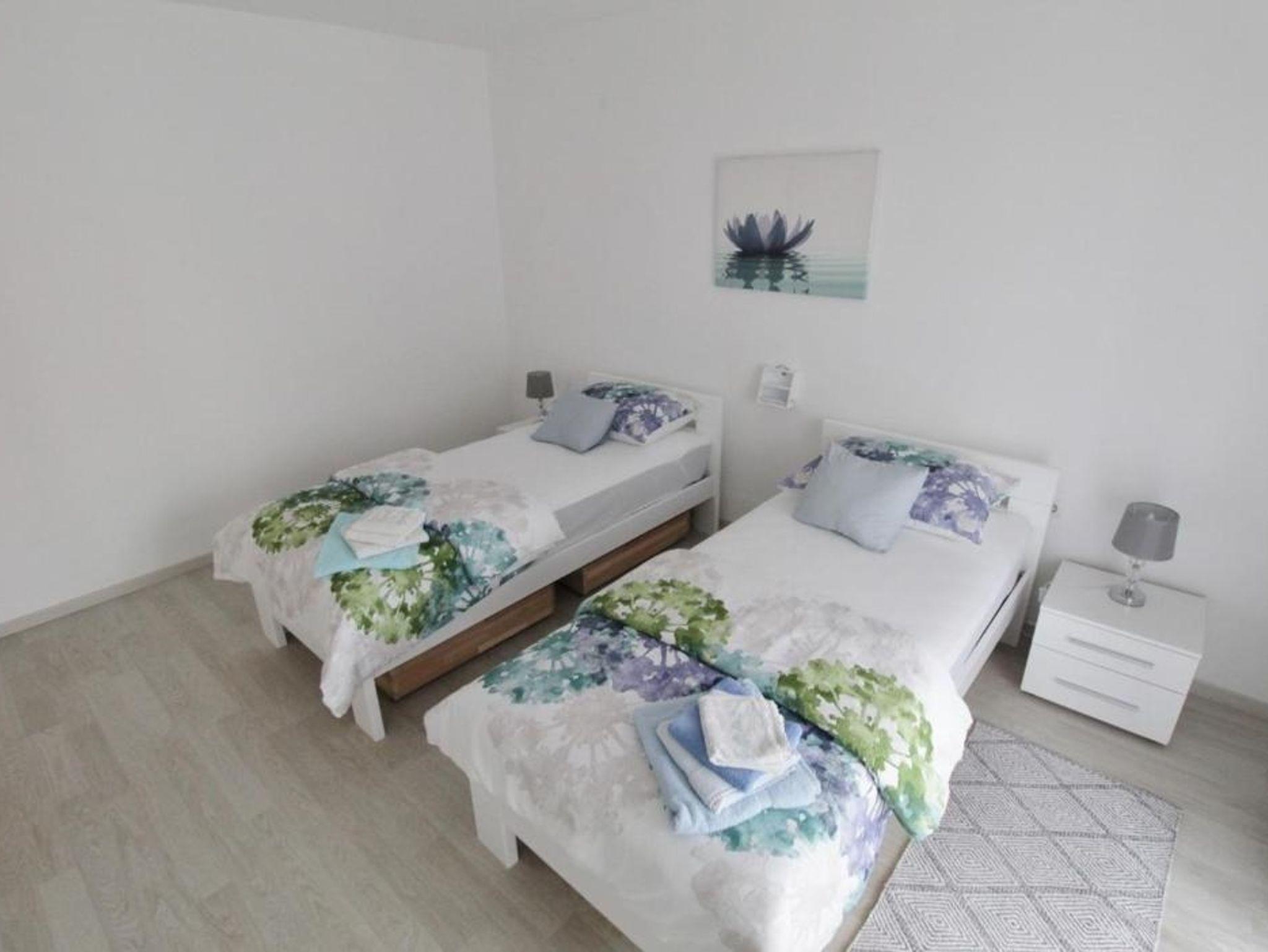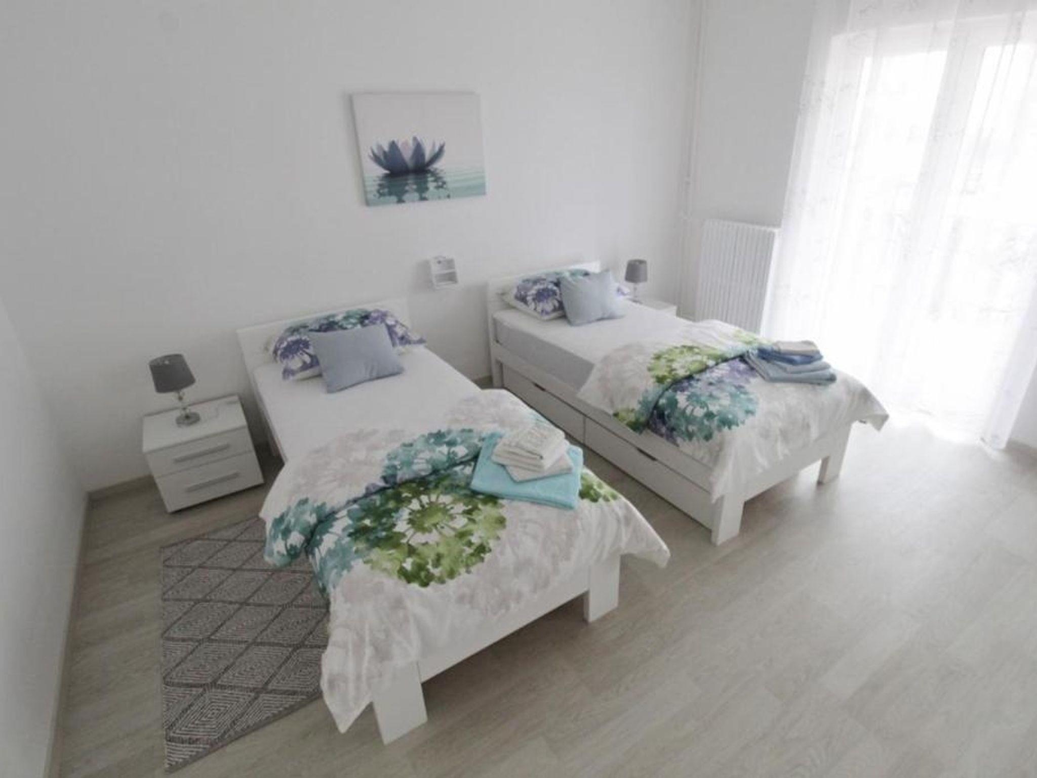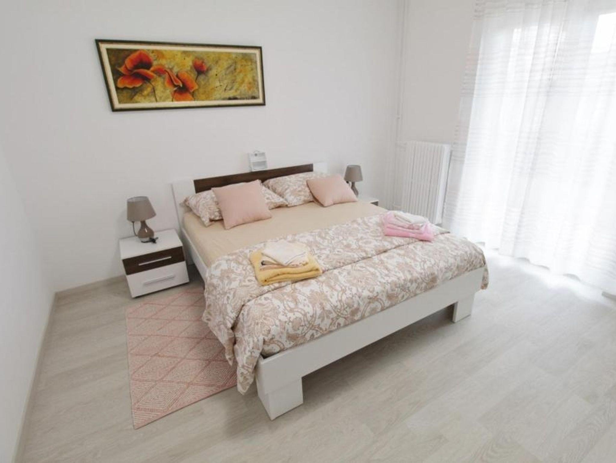 Ferienwohnung bietet Platz für 4 Gäste. Die Betten sind in Schlafzimmern, die es 2 gibt, innerhalb einer Gesamtfläche von 94m2, angeordnet. Die Gäste haben eine eigene Terrasse zur Verfügung, auf der sie in warmen Sommernächten genießen können. IM PREIS INBEGRIFFEN: Kurtaxe, Endreinigung, Klimatisierung, Zentralheizung, Parkplatz, Internet, Bügeleisen, Bügelbrett, Föhn, 2 Kinderbettchen (im Preis enthalten). VERBINDLICHE ZUSÄTZLICHE KOSTEN: Aufzahlung für Kurzaufenthalte (prozentualer Zuschlag pro Nächtigungsanzahl: 30% - 1, 20% - 2, 10% - 3). Die Verfügbarkeit zusätzlicher Dienstleistungen in Ihrem reservierten Termin und die Preise derselben (falls nicht aufgeführt) müssen im Voraus überprüft werden. Zusätzliche Dienstleistungen die in der Zahlungsaufforderung nicht aufgeführt sind werden direkt beim Vermieter bezahlt, angenommen der Gast nutzt auch diese. Ermäßigung auf den Grundpreis: Gratistag 14=13 (bei einem Aufenthalt von 14 Tagen oder mehr erhalten Sie einen Gratistag für den Aufenthalt bis 31.12.26).
