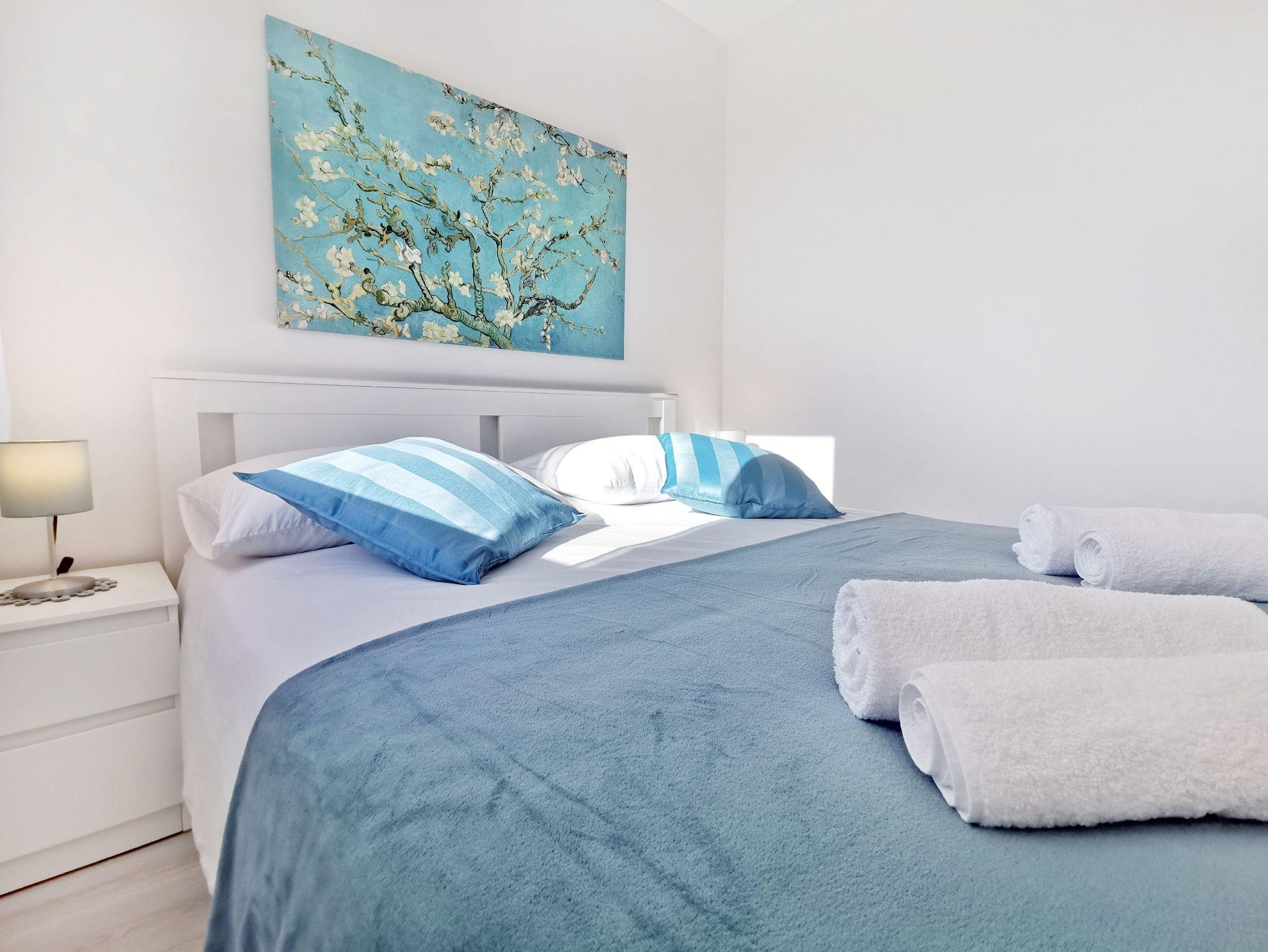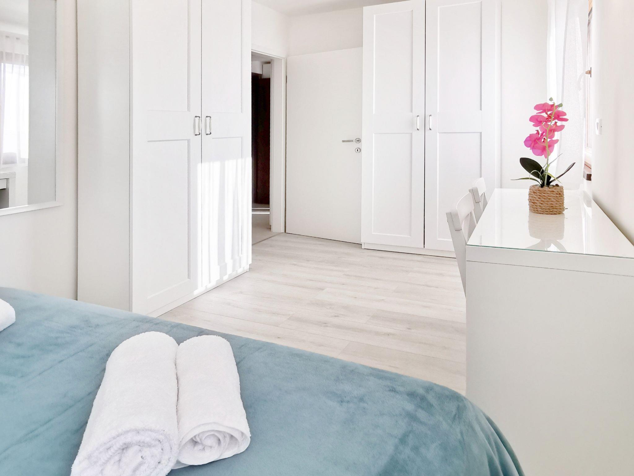 Ferienwohnung bietet Platz für 6 Gäste. Die Betten sind in Schlafzimmern, die es 3 gibt, innerhalb einer Gesamtfläche von 62m2, angeordnet. Die Gäste haben eine eigene Terrasse zur Verfügung, auf der sie in warmen Sommernächten genießen können. Es ist erlaubt, Speisen auf dem Gemeinschafts-Grill vorzubereiten. IM PREIS INBEGRIFFEN: Kurtaxe, Endreinigung, Klimatisierung, Parkplatz, Föhn. Die Verfügbarkeit zusätzlicher Dienstleistungen in Ihrem reservierten Termin und die Preise derselben (falls nicht aufgeführt) müssen im Voraus überprüft werden. Zusätzliche Dienstleistungen die in der Zahlungsaufforderung nicht aufgeführt sind werden direkt beim Vermieter bezahlt, angenommen der Gast nutzt auch diese.