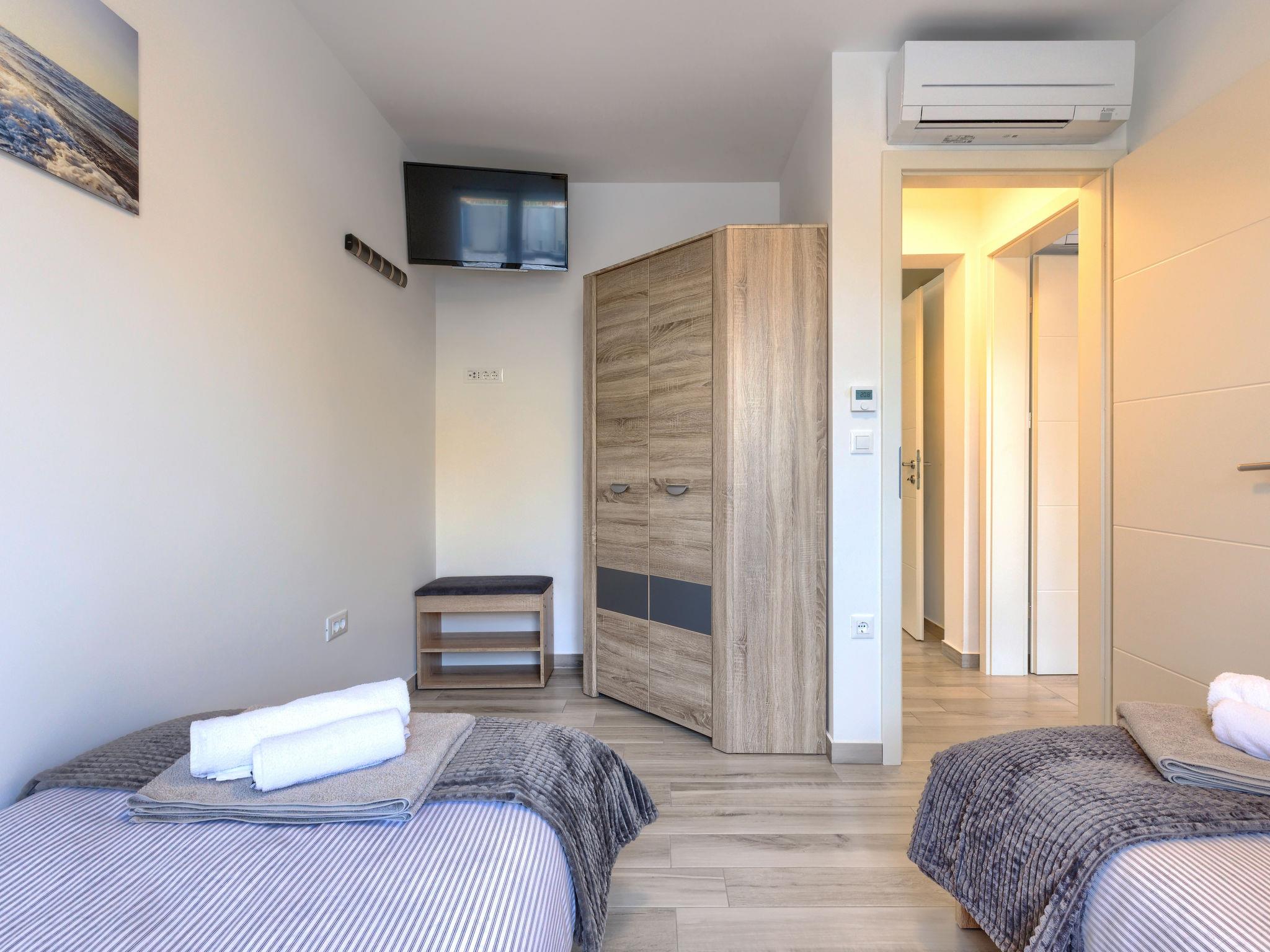 4-room apartment 100 m2, on the ground floor. Comfortable and beautiful furnishings: living/dining room with satellite TV and air conditioning. Exit to the terrace. 1 room with 1 double bed (2 x 90 cm, length 200 cm), satellite TV and air conditioning. Exit to the terrace. 1 room with 1 double bed (2 x 90 cm, length 200 cm), shower/WC, satellite TV and air conditioning. 1 room with 2 beds (90 cm, length 200 cm), satellite TV and air conditioning. Open kitchen (4 hot plates, oven, dishwasher, toaster, kettle, freezer, electric coffee machine). Shower/WC, sep. WC. Floor heating. Terrace 20 m2, roofed. Terrace furniture, barbecue (portable), deck chairs. View of the swimming pool. Facilities: washing machine, safe, mosquito net, baby cot, hair dryer. Internet (WiFi, free). Suitable for families.