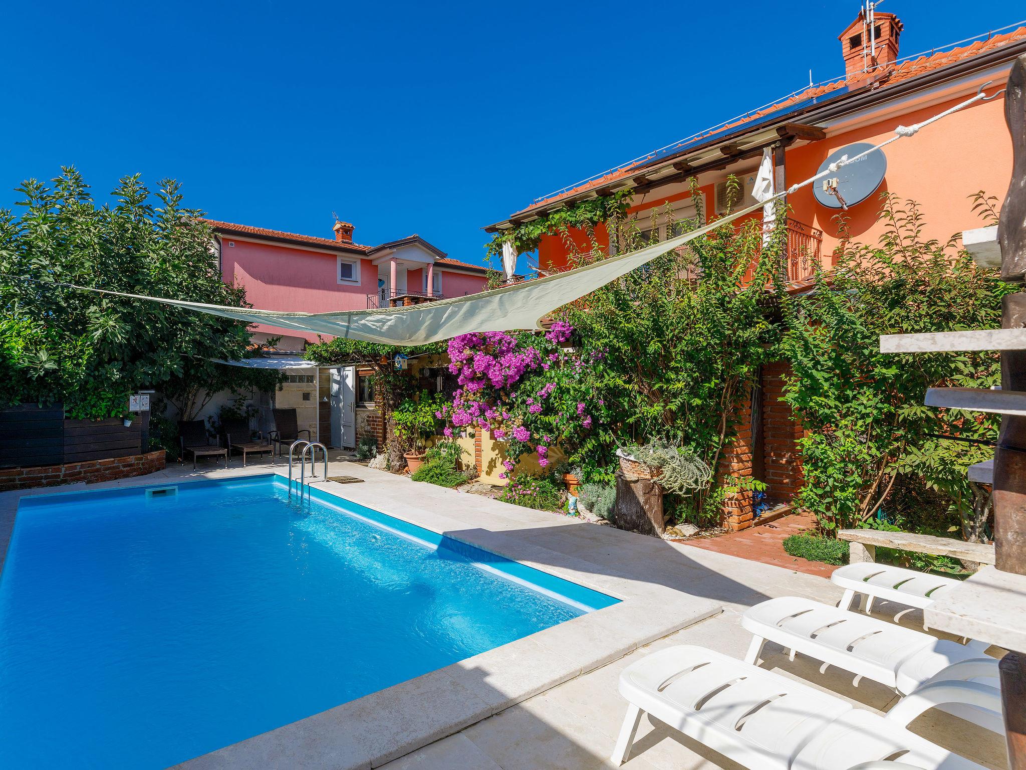 Murine: Beautiful 3-family house "Fontana". In the hamlet Fratrici 1 km from the centre of Murine, 3 km from the centre of Umag, in a quiet position, traffic calmed area, 2.5 km from the sea, 2.5 km from the beach. For shared use: property 500 m2 (fenced) with lawn, swimming pool angular (24 m2, depth 140 cm, seasonal availability: 23.May. - 28.Sep.). Outdoor shower, terrace (10 m2), barbecue (swing). In the house: internet access. Parking at the house on the premises. Shop 2 km, supermarket 3 km, restaurant 1 km, bus stop 5 km, railway station 33 km, sandy beach 2.5 km. Golf course (18 hole) 5.5 km, tennis 2.5 km, sports centre 2.5 km.