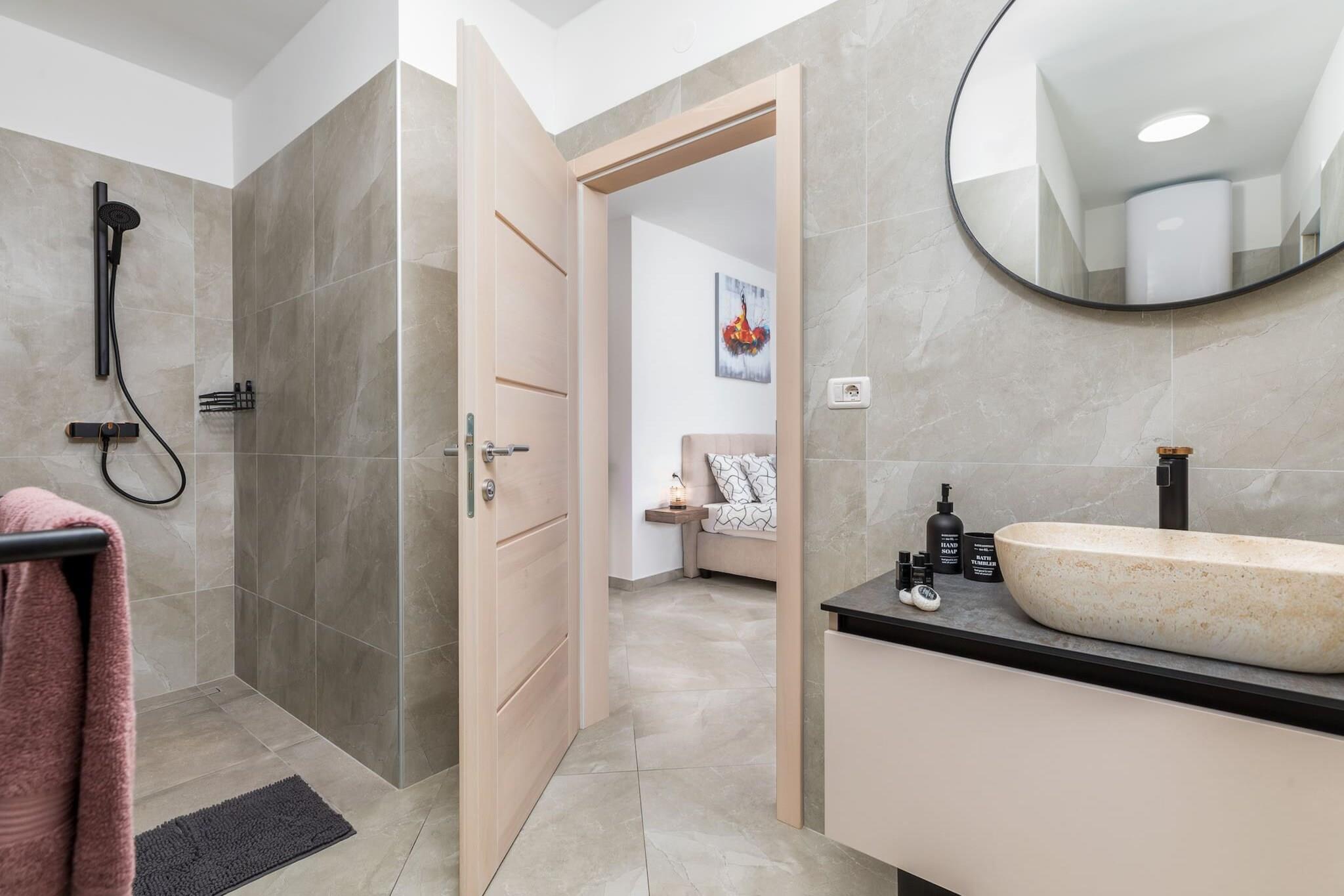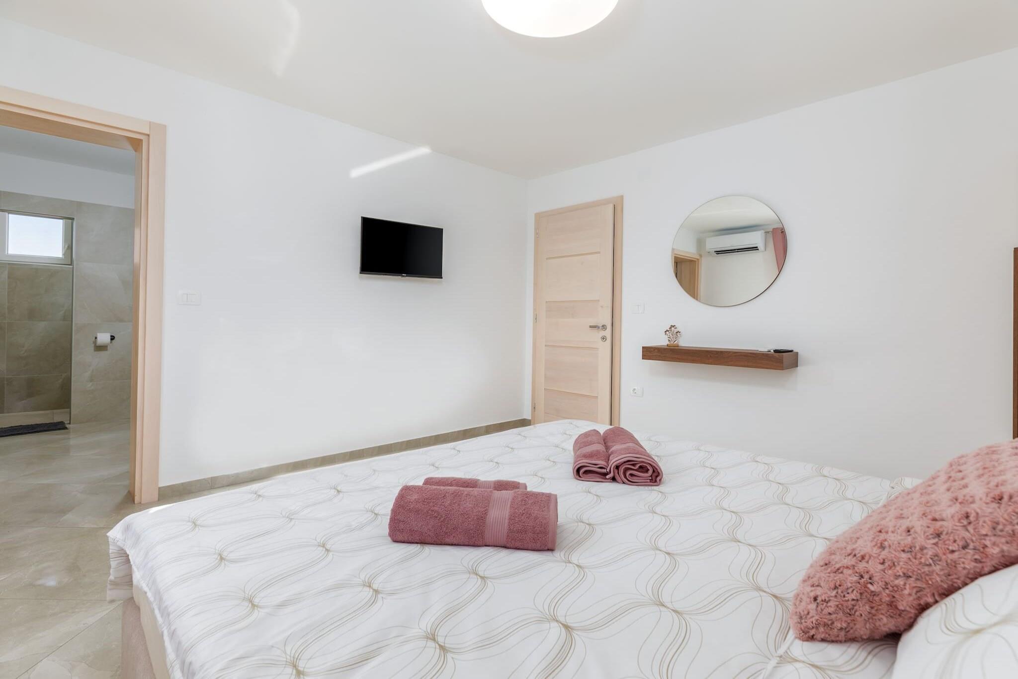 Dette dejlige hus er beliggende i et roligt område af Pula, og tilbyder en fredfyldt flugt med bekvemmeligheden ved at være tæt på forskellige attraktioner. Huset kan rumme op til 6 gæster, med to komfortable soveværelser og to badeværelser, hvilket gør det ideelt til en familie eller en gruppe venner. Det omfatter en rummelig stue, et fuldt udstyret køkken og en privat have, der kan prale af en swimmingpool, solterrasse og en overdækket terrasse med spiseplads og grill. For yderligere komfort er en barneseng og højstol til rådighed efter anmodning, og kæledyr er velkomne mod et tillægsgebyr. Beliggende kun få kilometer fra det historiske centrum af Pula, tilbyder denne ejendom nem adgang til byens gamle vartegn, såsom det romerske amfiteater, Augustus-templet og Sergius' triumfbue. Besøgende kan udforske områdets rige historie, herunder museer, gallerier og udstillinger. Den nærmeste strand er i Pjescana Uvala, hvor du kan nyde en tur til havet og udendørs, hvor du kan nyde en tur til havet og udendørs. Den fantastiske nationalpark Brijuni er også tilgængelige for dem, der ønsker at udforske områdets naturlige skønhed. Huset har gratis Wi-Fi, aircondition og et fuldt udstyret køkken til at imødekomme dine behov. Håndklæder og sengetøj leveres, med regelmæssige ændringer for at sikre et behageligt ophold. Huset har også gratis privat parkering på stedet, hvilket gør det nemt at komme og gå. Uanset om du ønsker at slappe af ved poolen, udforske den historiske by eller tage på en dagstur til de nærliggende øer, er dette hjem den perfekte base for din ferie.