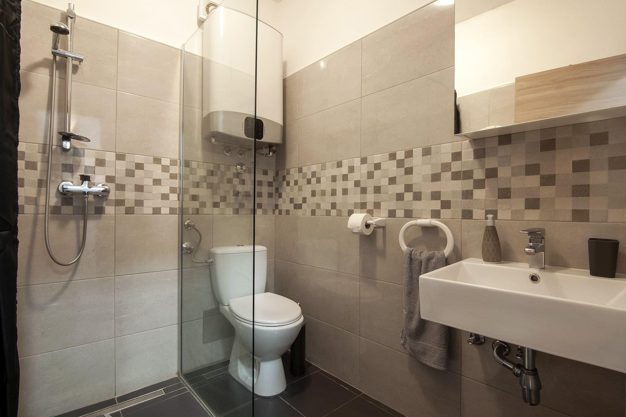 Denne hyggelige og velindrettede lejlighed er designet til komfortabelt at rumme op til 4 gæster (maks. 2 voksne). Ejendommen har 1 soveværelse med en stor dobbeltseng og en sovesofa i opholdsstuen, hvilket gør den ideel til små familier eller par. Lejligheden er kæledyrsvenlig, så dine lodne ledsagere kan være med på ferien mod et ekstra gebyr. Gæsterne kan nyde en afslappende tid på den private balkon, som er udstyret med udendørsmøbler. Væsentlige faciliteter såsom aircondition, gratis Wi-Fi og et tv sikrer et bekvemt og behageligt ophold. En grillplads er også tilgængelig for gæster, der nyder udendørs spisning. Lejligheden er perfekt beliggende i kort afstand fra forskellige attraktioner, hvilket gør den til en ideel base for at udforske området. Inden for 50 meter finder gæsterne en lokal restaurant, der tilbyder lækre måltider, og et supermarked ligger bekvemt 100 meter derfra. Den nærmeste busstation ligger blot 500 meter fra ejendommen, hvilket giver nem adgang til andre dele af byen. Den nærmeste strand, en smuk klippestrand, ligger kun 1 km væk og byder på masser af muligheder for svømning og solbadning. Fažanas pulserende bymidte med sine butikker, caféer og restauranter ligger kun 2 km væk, hvilket gør det nemt at udforske den lokale kultur. Lejligheden har et fuldt udstyret køkken med komfur, mikroovn, køleskab og alt nødvendigt køkkenudstyr, ideelt til at tilberede hjemmelavede måltider. Opholds- og spiseområdet i åbent plan giver gæster nok plads til at slappe af og spise komfortabelt. Det moderne badeværelse har bruser, hårtørrer og friske håndklæder.