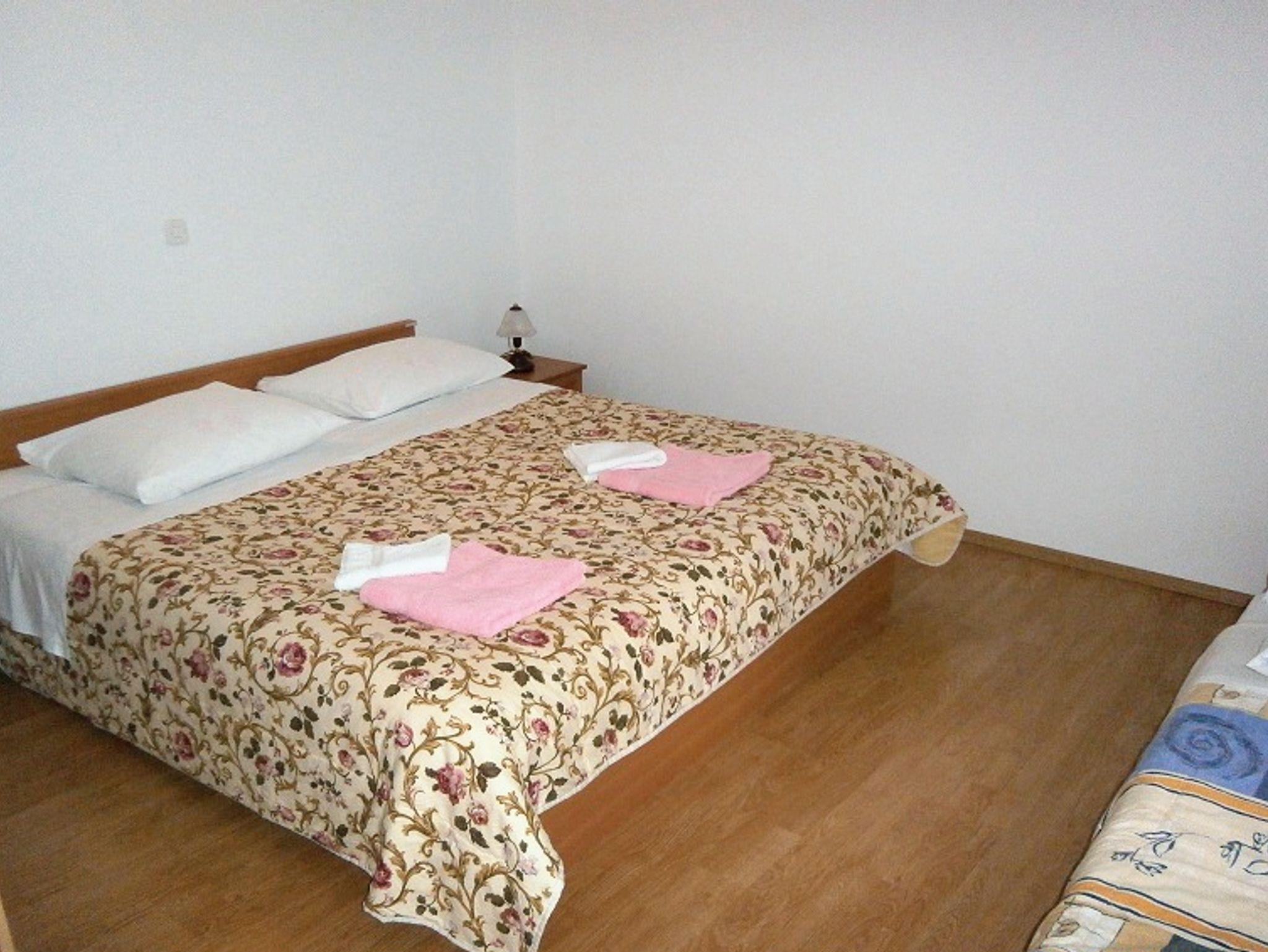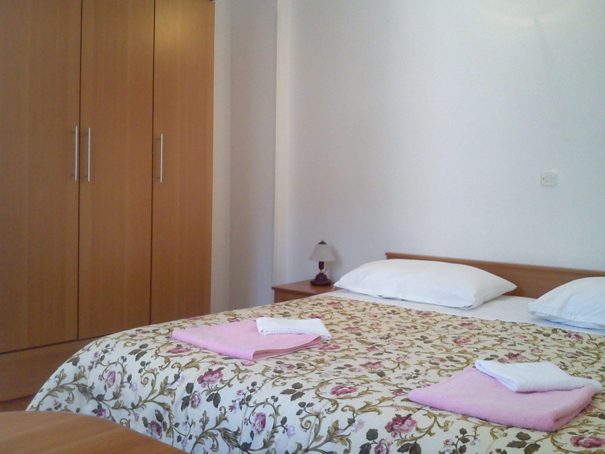 Ferienwohnung bietet Platz für 5 Gäste. Die Betten sind in Schlafzimmern, die es 2 gibt, innerhalb einer Gesamtfläche von 57m2, angeordnet. Die Gäste haben eine eigene Terrasse zur Verfügung, auf der sie in warmen Sommernächten genießen können. Es ist erlaubt, Speisen auf dem Gemeinschafts-Grill vorzubereiten. IM PREIS INBEGRIFFEN: Kurtaxe, Endreinigung, Parkplatz, Internet, Wäschewaschen, Bügeleisen, Bügelbrett, Föhn, tragbarer Grill. VERBINDLICHE ZUSÄTZLICHE KOSTEN: Aufzahlung für Kurzaufenthalte (prozentualer Zuschlag pro Nächtigungsanzahl: 30% - 1, 20% - 2, 10% - 3). UNVERBINDLICHE ZUSÄTZLICHE KOSTEN: Klimatisierung (4,00 € pro Nacht), Zusatzbett (10,00 € pro Nacht). Die Verfügbarkeit zusätzlicher Dienstleistungen in Ihrem reservierten Termin und die Preise derselben (falls nicht aufgeführt) müssen im Voraus überprüft werden. Zusätzliche Dienstleistungen die in der Zahlungsaufforderung nicht aufgeführt sind werden direkt beim Vermieter bezahlt, angenommen der Gast nutzt auch diese. Ermäßigung auf den Grundpreis: Gratistag 14=13 (bei einem Aufenthalt von 14 Tagen oder mehr erhalten Sie einen Gratistag für den Aufenthalt bis 31.12.26).